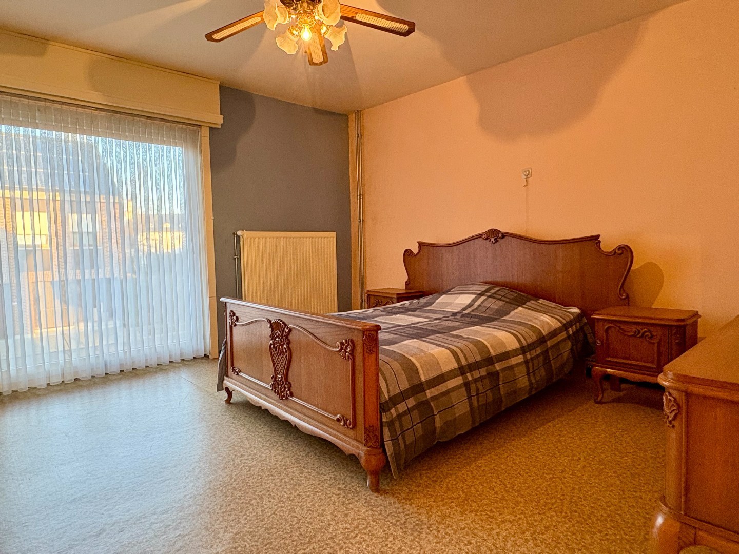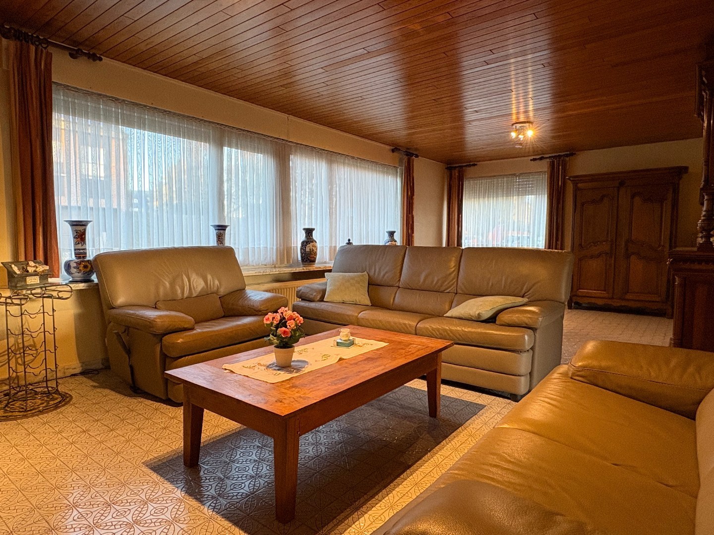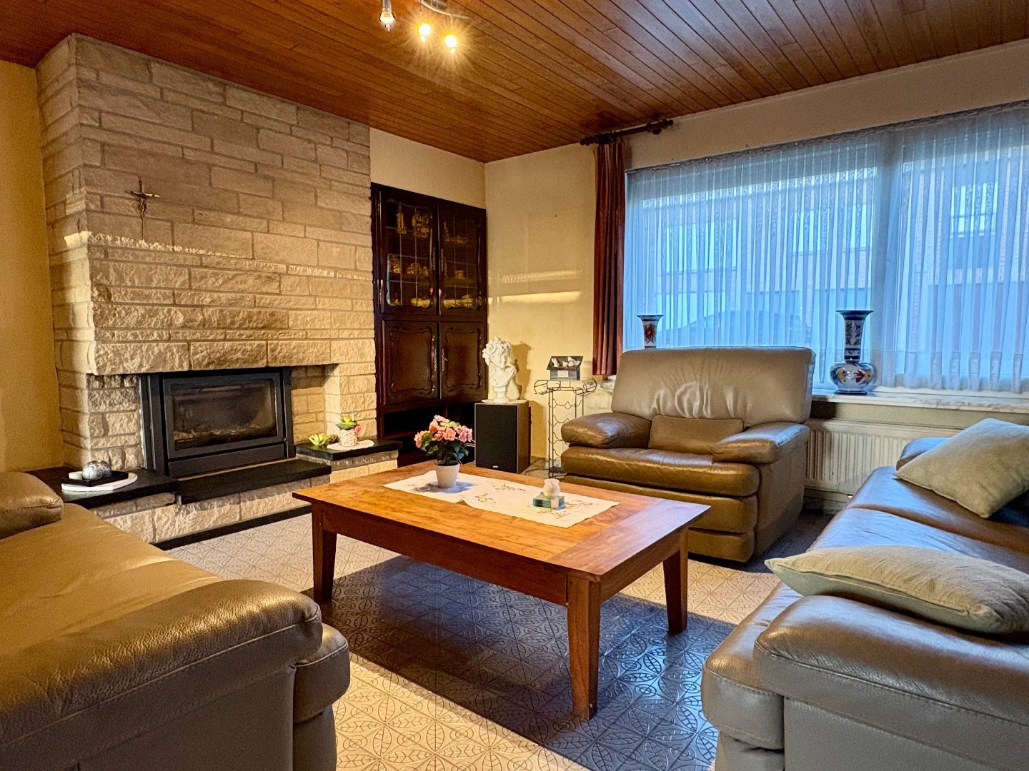 Vervolgens kom je in de lichtrijke leefruimte, uitgerust met centrale verwarming en een gezellige houtkachel. Vanuit de leefruimte geniet je van een mooi zicht op de zuidoost-georiënteerde tuin.