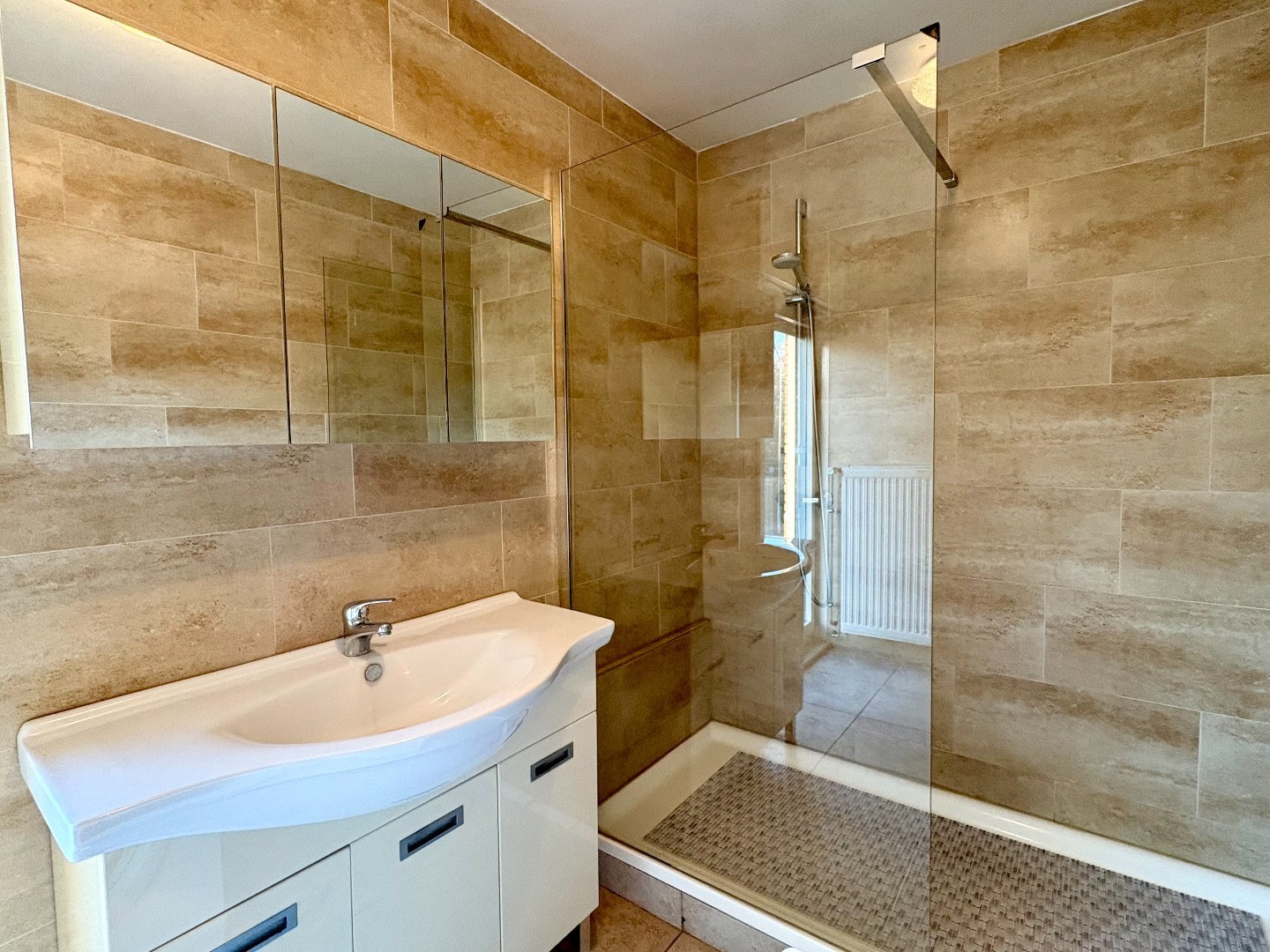 Op de eerste verdieping bevinden zich drie ruime slaapkamers en een vernieuwde badkamer met inloopdouche en lavabo. Daarnaast is er de mogelijkheid om een vaste trap te installeren naar de zolderverdieping, die nog kan worden ingericht met meerdere slaapkamers.