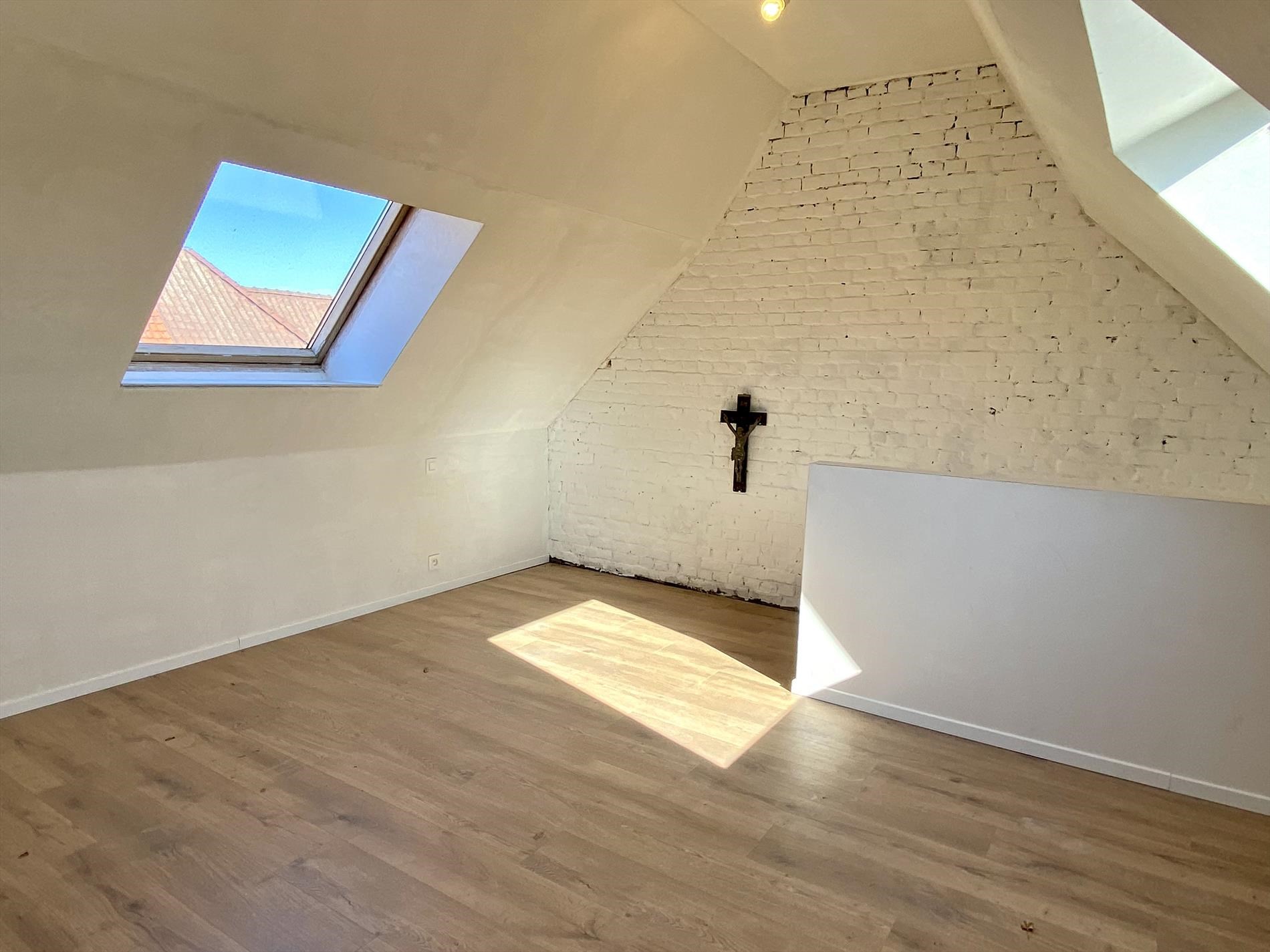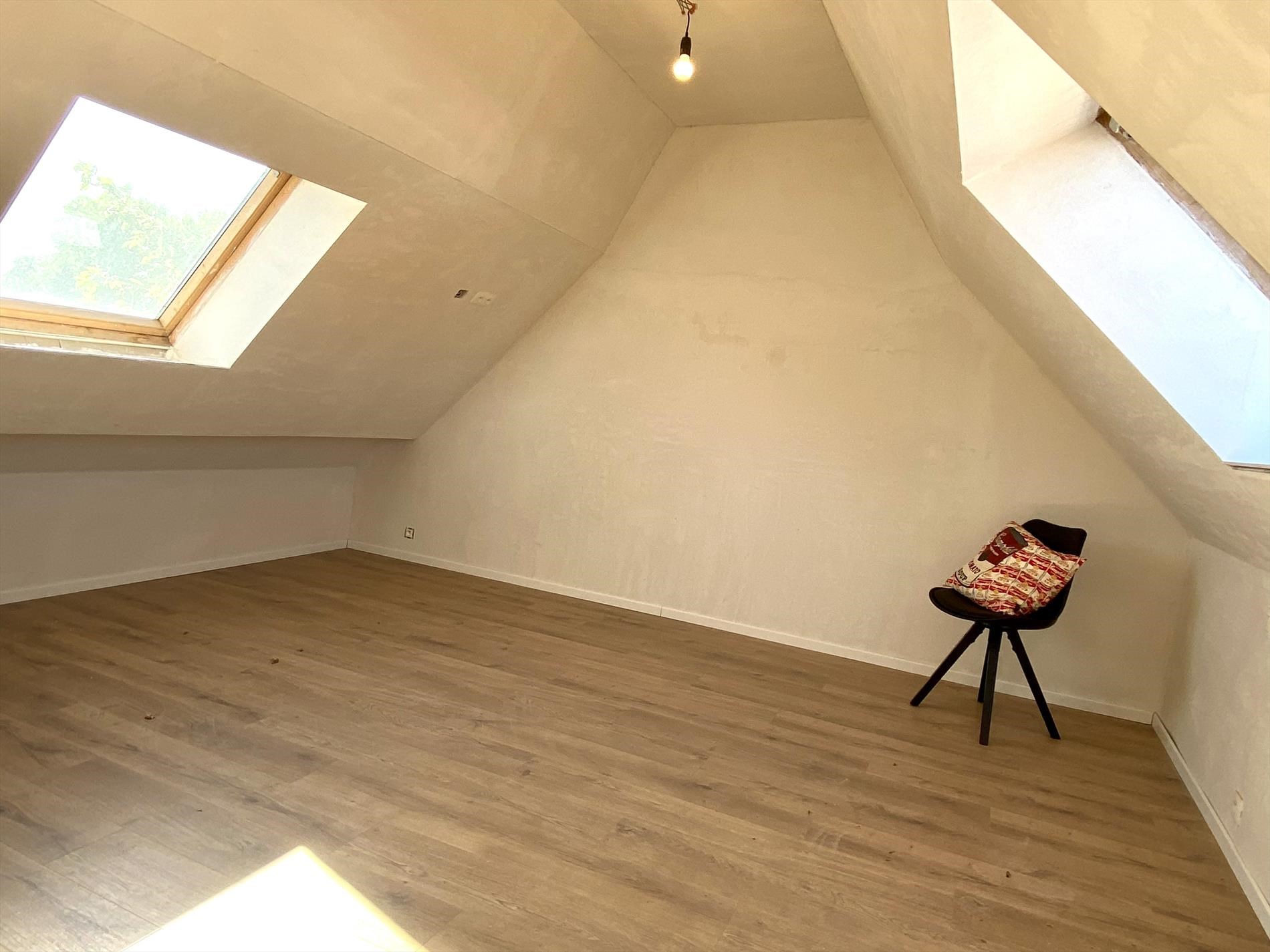 Met een vaste trap kunnen we de zolderverdieping bereiken, waar de derde slaapkamer voorzien is.