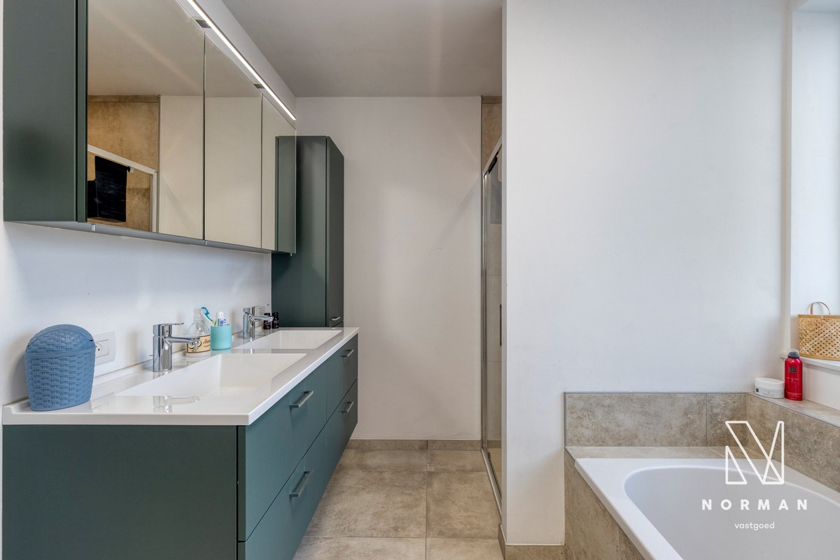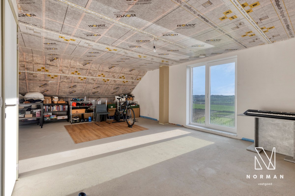 Op de eerste verdieping vinden we drie écht ruime slaapkamers, een apart toilet op de nachthal en een badkamer met douche, lavabomeubel en ligbad. Een vaste trap brengt ons naar de zolder, die casco is afgewerkt. Hier kan je zelf de invulling bepalen. Houd er rekening mee dat wateraan- en afvoer reeds zijn voorzien, waardoor het perfect mogelijk is om hier extra slaapkamers en/of een tweede badkamer te creëren.