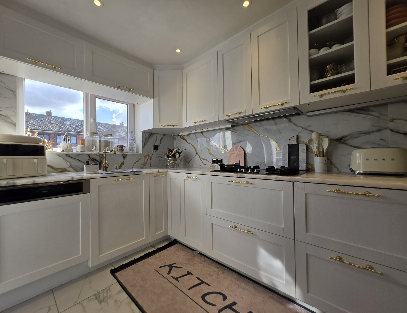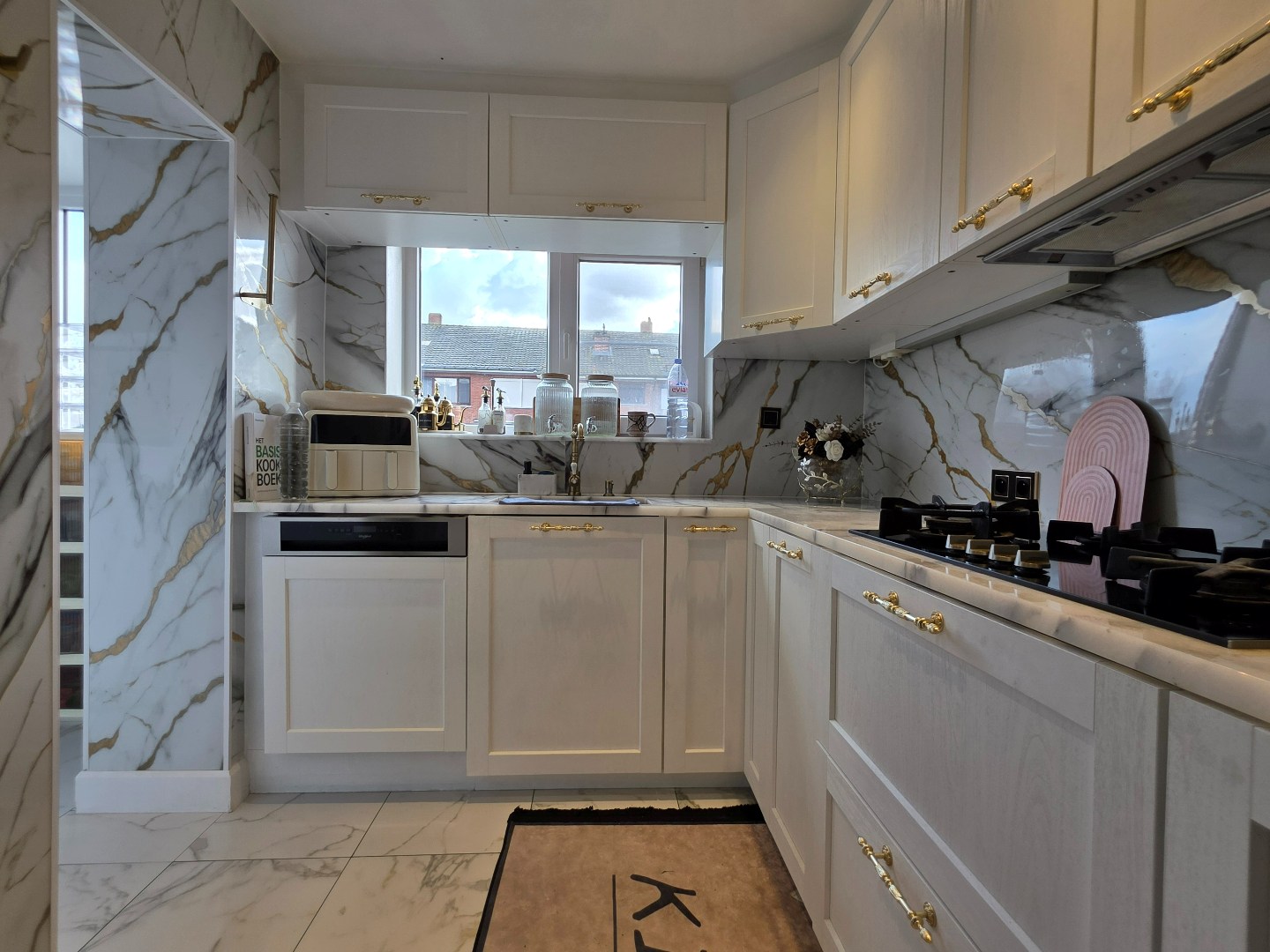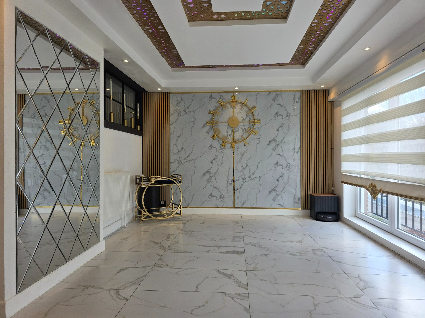 We komen deze volledig gerenoveerde bel-étagewoning binnen via de uitnodigende hall. Op de eerste verdieping vinden we de lichtrijke, ruime leef- en zitkamer, een tot in de puntjes ingerichte keuken en een aanpalende zonnekamer met zicht op de tuin.