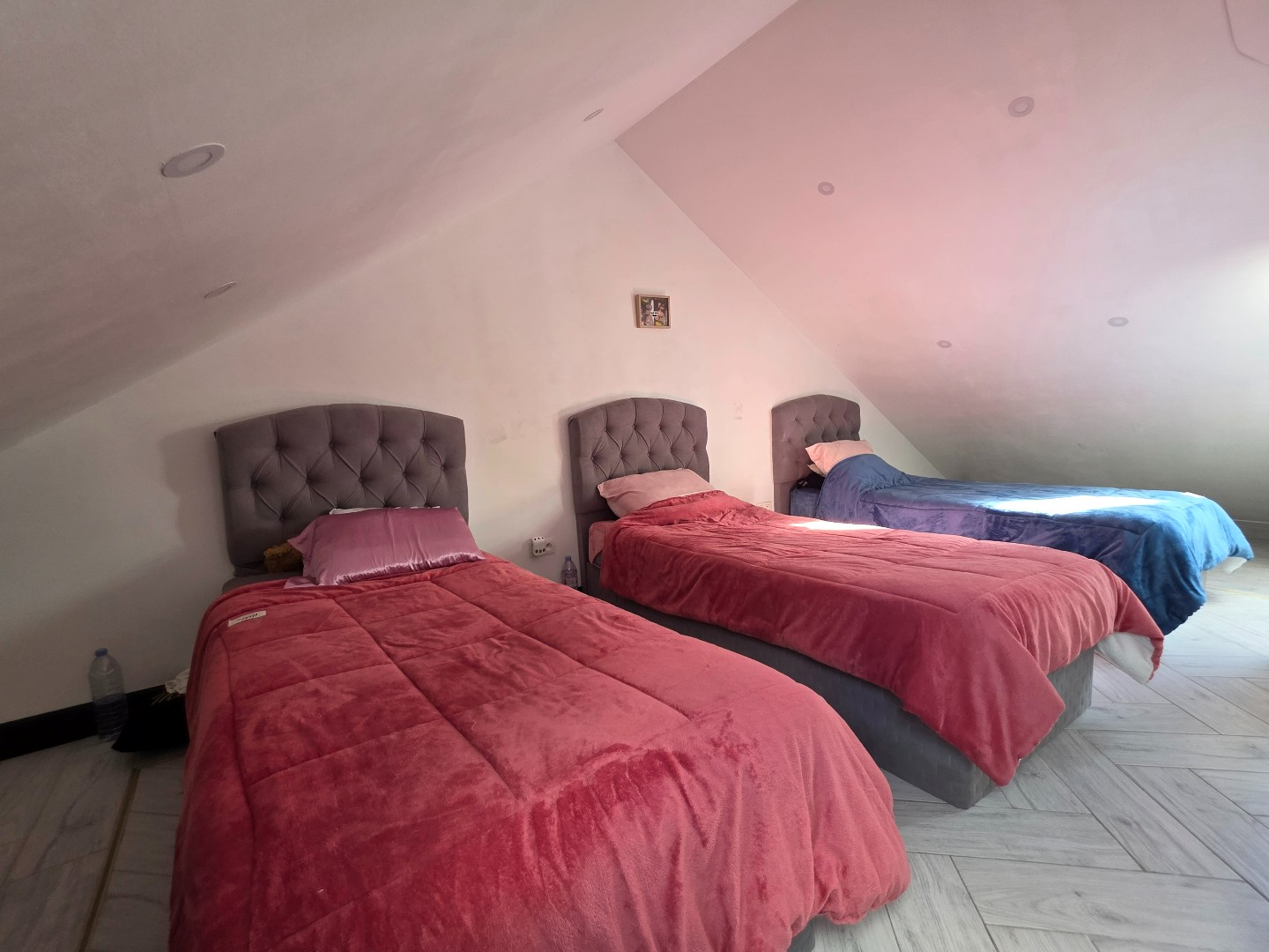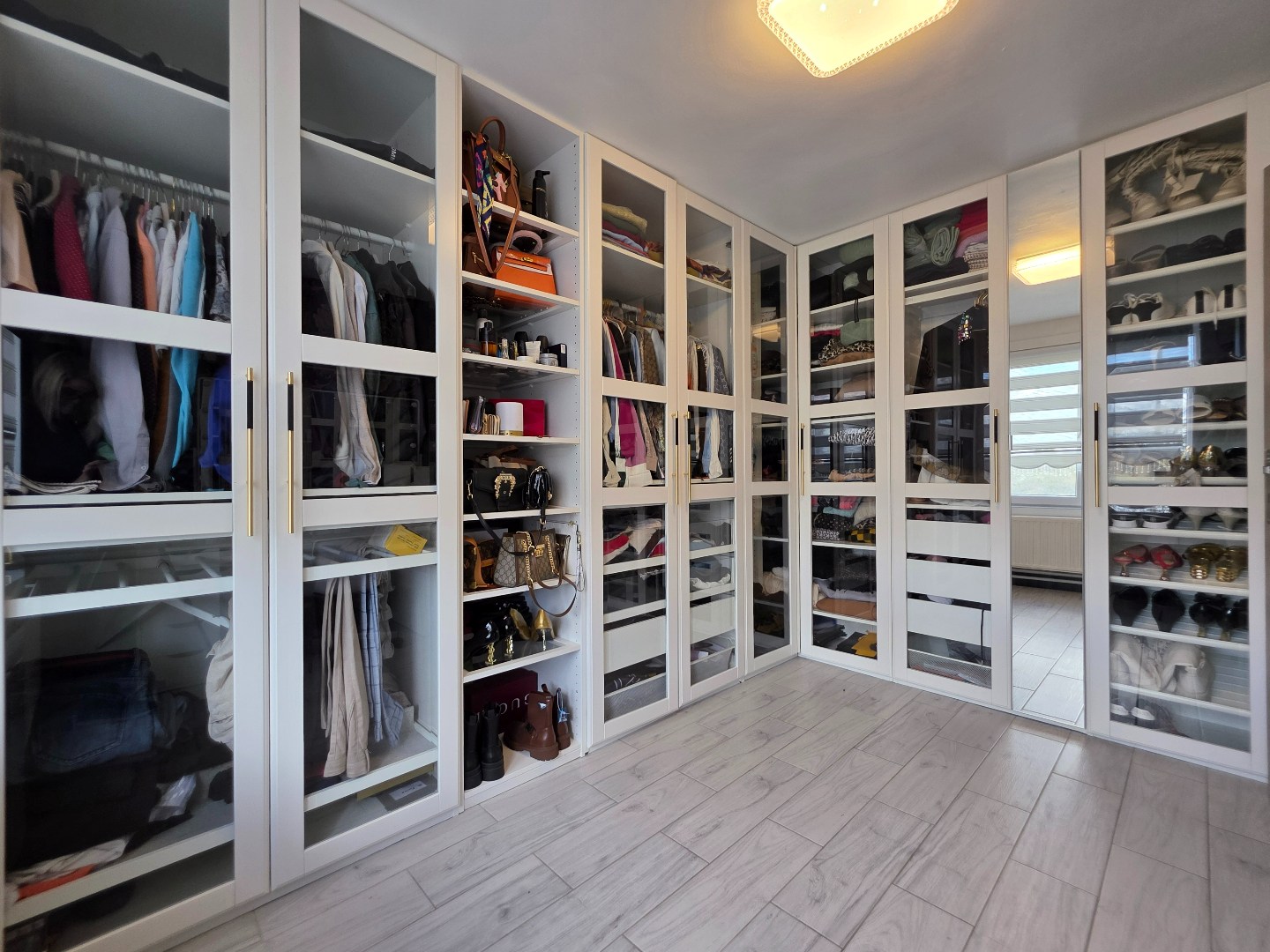 De master bedroom is de eyecather van de tweede verdieping, waar we ook nog een prachtige dressing aantreffen, een slaapkamer, 2 opbergruimtes en een luxebadkamer met douche en toilet. De zeer ruime zolderverdieping, bereikbaar via een vaste trap, biedt een zee van ruimte en is op vandaag ingericht als slaapkamer voor 3 kinderen.