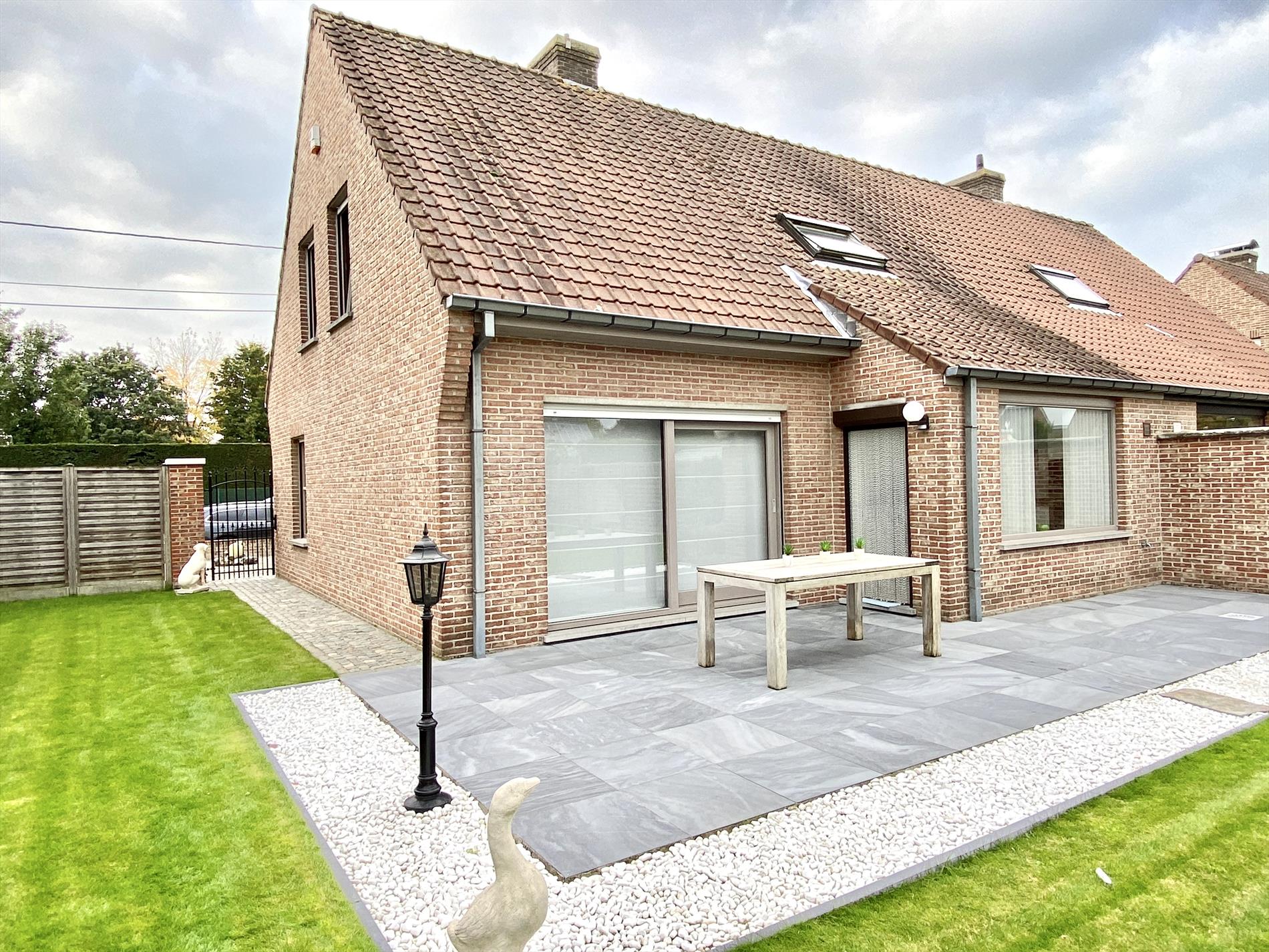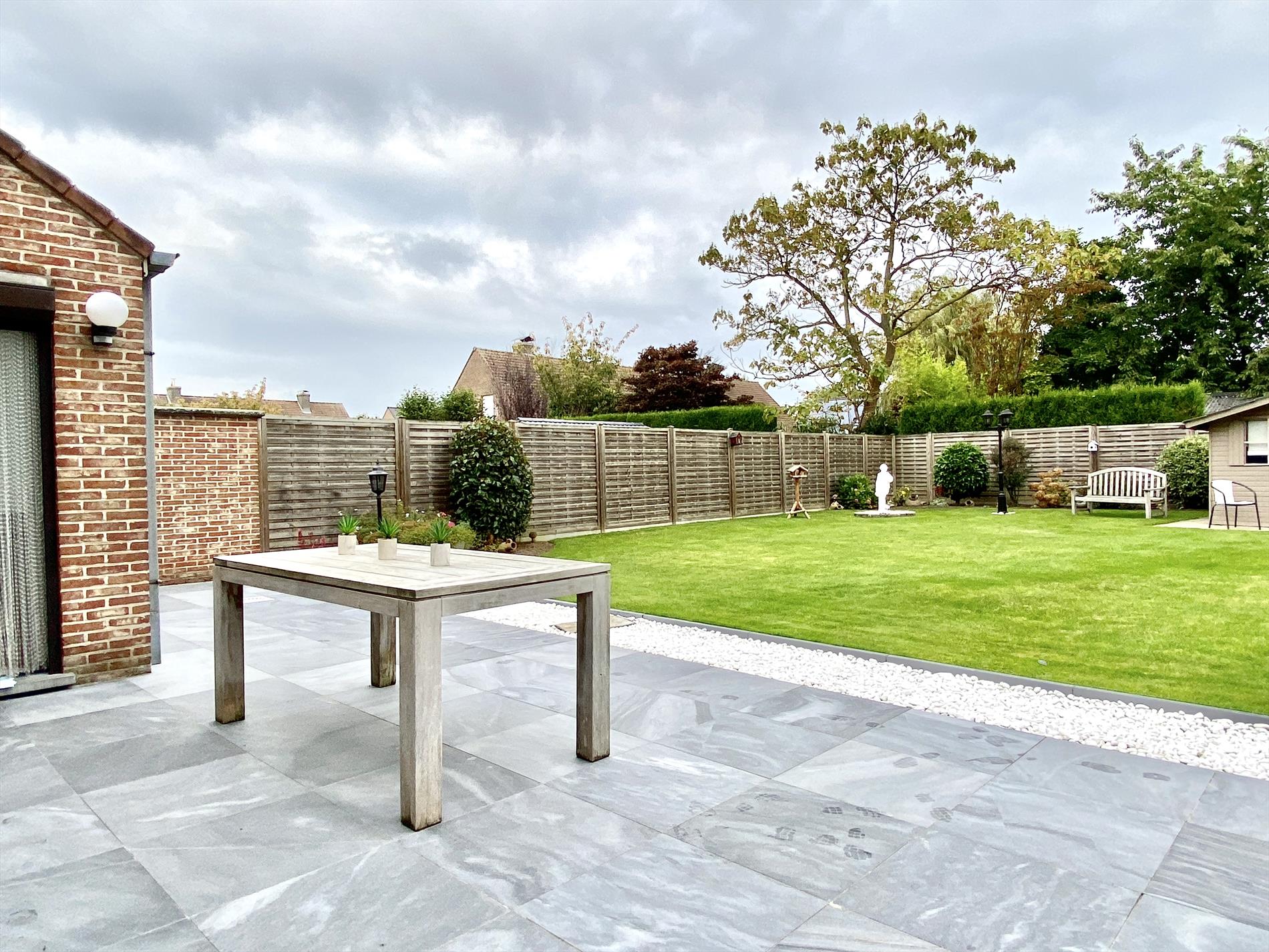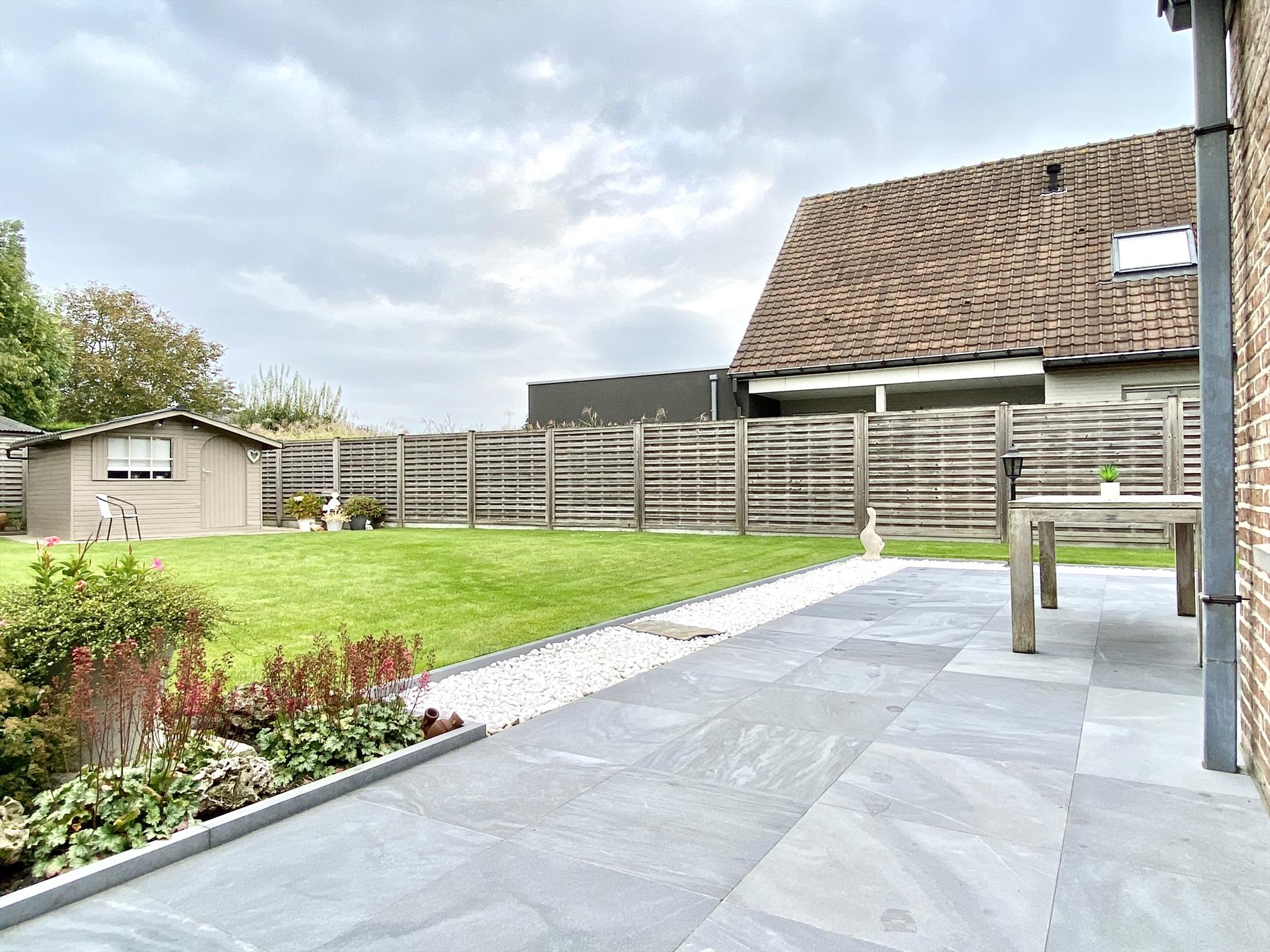 De tuin is volledig omheind, vernieuwd terras, groot tuinhuis en is in perfecte staat.