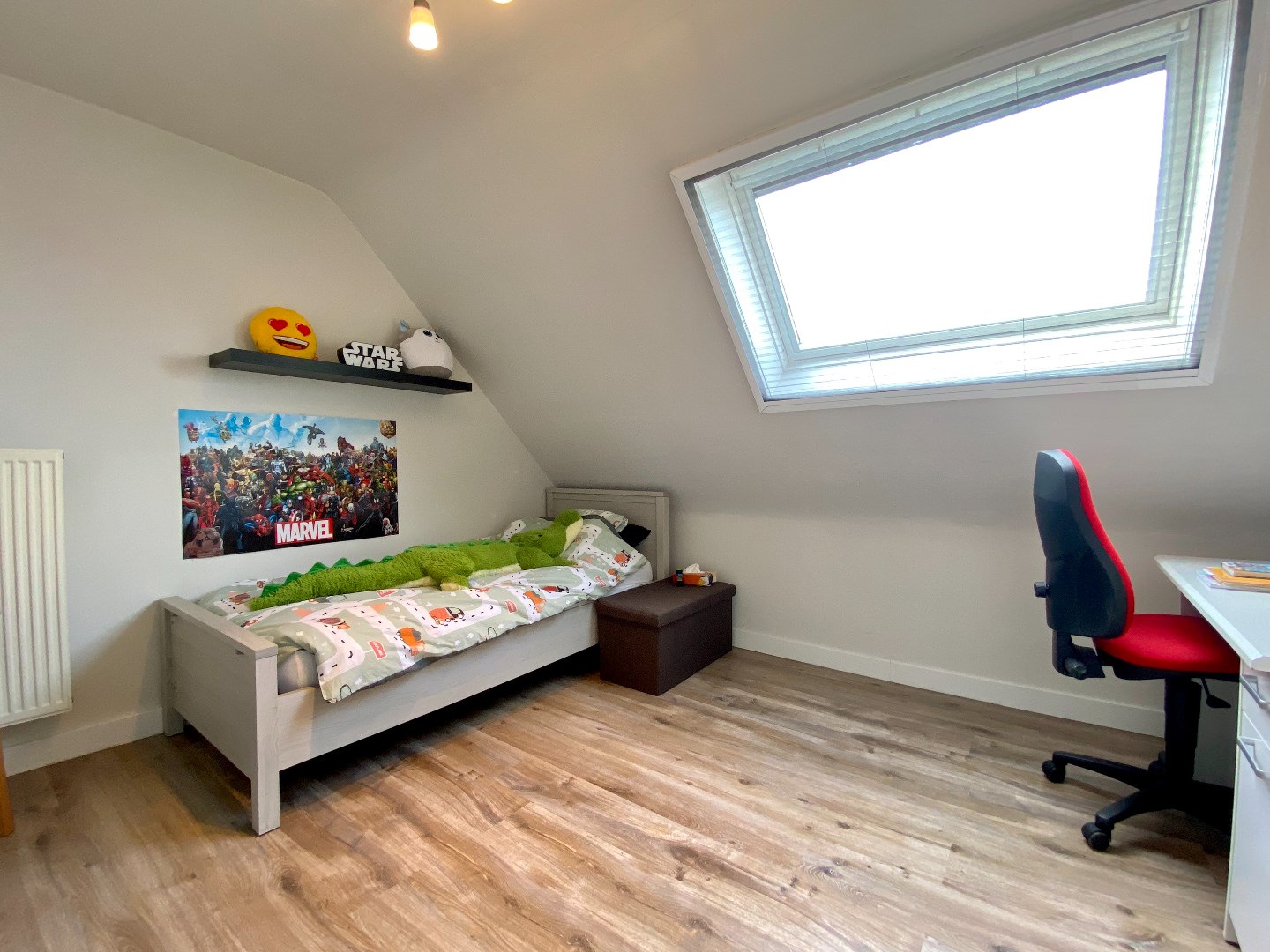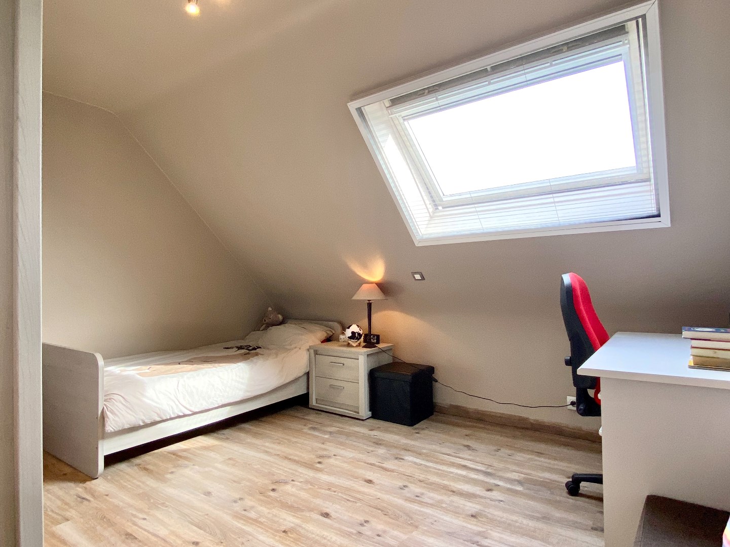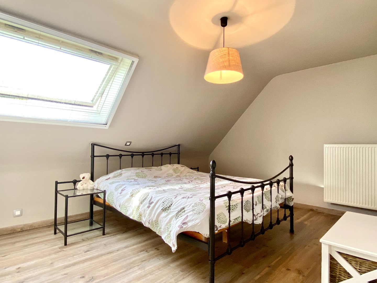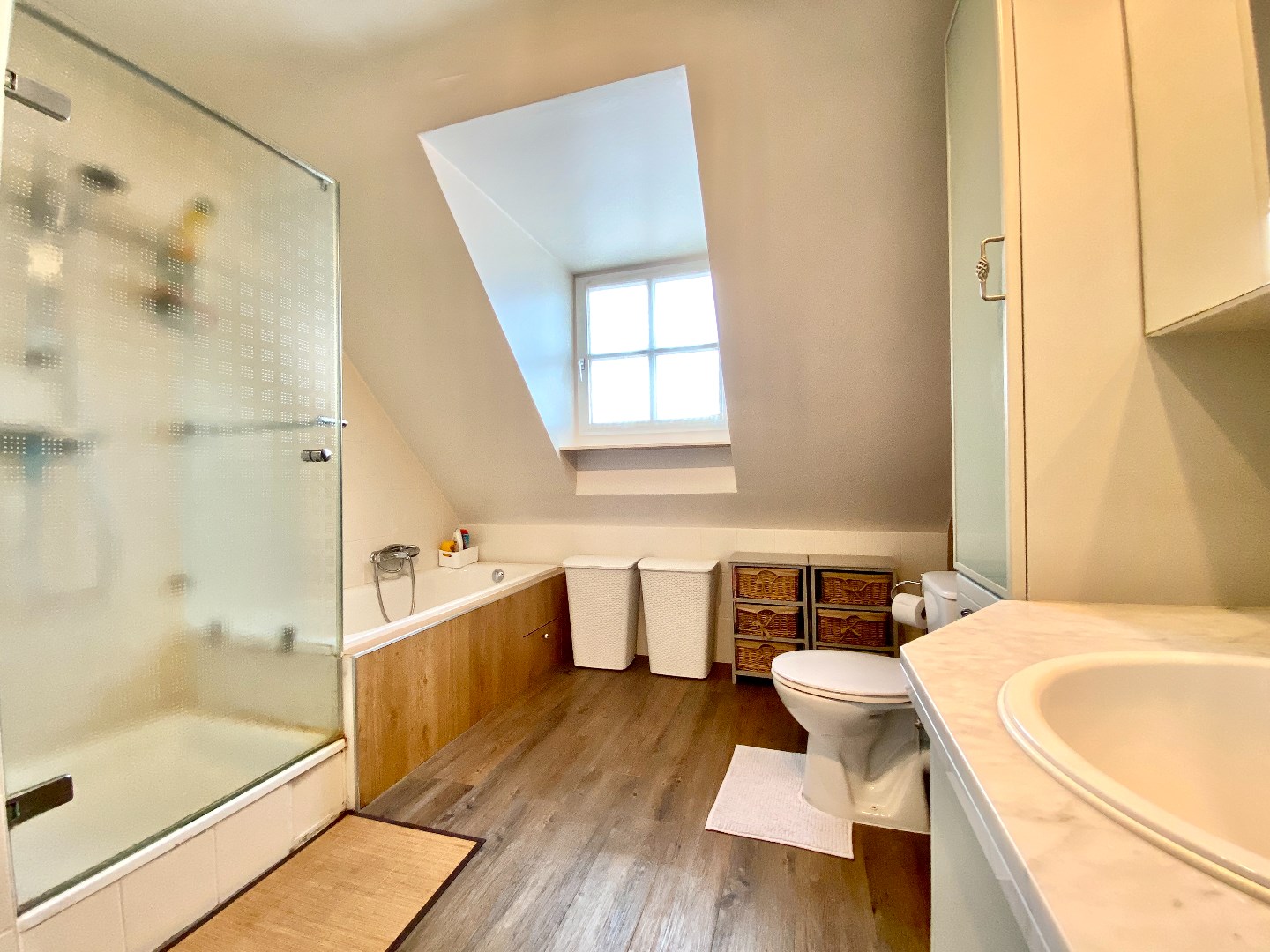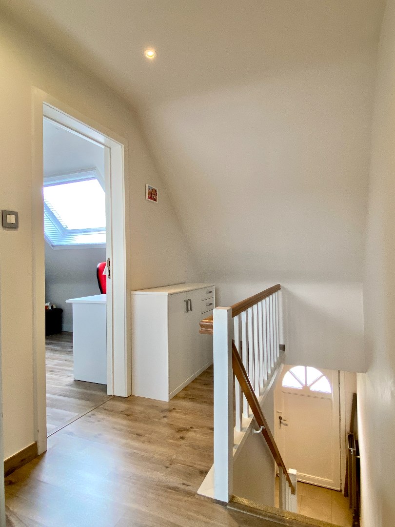 Het verdiep bevat 3 echt ruime slaapkamers en een badkamer. Deze heeft een douche, ligbad en wastafel.
