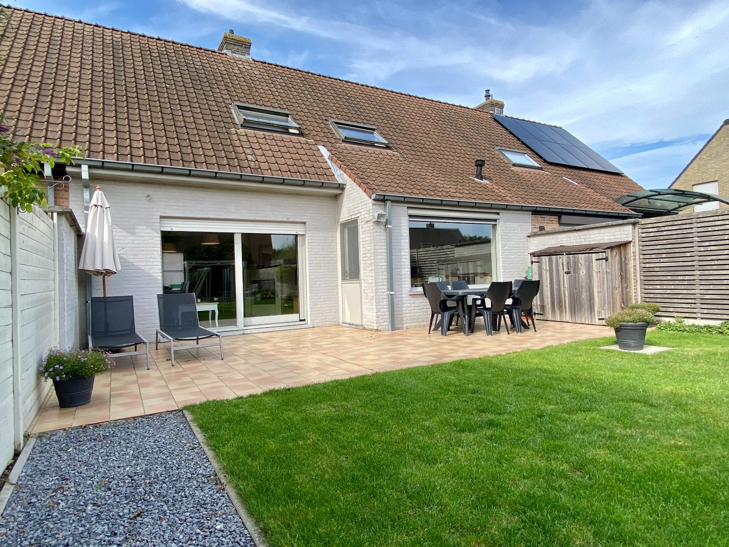 Hedendaagse woning met aangelegde tuin, 3 slaapkamers en inpandige garage.