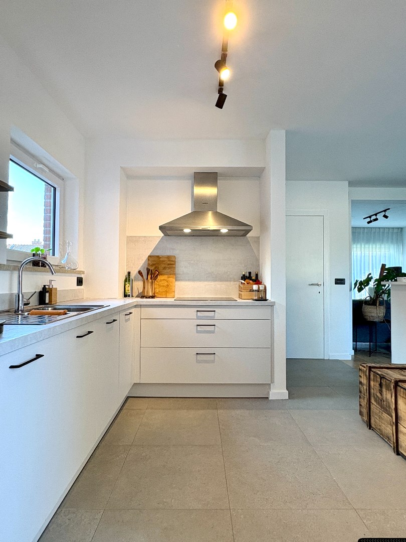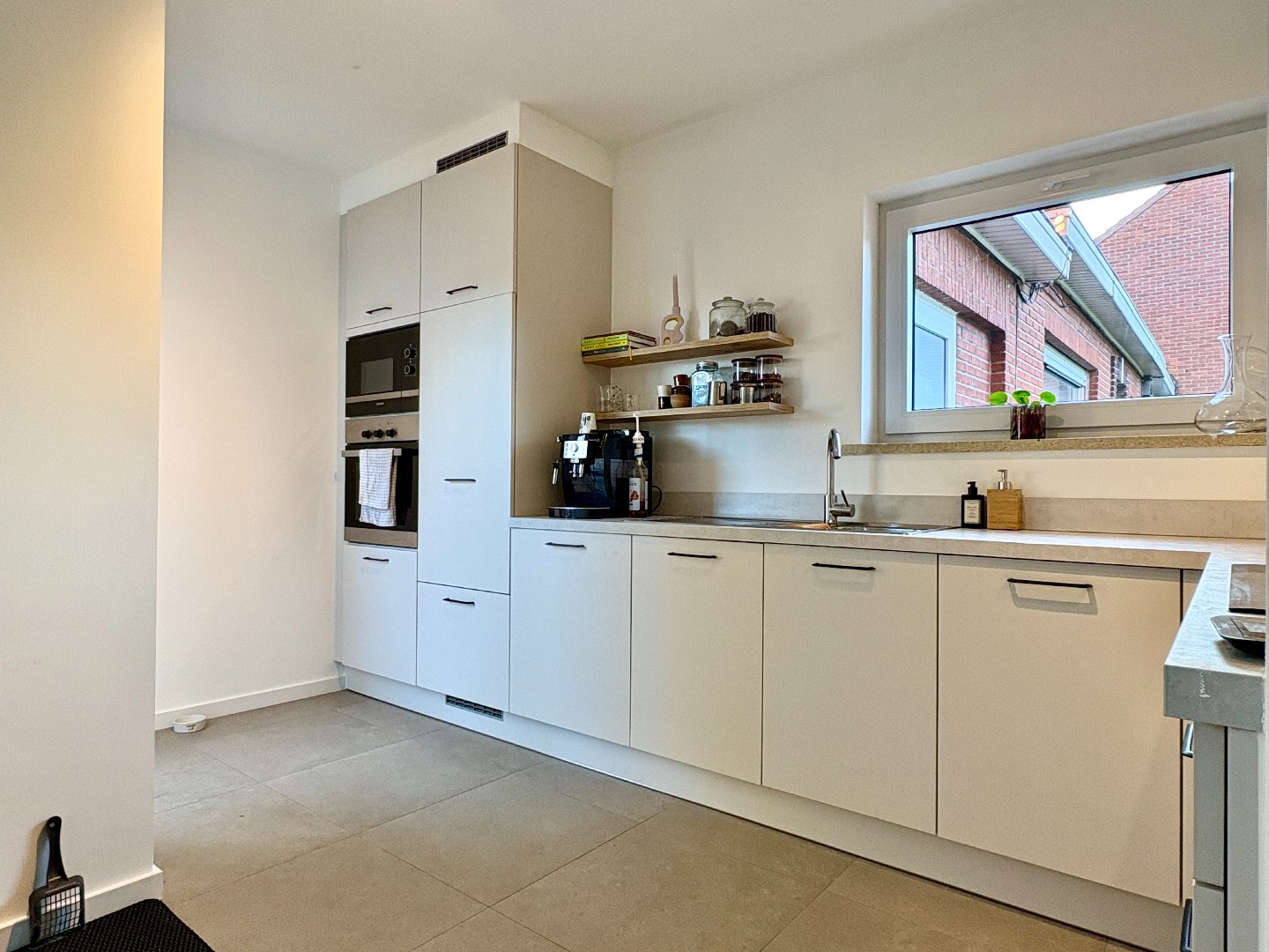 De leefruimte is een lichtrijk geheel met zicht over terras en tuin maar ook op de open keuken. Deze is volledig voorzien en heeft een handige en praktische kelder.