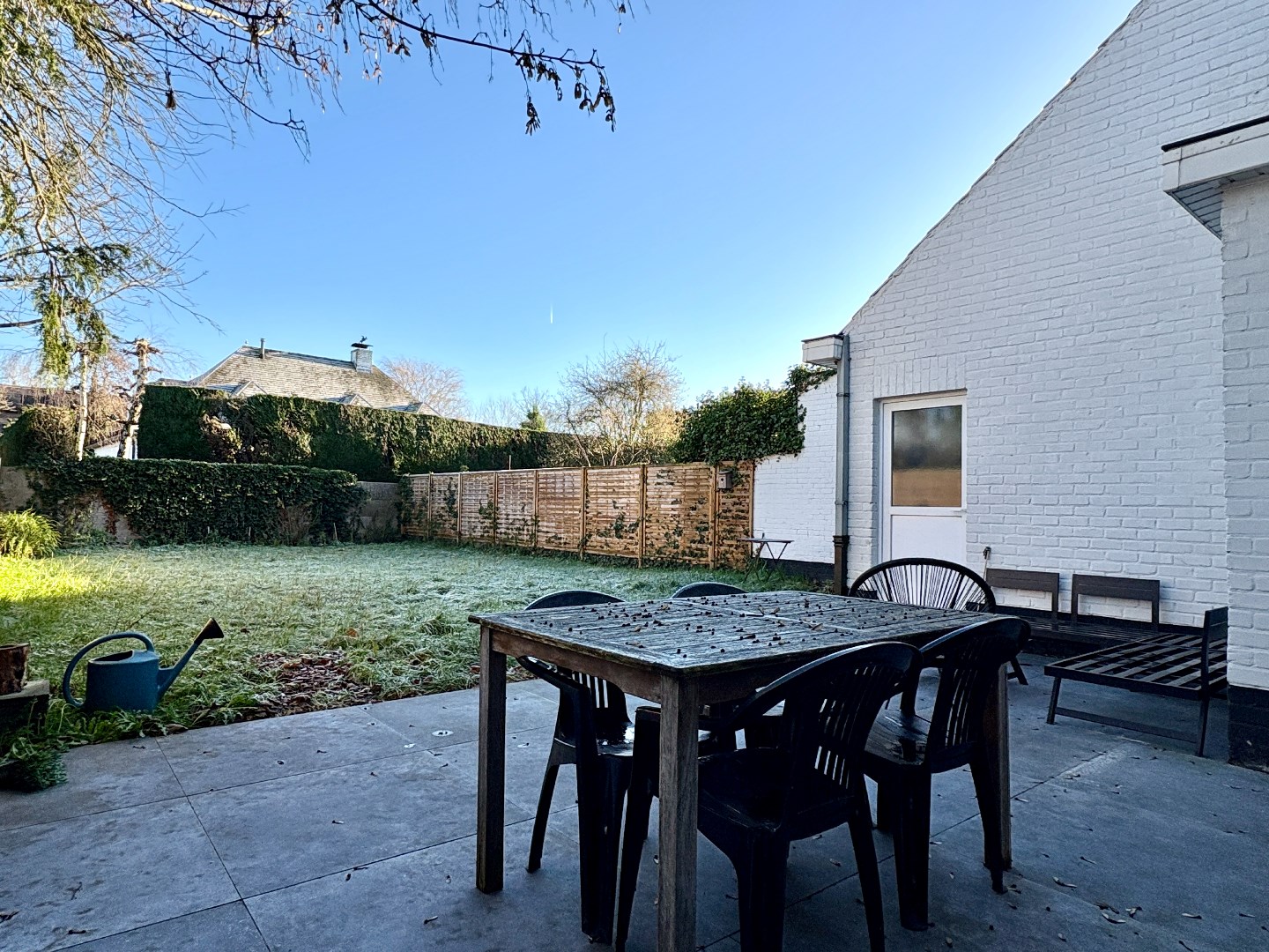 De tuin is volledig omheind, heeft een groot terras en biedt toegang naar de garage. Deze doet dienst als technische ruimte en berging.