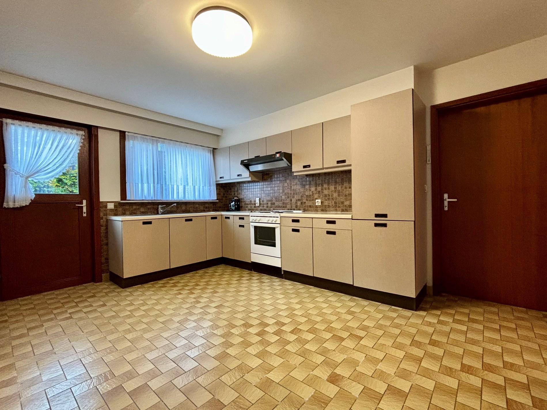 Aansluitend aan de living bevindt zich de keuken, die directe toegang biedt tot de prachtige tuin.