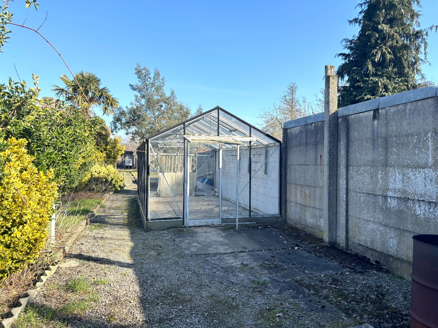 Gaan we verder op het perceel komen we nog een ruime berging tegen, een klein magazijn, een mooie tuin met serre en tenslotte een garage met oprit voor twee wagens en uitweg in de Pachthofweg.