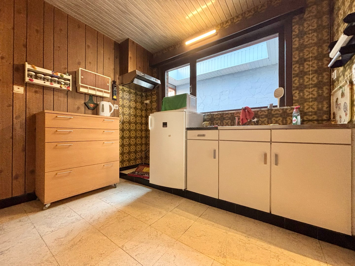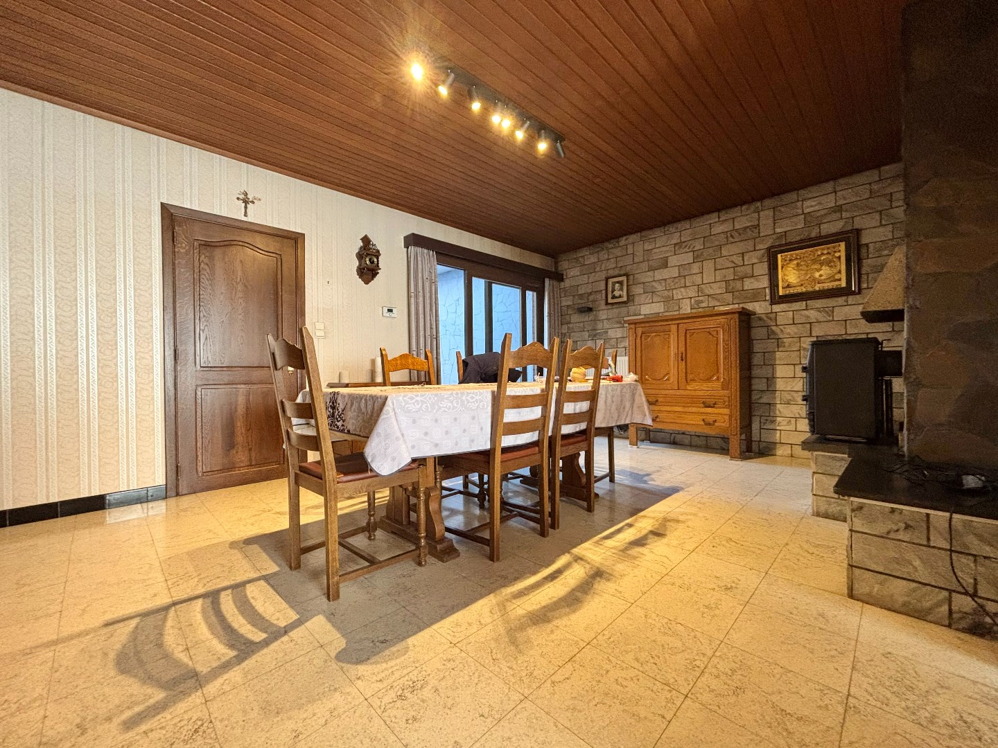 Vooraan het perceel bevindt zich de woning gebouwd in 1969. De woning bestaat uit een ruime inkomhal met toilet, leefruimte opgesplitst in twee delen, keuken met kelder en grote berging, overdekt terras, een gelijkvloerse slaapkamer, twee slaapkamers op de eerste verdieping en een badkamer.