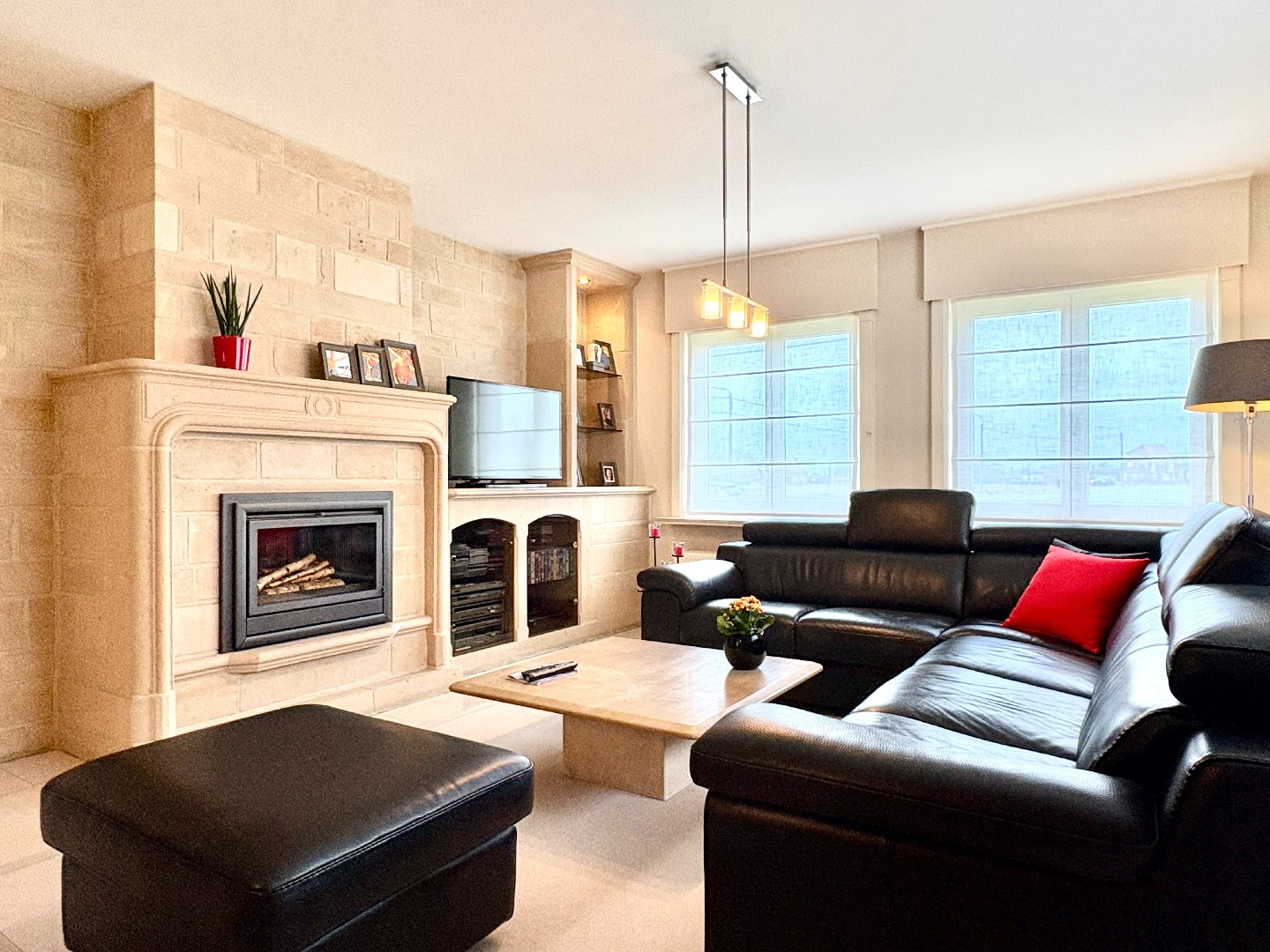 Deze gelijkvloerse woning bestaat uit een ruime inkomhal met gastentoilet, lichtrijke leefruimte, geïnstalleerde keuken met berging, 2 volwaardige slaapkamers, ruime badkamer en een garage.