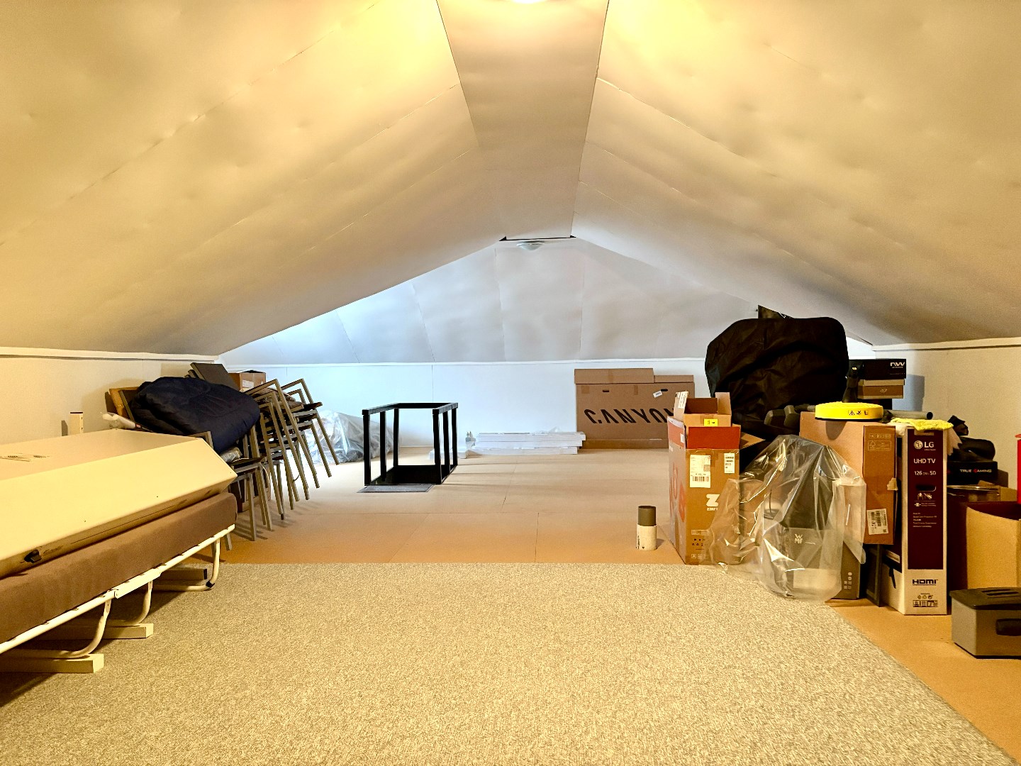 De zolder is groot genoeg voor een hobbykamer of bureau (zie foto's).