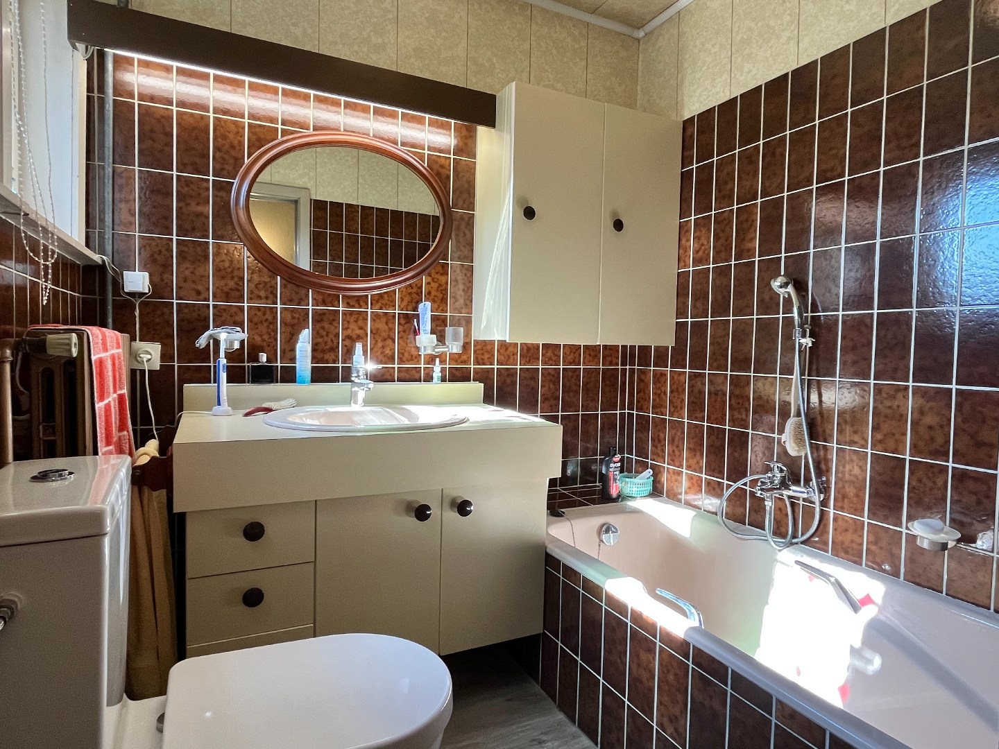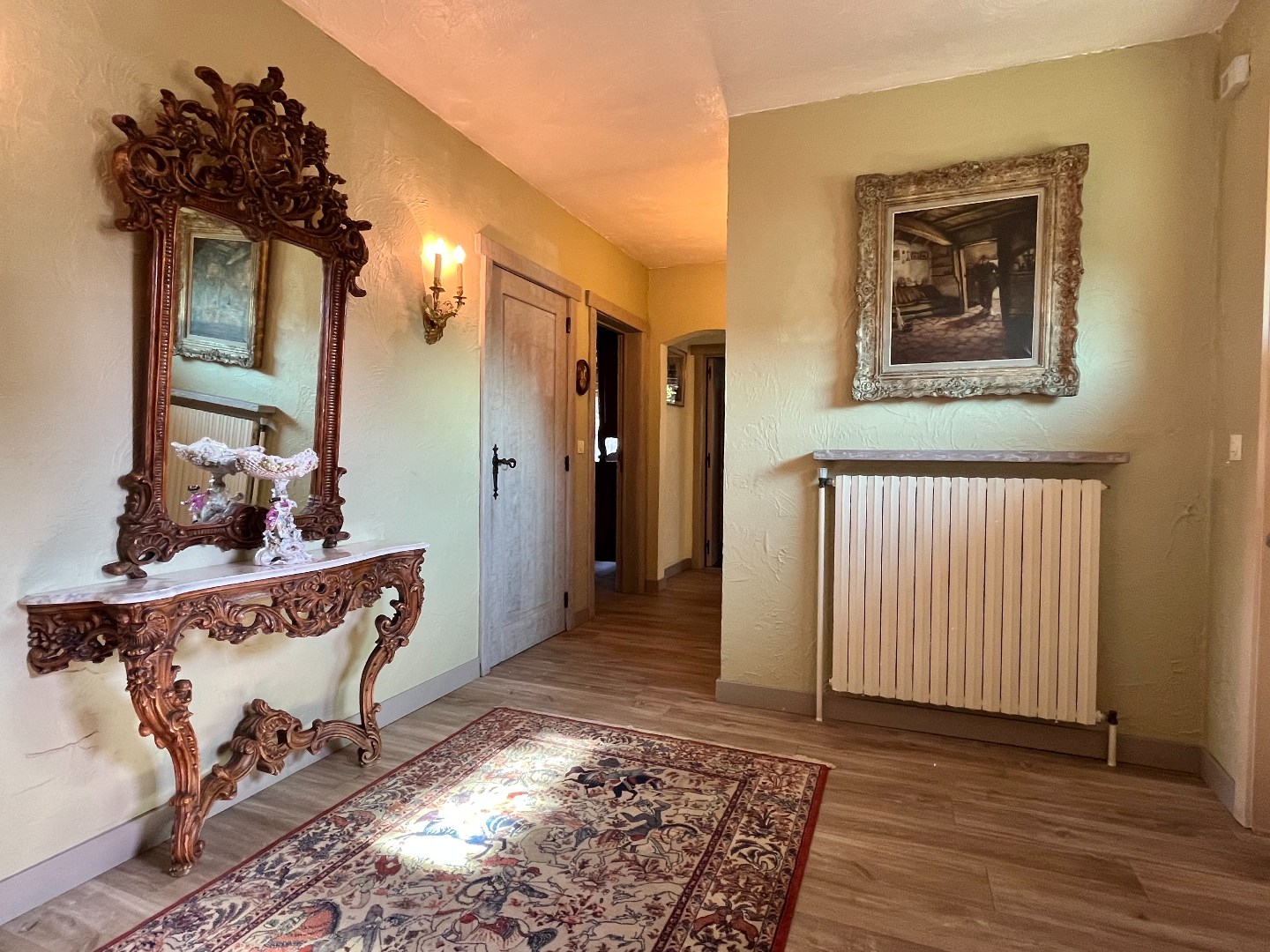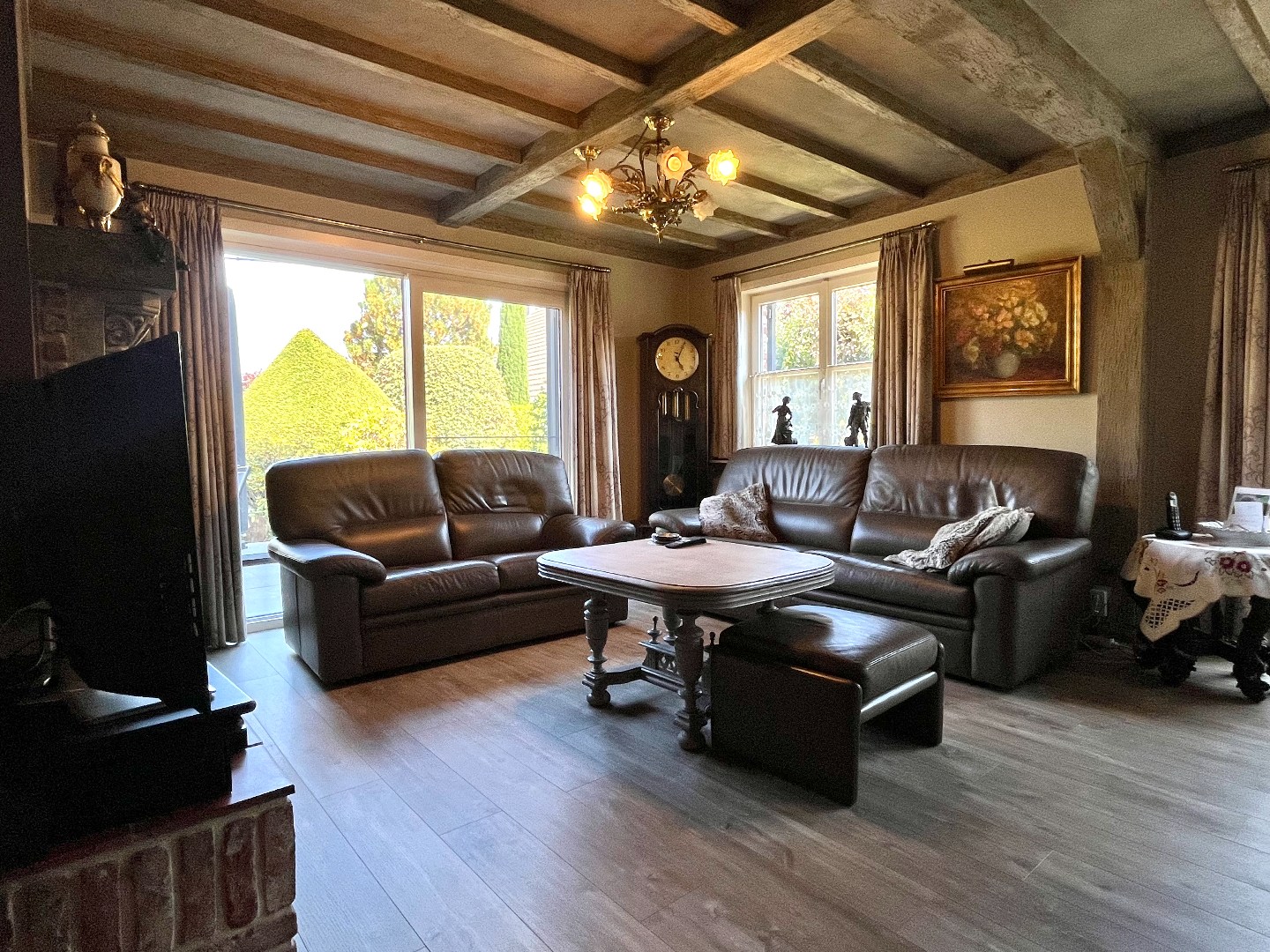 Bij het binnenkomen van de woning stap je de inkomhal binnen, die rechtstreeks toegang biedt tot de ruime living met uitzicht op de tuin. Hier zorgt een gezellige houtkachel voor extra warmte en sfeer.