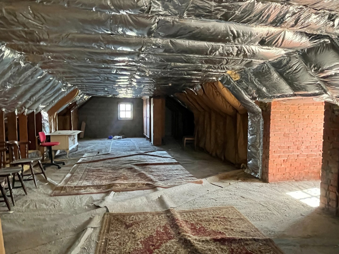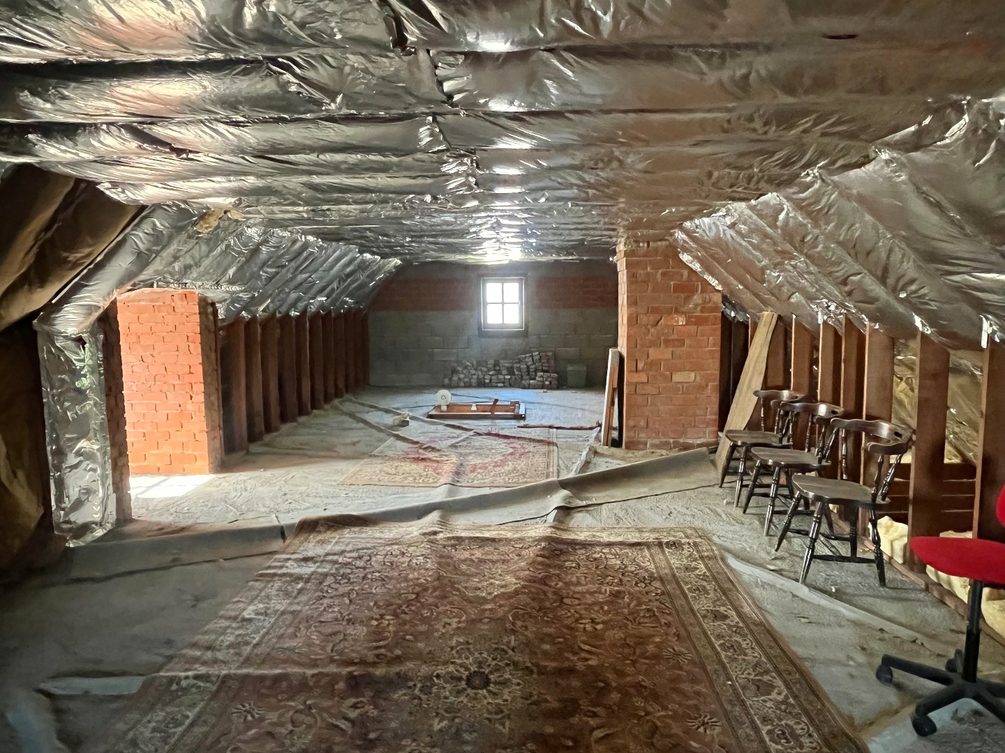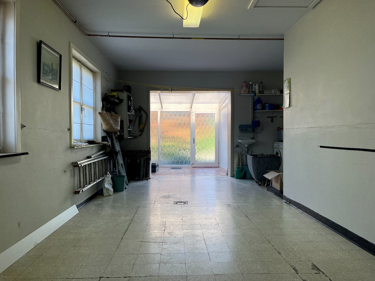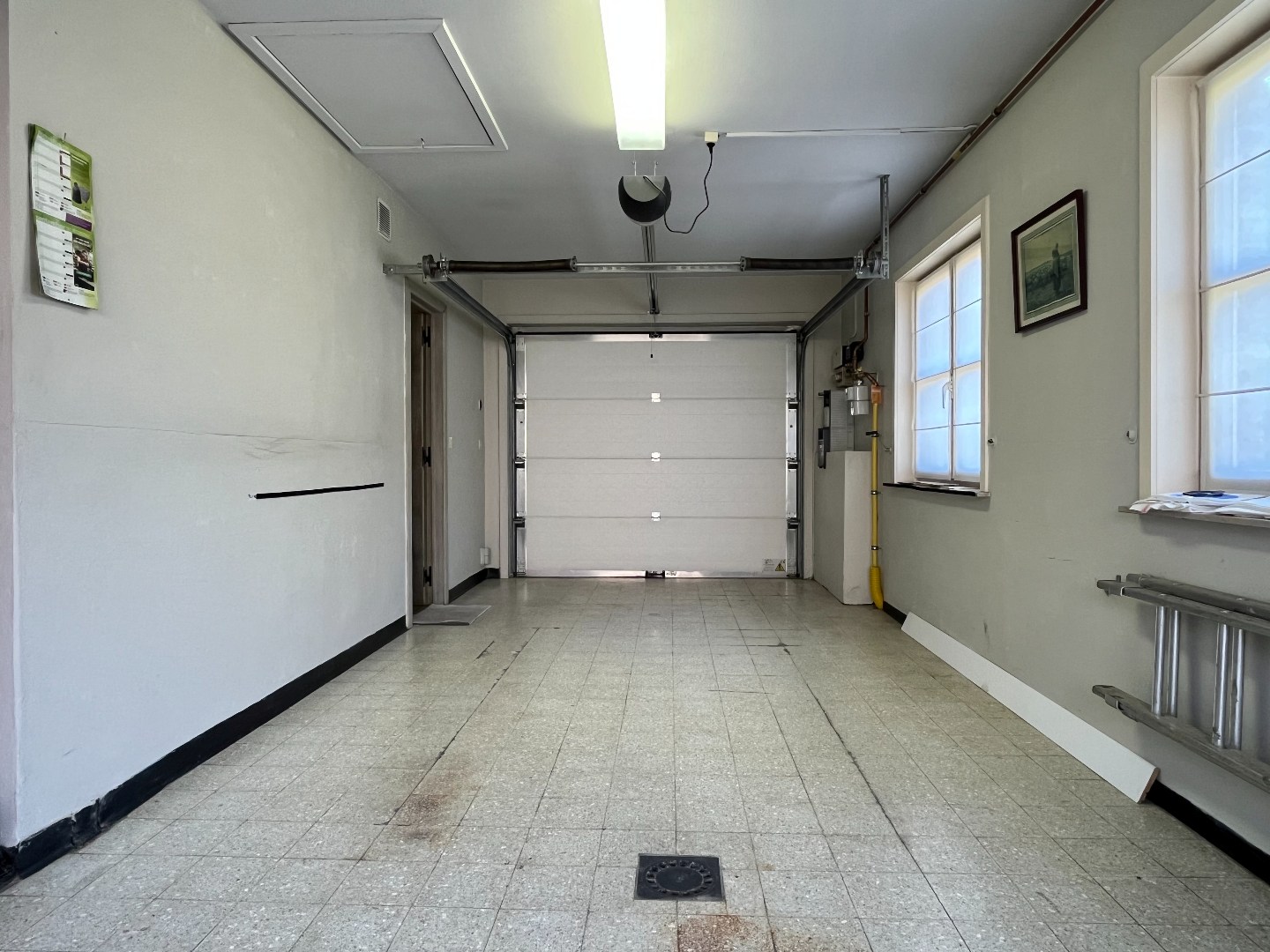De woning beschikt over een diepe garage met aansluitingen voor een wasmachine en ruimte voor de technische installaties. De ruime zolder biedt, mits het plaatsen van een vaste trap, de mogelijkheid om extra kamers te creëren.
