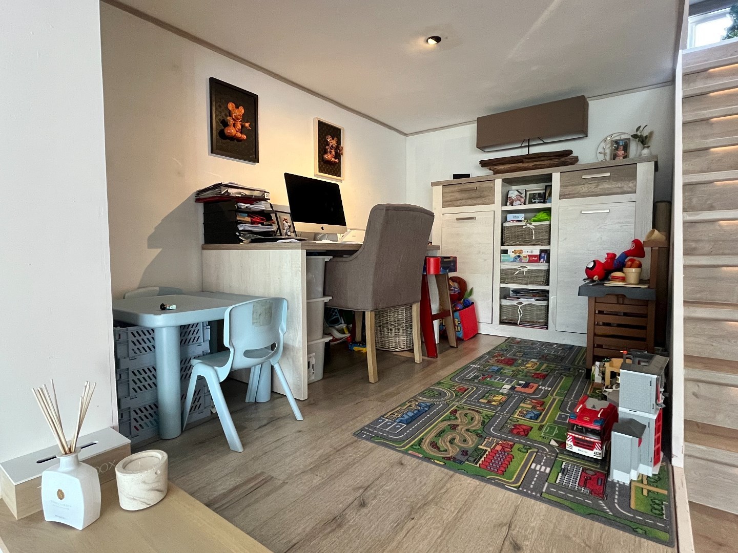 Verder kom je in de open en lichtrijke leefruimte, die overgaat in de moderne keuken met kookeiland. Vanuit de leefruimte heb je een mooi zicht op de diepe tuin. Aansluitend aan de leefruimte is er een aparte bureauruimte, ideaal voor thuiswerk of hobby.
