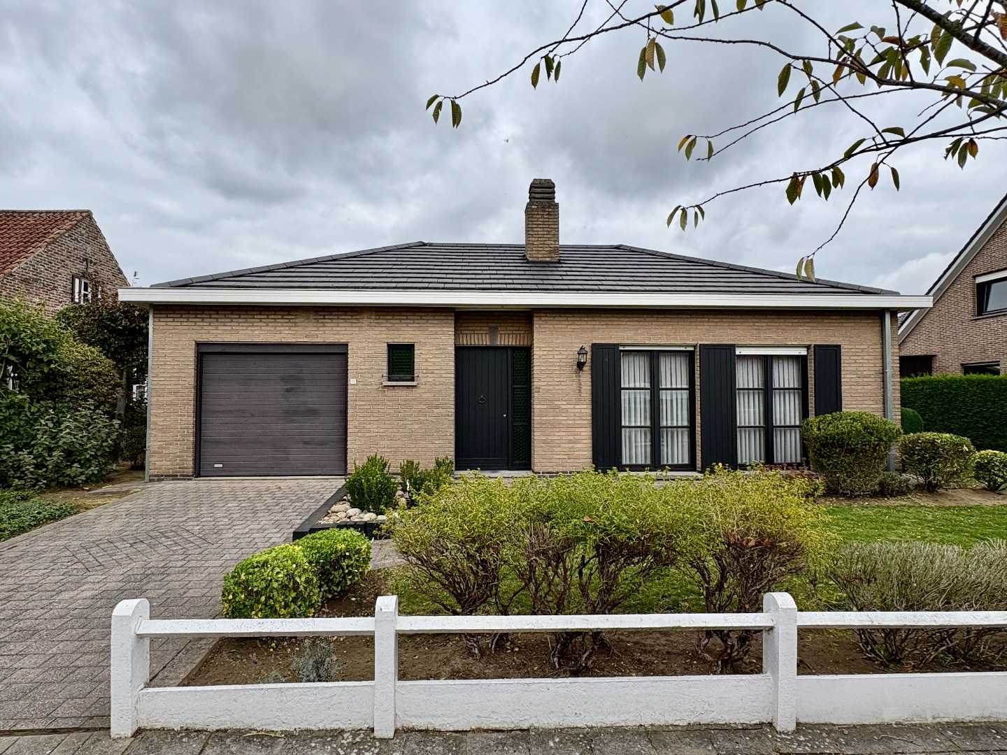 Gelijkvloerse villa op 614 m² met 3 slks en een inpandige garage.