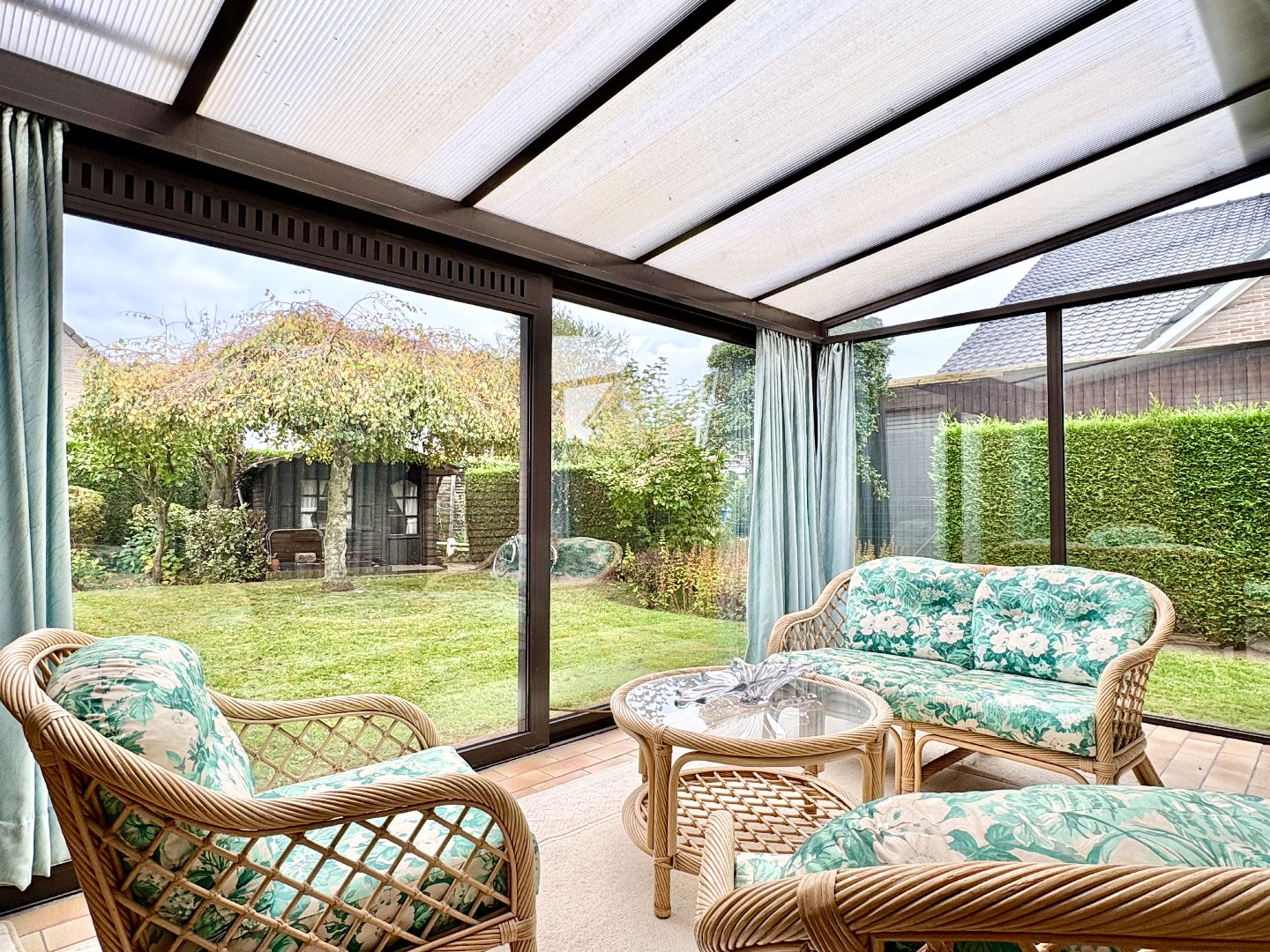 De tuin is voorzien van een tuinhuis, veranda, zonneterras en is omheind.