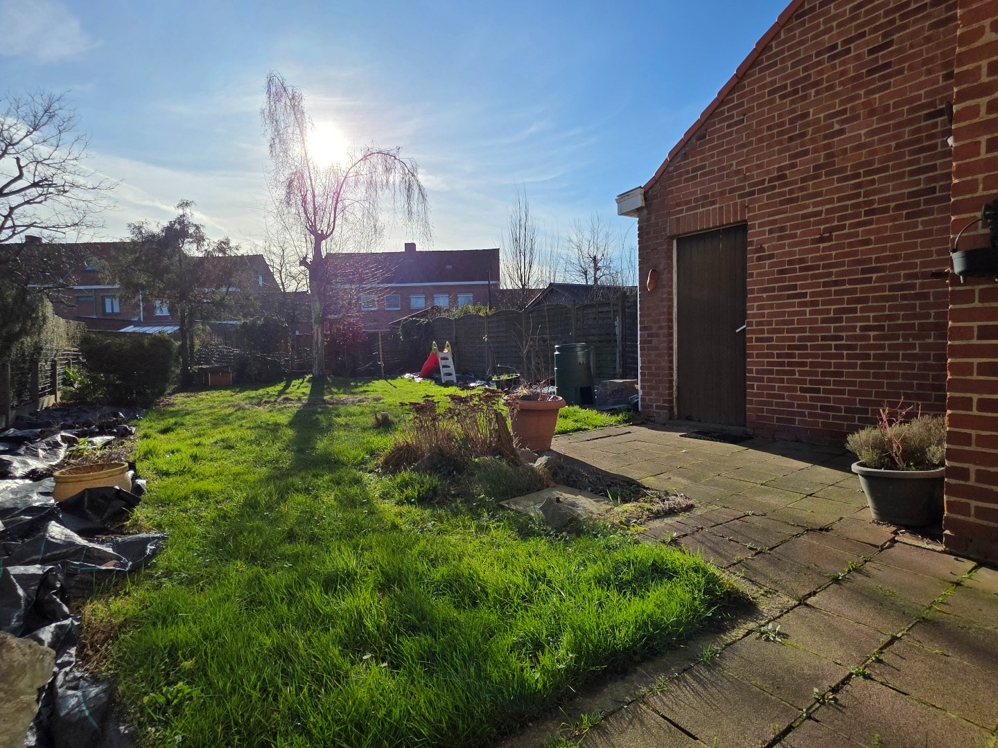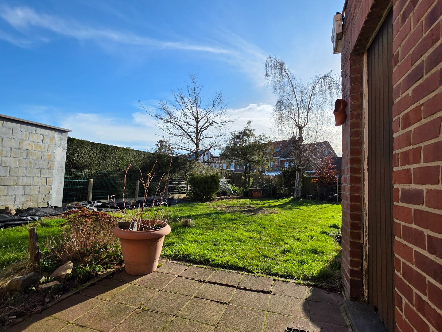 Ruime zuid-georiënteerde tuin. Er is een oprit naast de woning waar er zeker 2 auto's achter elkaar kunnen en een aparte garage.