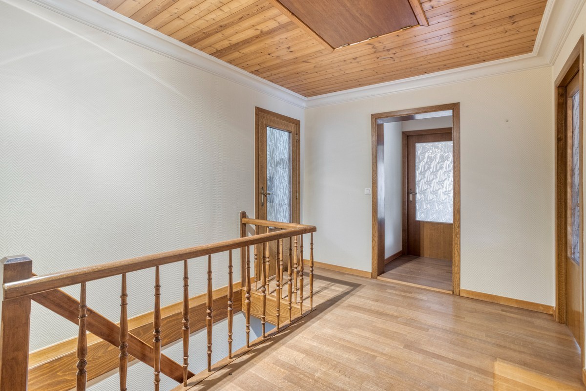 Het verdiep bevat 3 echt ruime slaapkamers en een badkamer. Overal parket en overal gebruik van massief eik. De badkamer is voorzien van een groot bad, toilet en wasmeubel. Een schuifladder brengt ons naar de zolder. Hier zijn diverse mogelijkheden mogelijk.