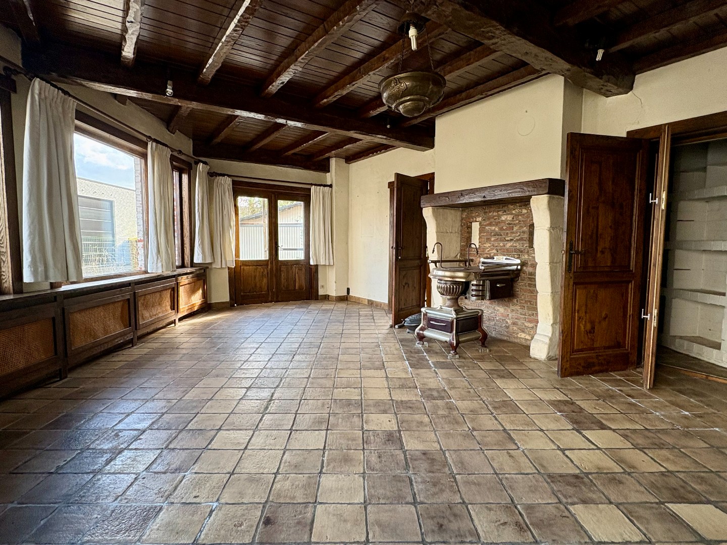 Deze woning is groot, echt groot! Zo heeft deze is een zij-oprit met achteraan een grote garage, tuin en koer. Inkom met aparte bergplaats, leefruimte met haard en aanpalende keuken. Leuke troef is de uitbouw, hier is een extra leefruimte gecreëerd en berging + wijnstockage.
