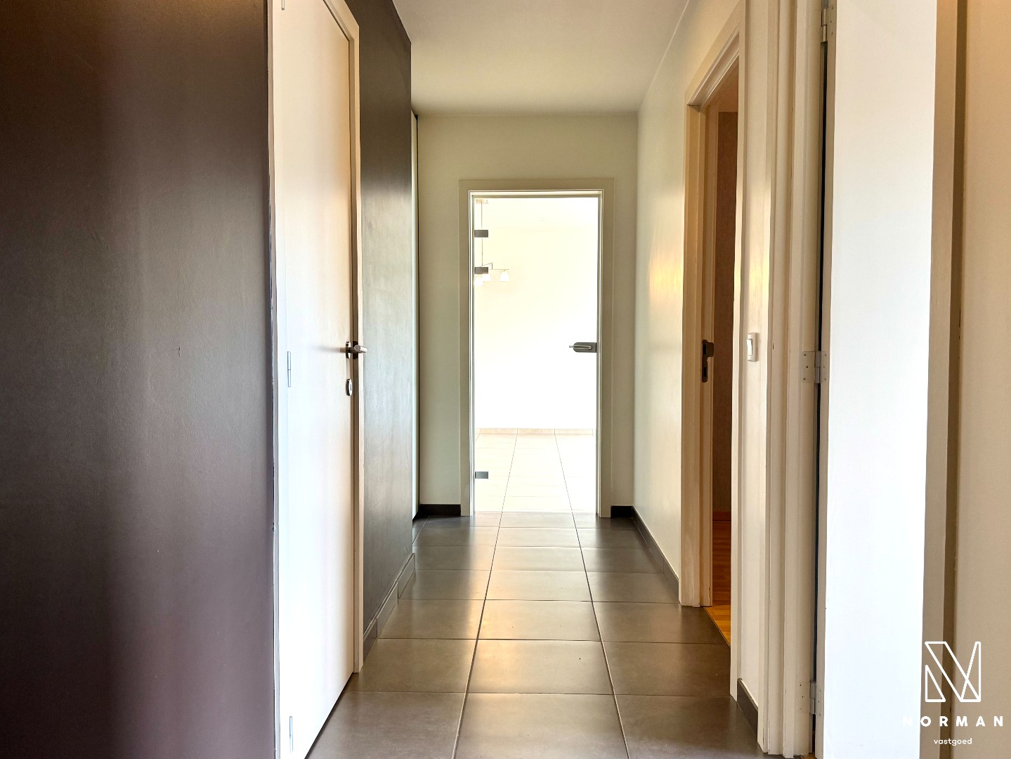 Het appartement heeft volgende indeling: inkomhal met apart toilet. De aangename leefruimte beschikt over grote raampartijen waardoor er veel natuurlijk licht binnenkomt. De keuken is volledig uitgerust met nieuwe toestellen: oven, dampkap, fornuis, vaatwasser en koelkast. Aanpalend is er nog een extra opbergruimte die onder andere kan worden gebruikt als wasplaats.