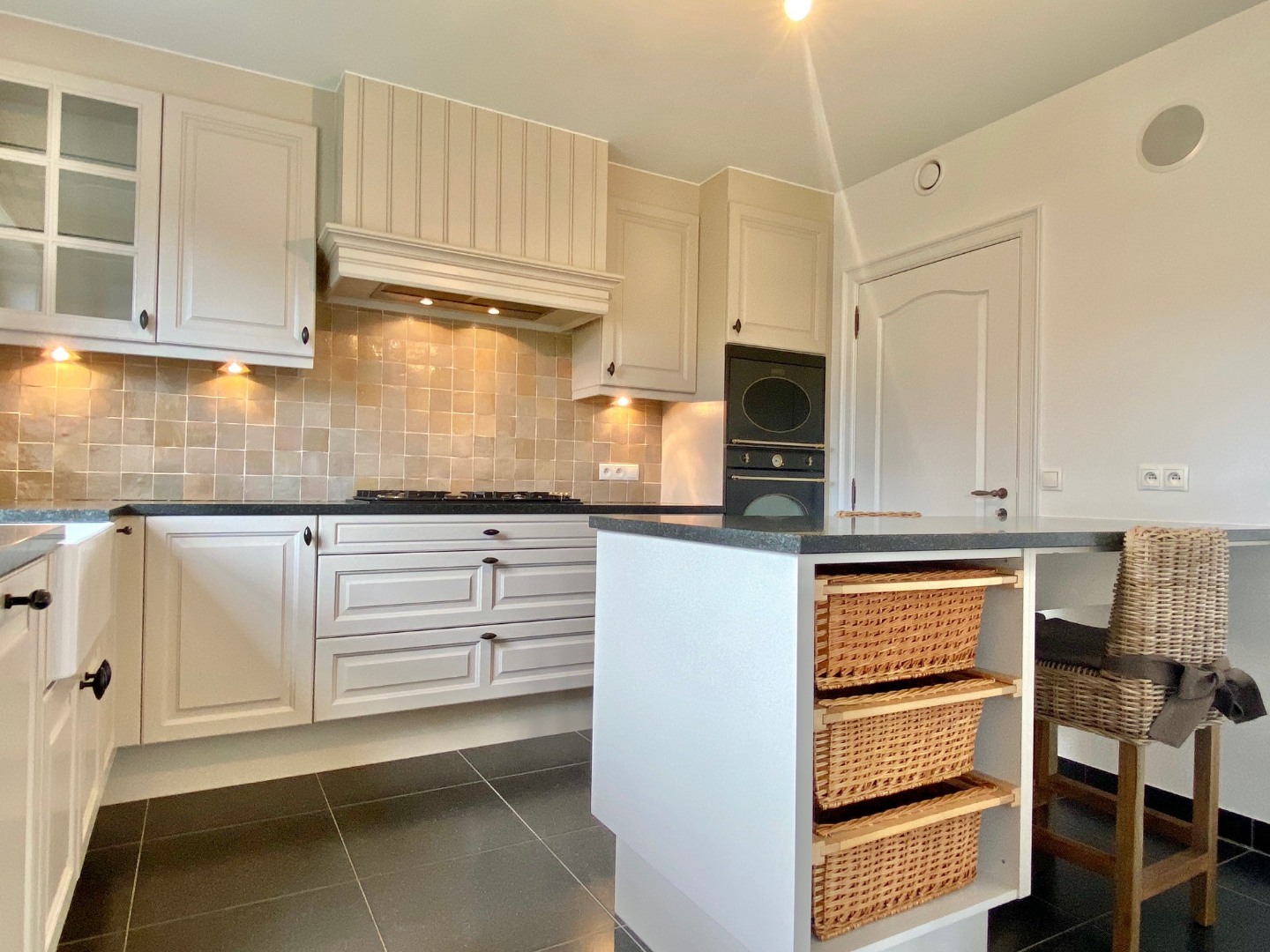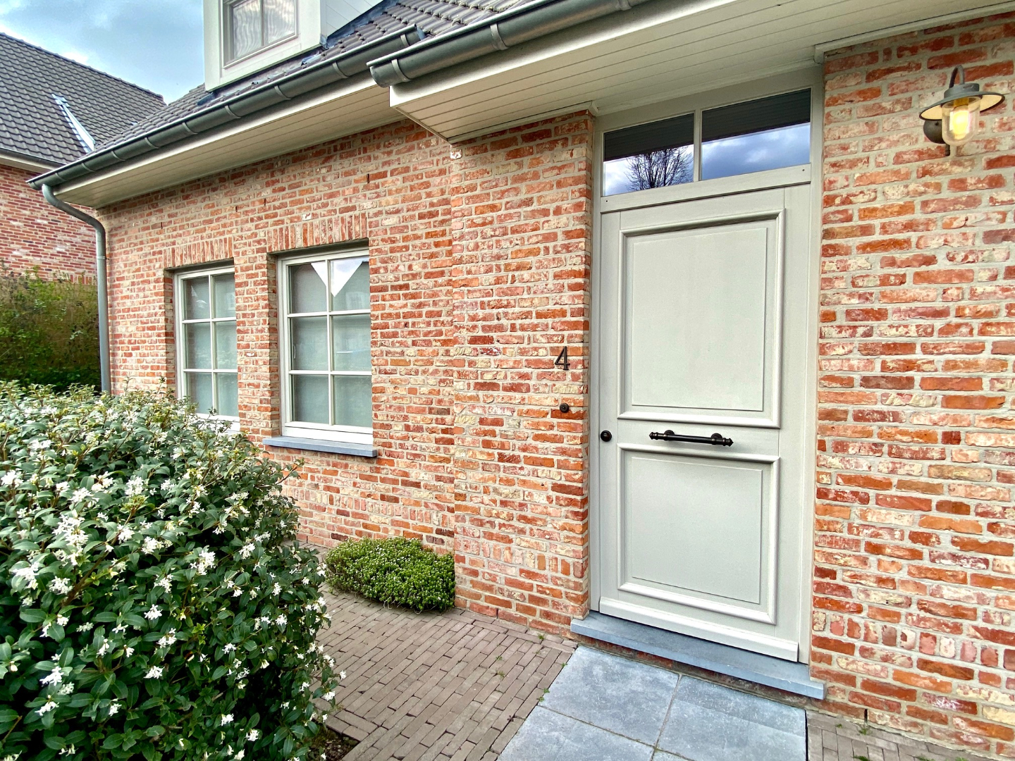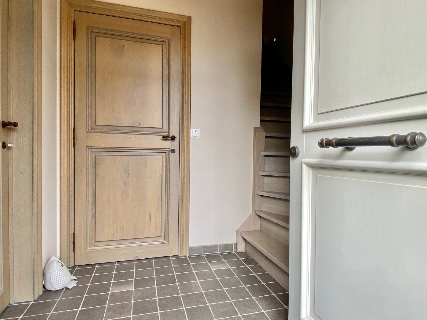 “Het zit’m in de details!” werkelijk ieder hoekje, ieder klinkje is voorzien van een upgrade. Een prachtig aangelegde voortuin met dubbele oprit verwelkomt ons aan de woning. De inkom is voorzien van vestiaire, apart toilet (natuursteen, indirect ventilatie,..), trap met sfeerverlichting en massieve deuren.