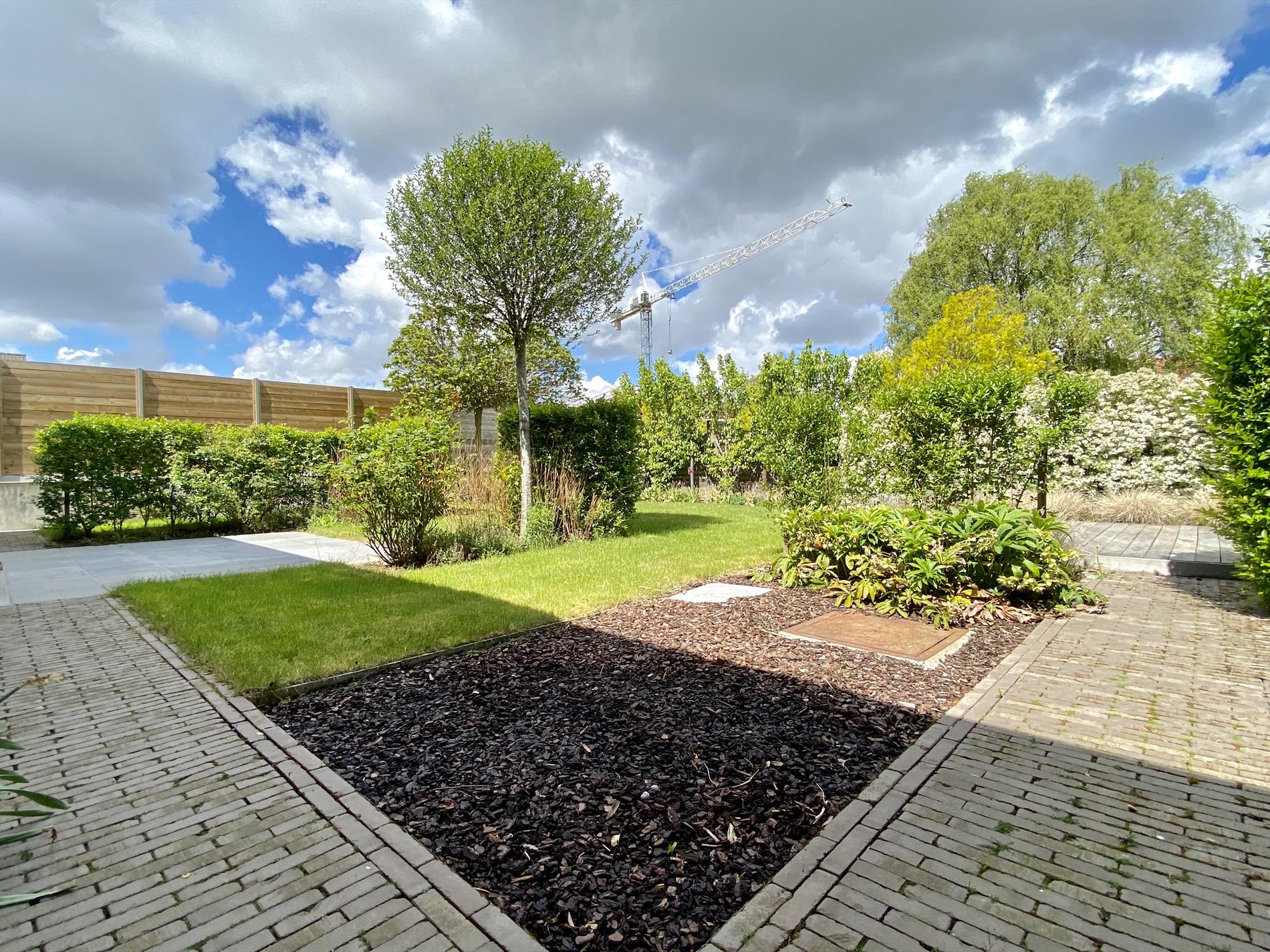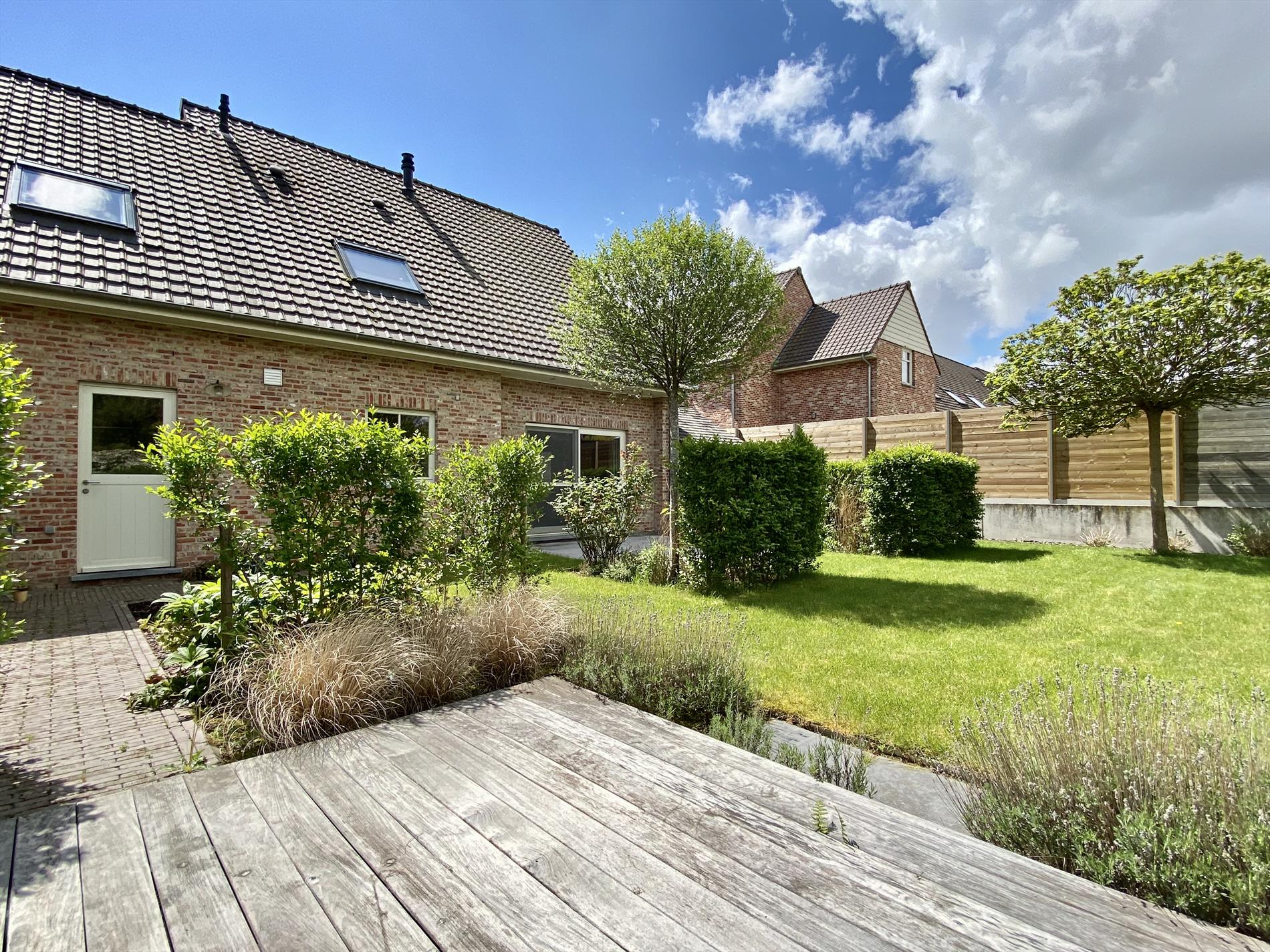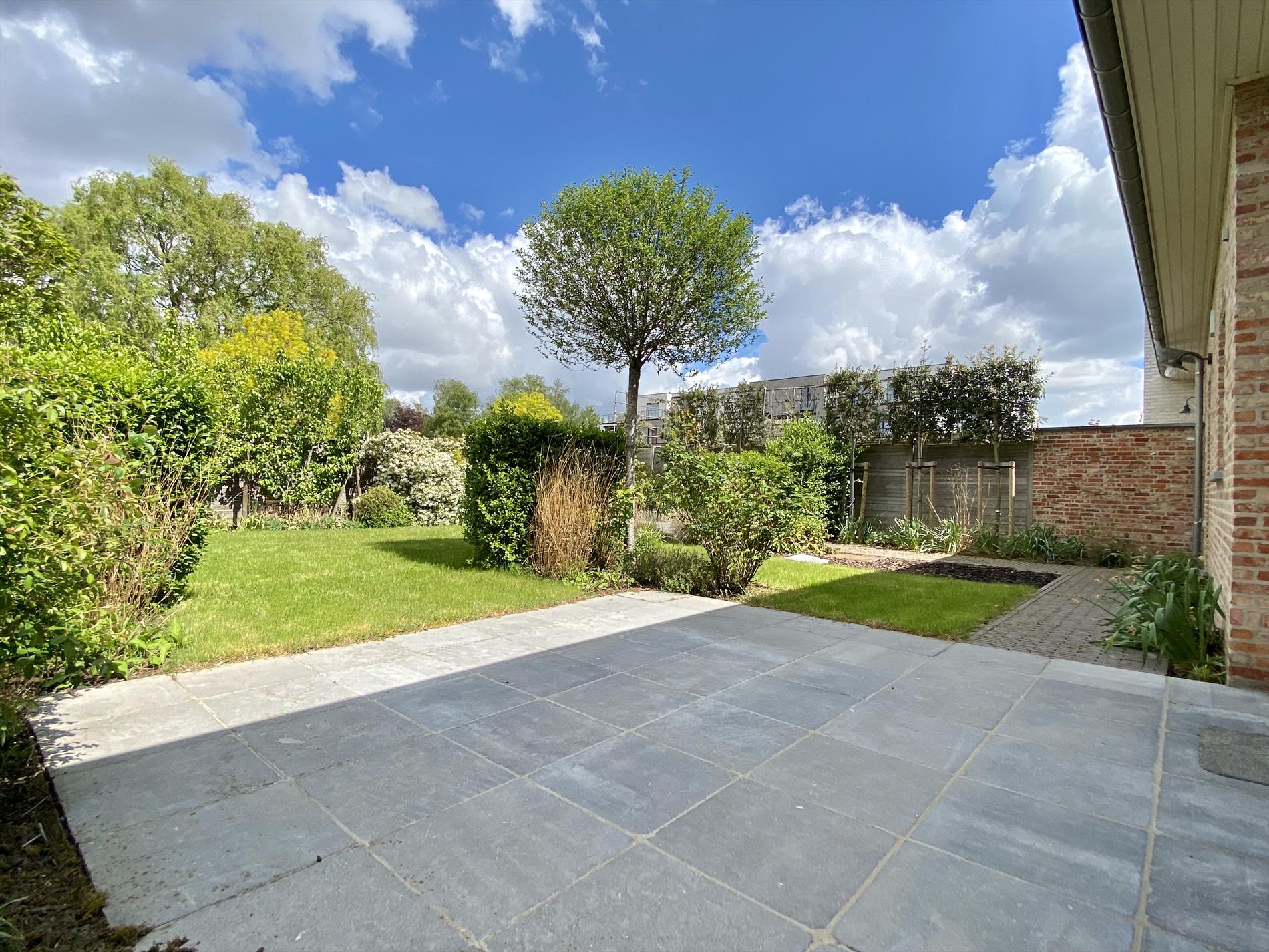 De tuin is volledig aangelegd met het oog op privacy en onderhoudsvriendelijkheid. Een zonneterras, leef terras, tuinhuis,..