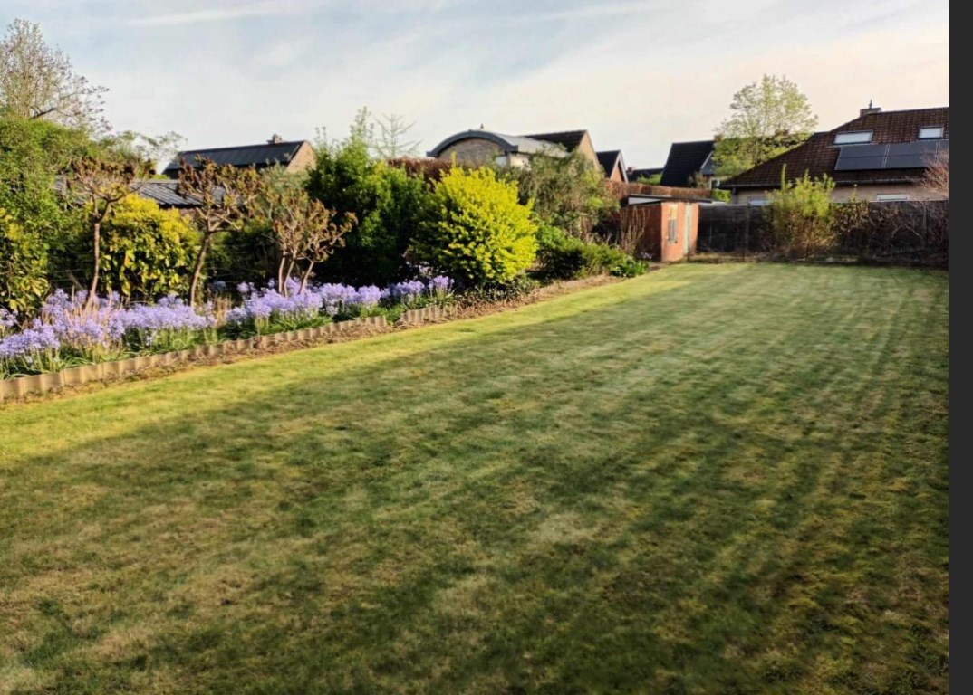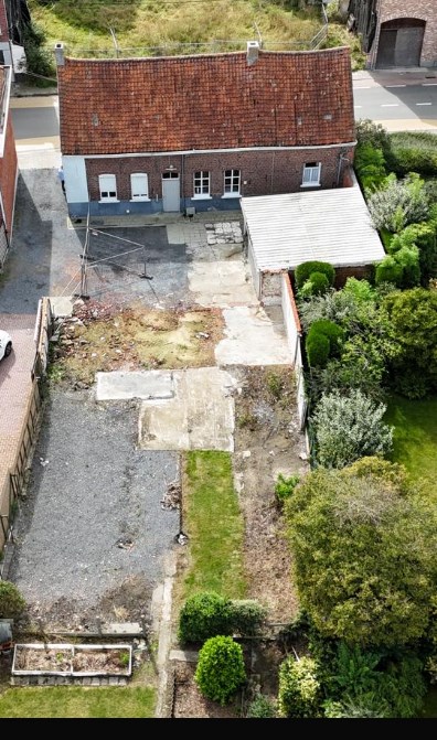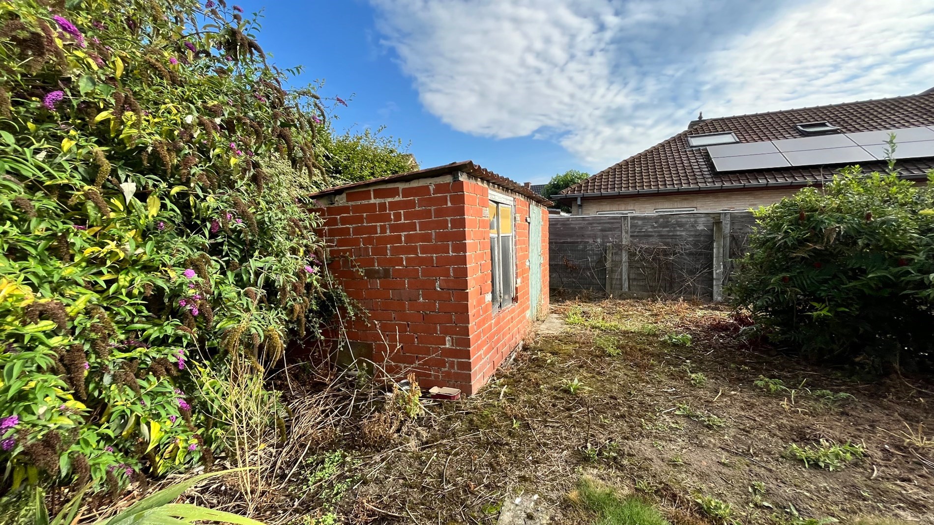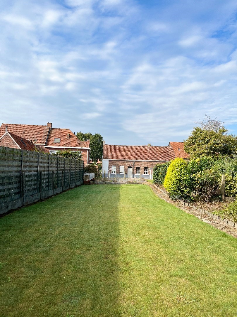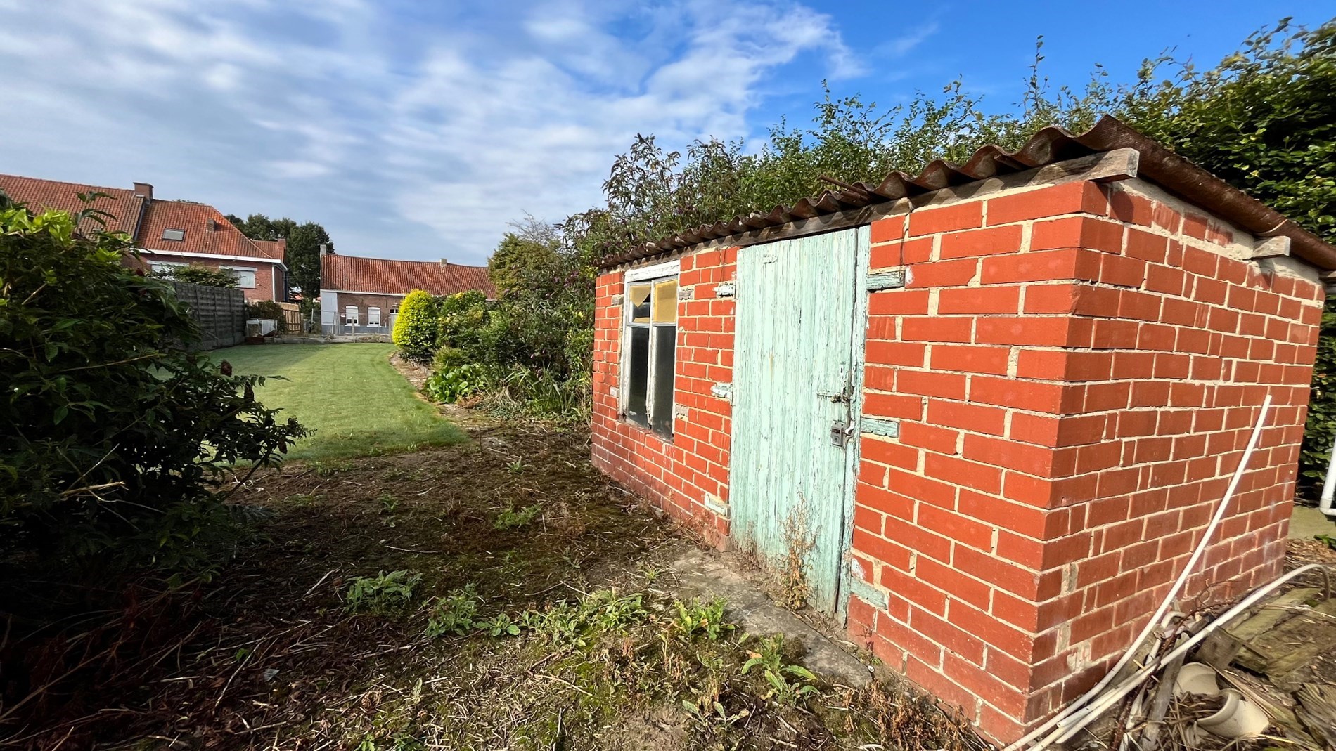 U kan de achtertuin van de woning via de erfdienstbaarheid/zijweg bereiken. Hier ziet u onmiddellijk het mooie stuk grond. Het middelste hok werd recent afgebroken waardoor het open stuk grond mooier tot zijn recht komt.