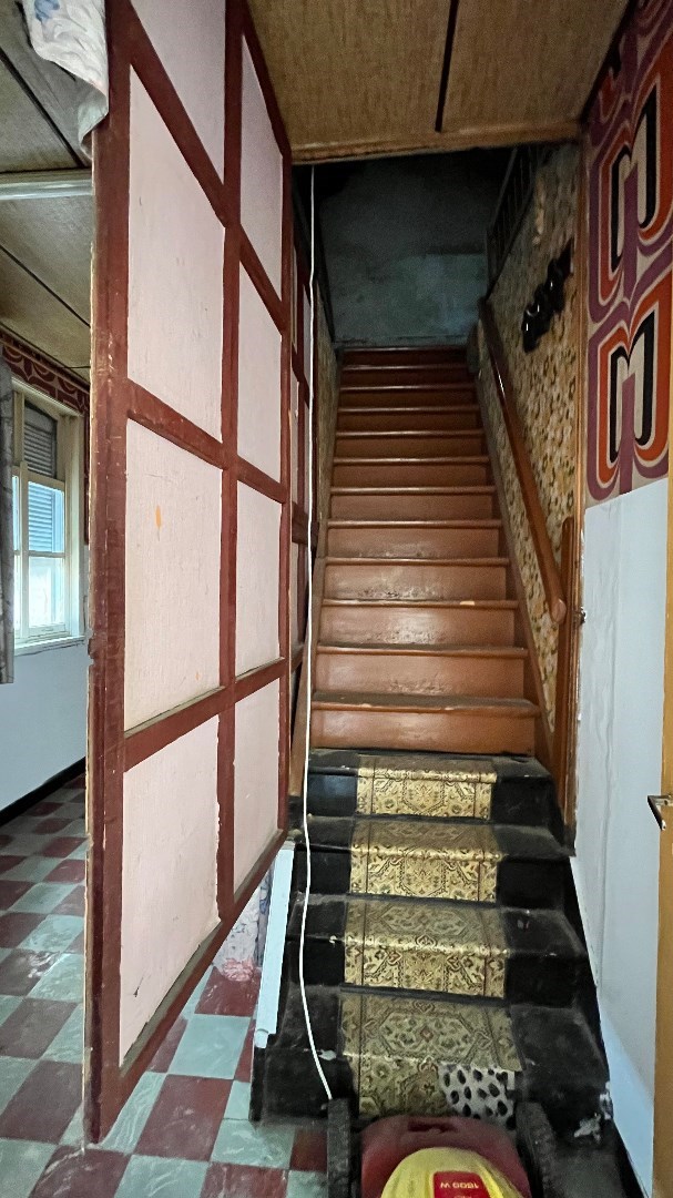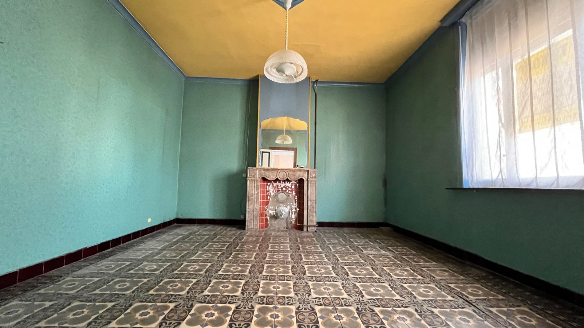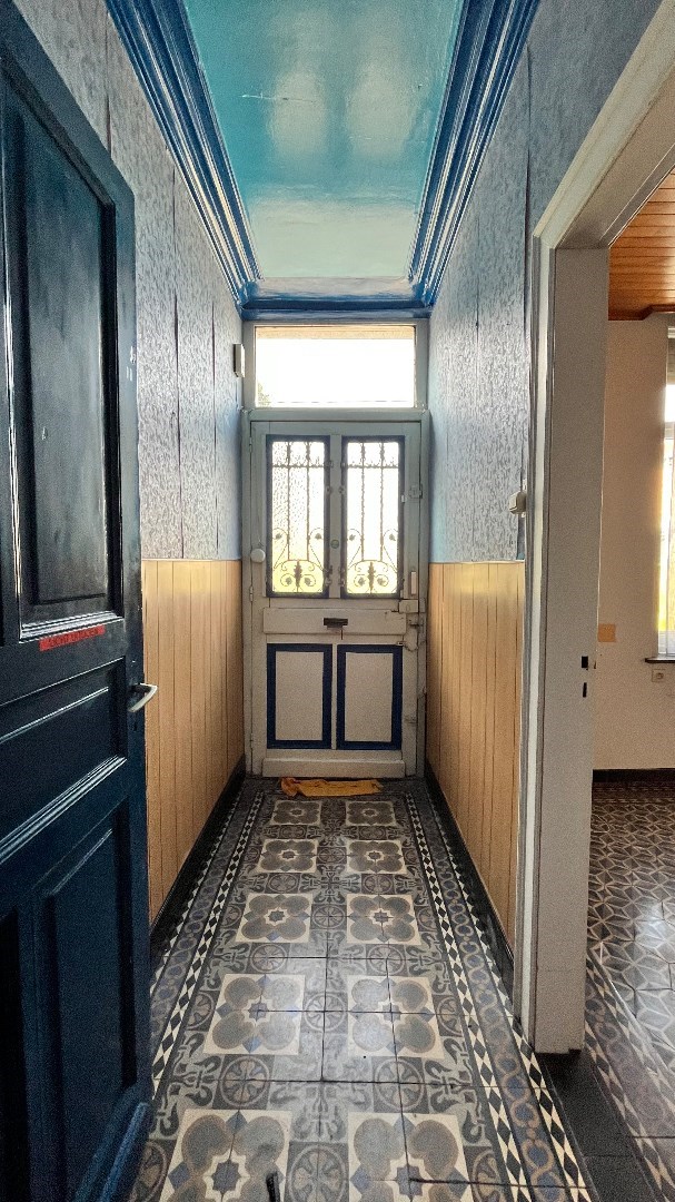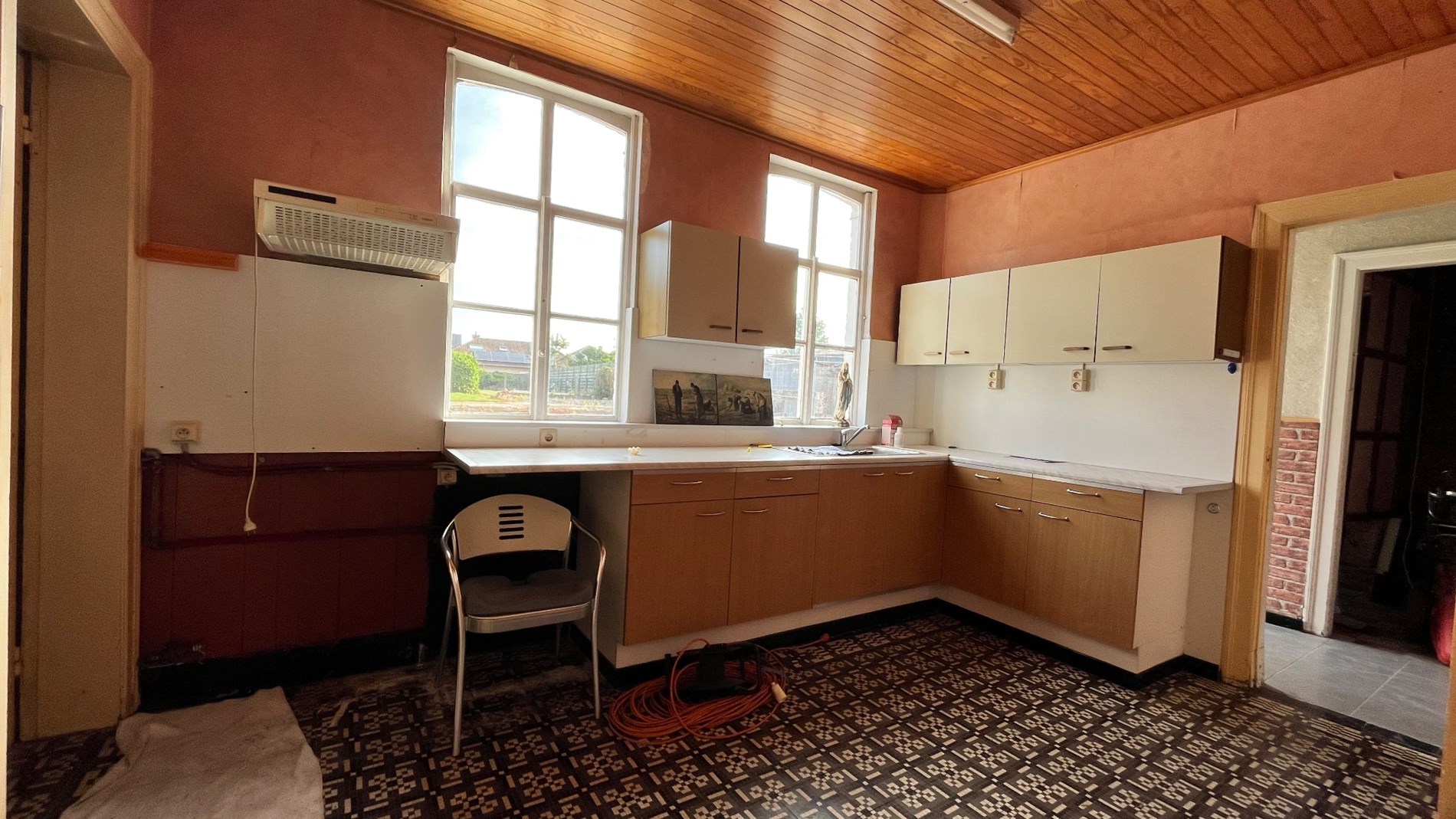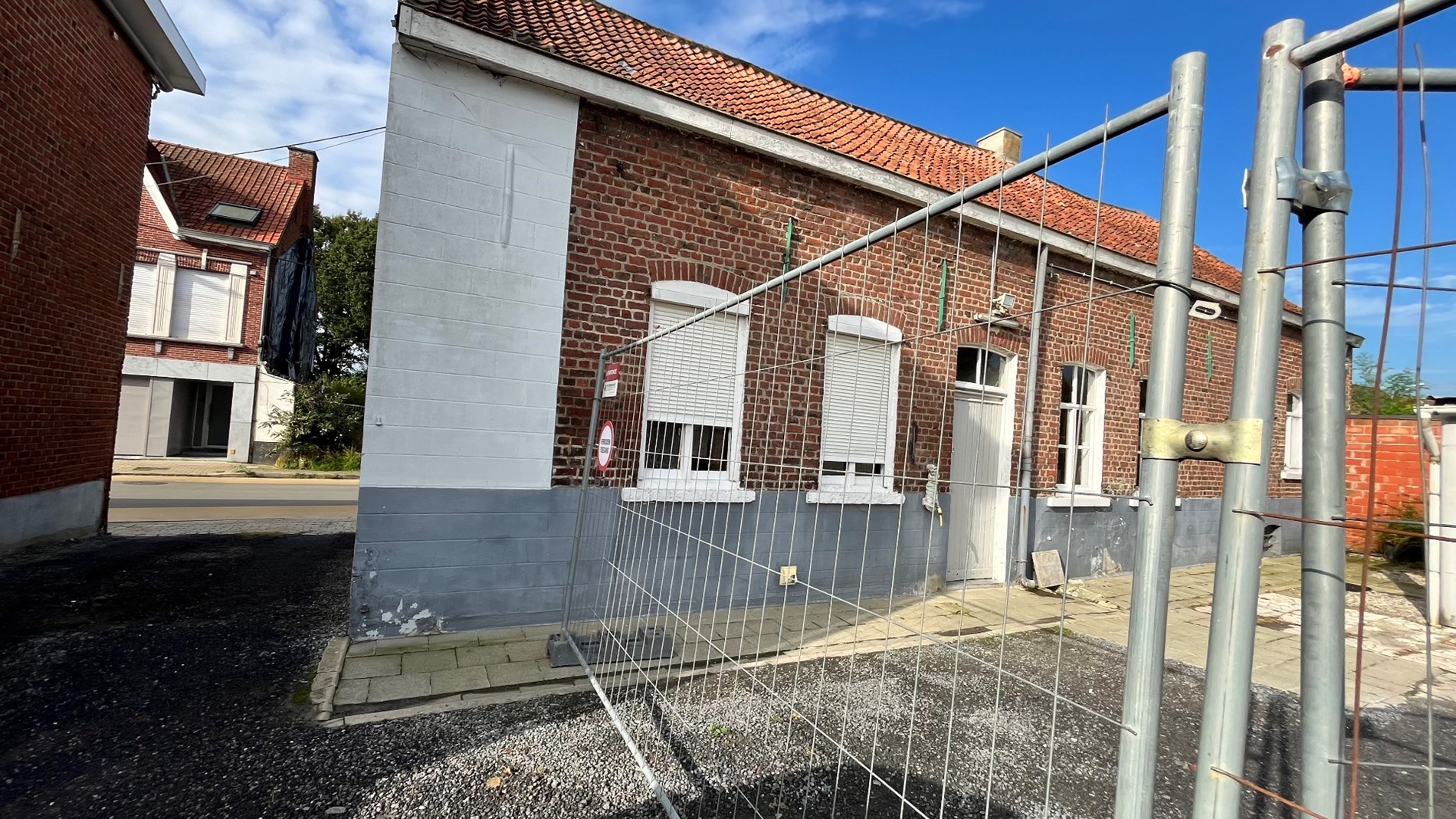 De te renoveren woning heeft de volgende indeling: inkom, kamer, toilet, leef en zitruimte, keuken, kelder, voute kamer, berging, trap naar het eerste verdiep die nu een open zolder is.