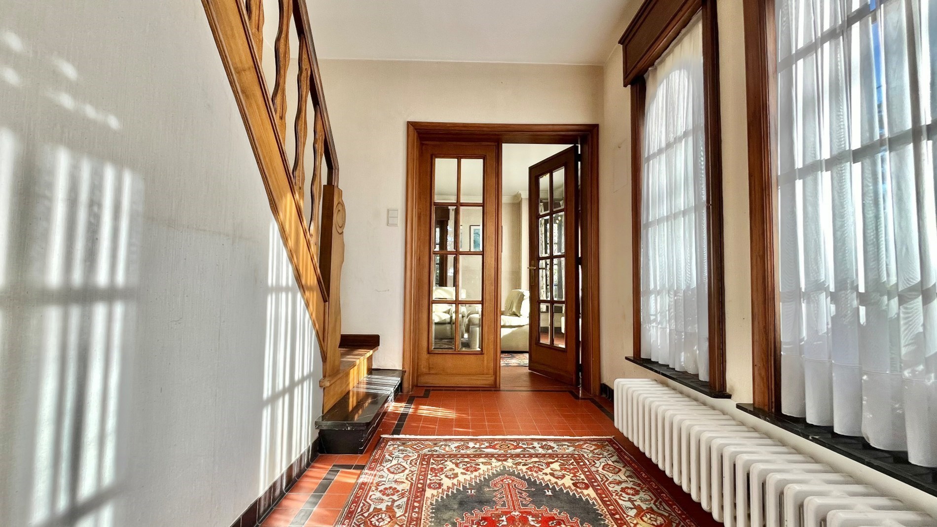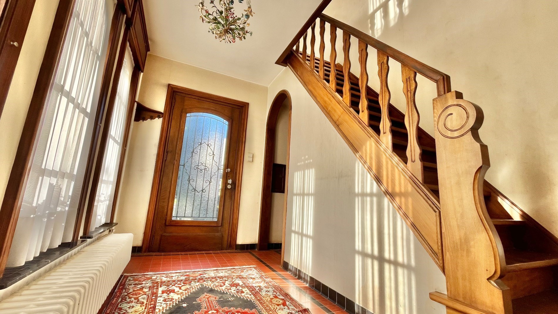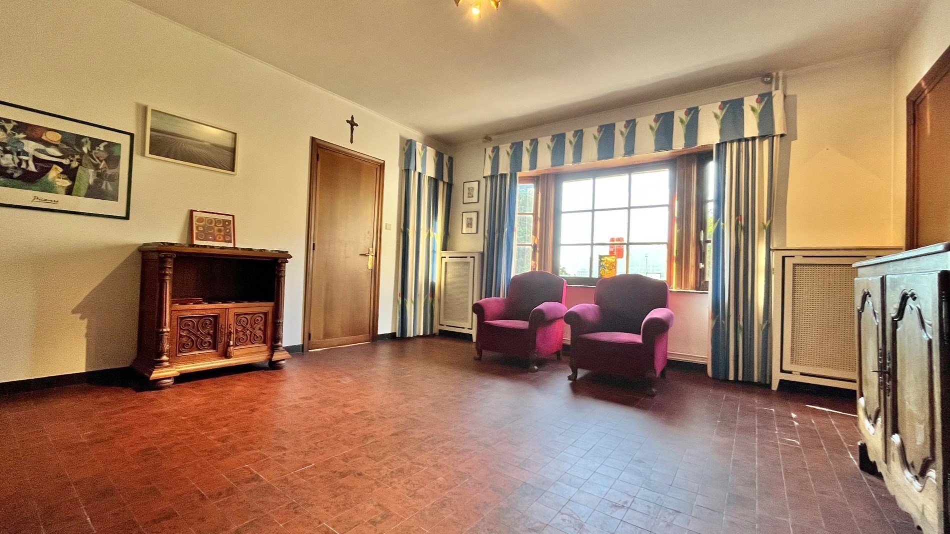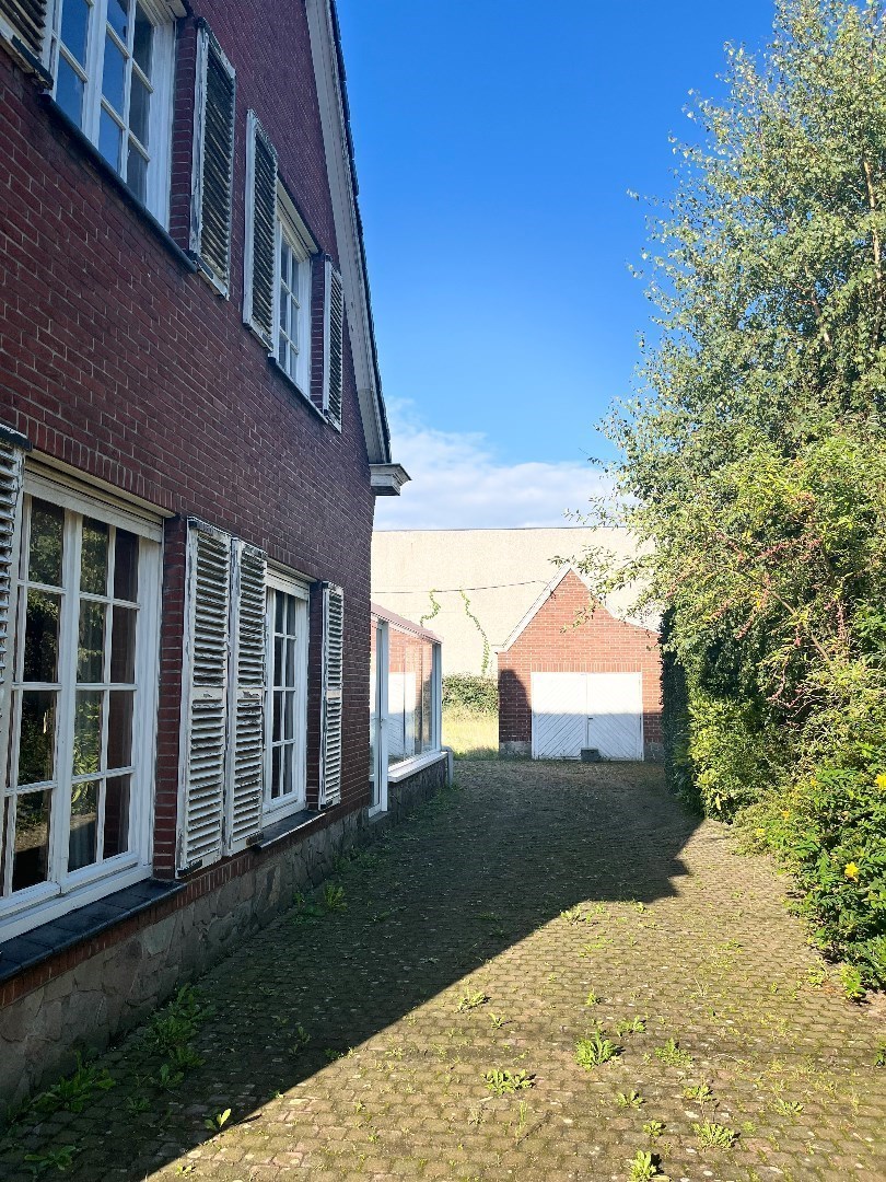 Het pand is een authentieke villa (architect O. Vanderhaeghe) met een grote tuin, een ruime oprit en bijgebouwen van 80 m², inclusief de garage. Bij binnenkomst word je verwelkomd in een lichte en royale inkomhal. De ruime leefruimte is voorzien van een sfeervolle houtkachel en een aangrenzende zitkamer. Op de begane grond bevinden zich tevens de keuken, badkamer en een veranda met mooi uitzicht op de tuin. Onder de trap is een droge kelder die extra opslagruimte biedt.
