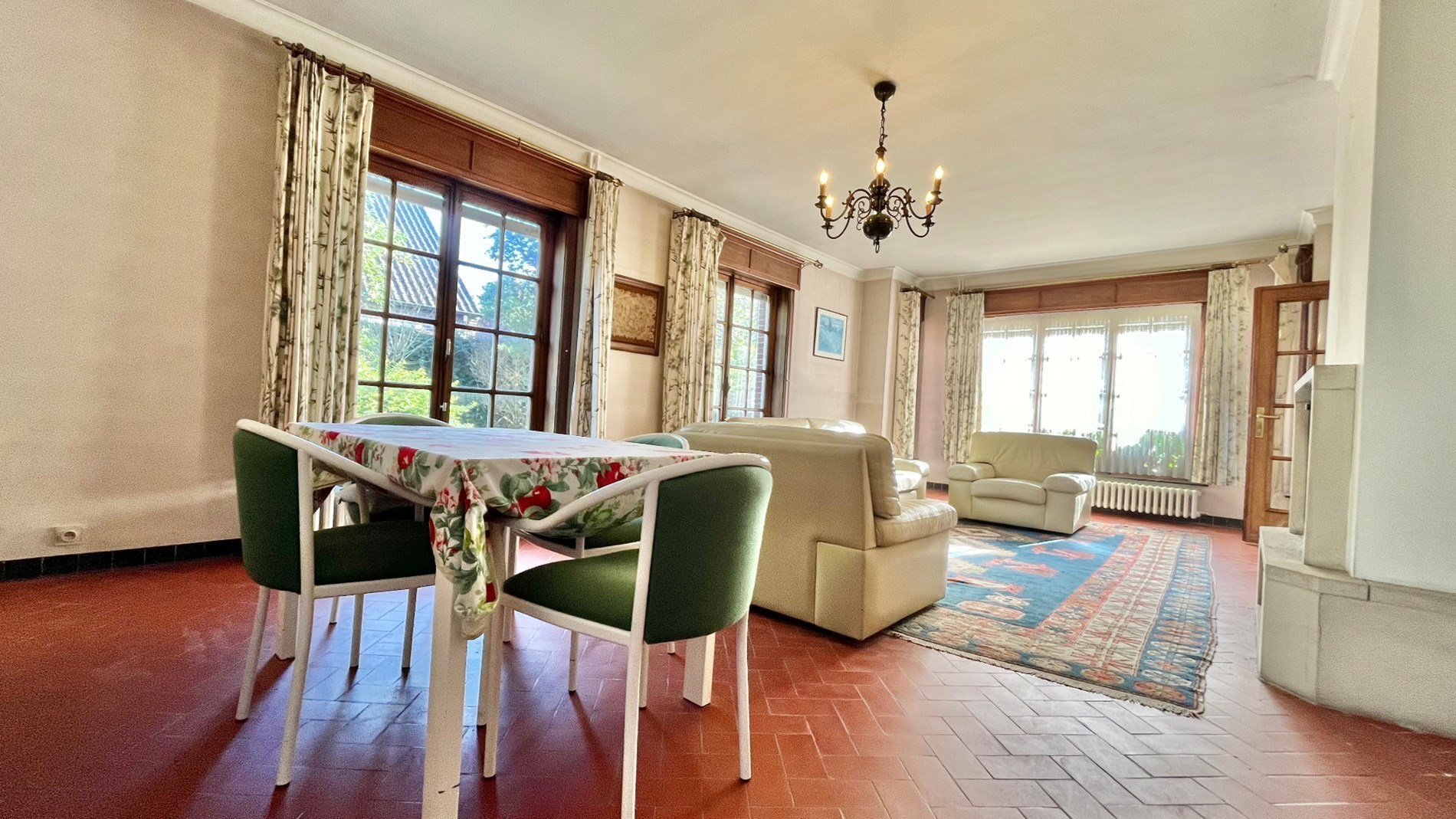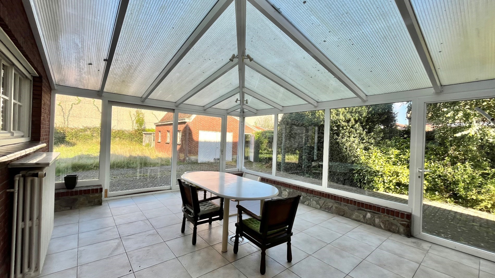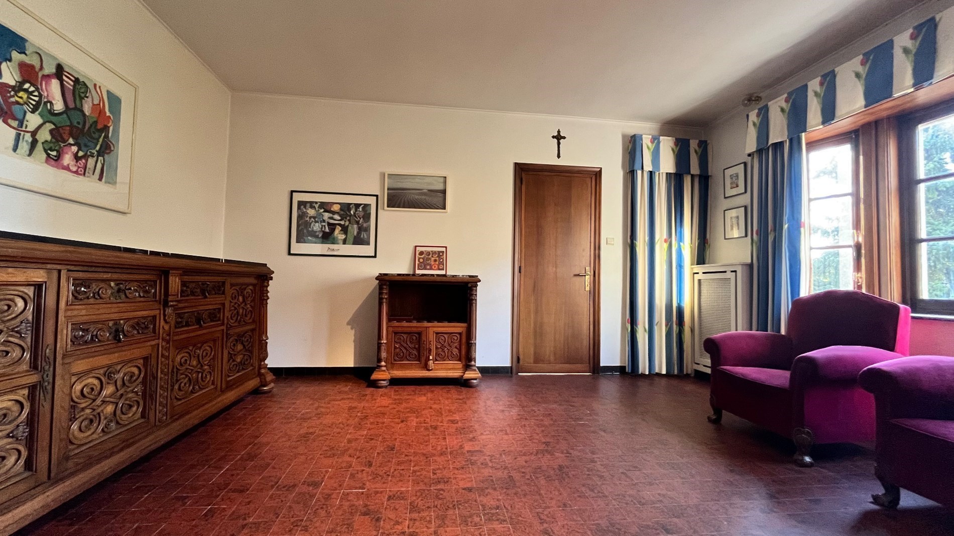 Het pand is een authentieke villa (architect O. Vanderhaeghe) met een grote tuin, een ruime oprit en bijgebouwen van 80 m², inclusief de garage. Bij binnenkomst word je verwelkomd in een lichte en royale inkomhal. De ruime leefruimte is voorzien van een sfeervolle houtkachel en een aangrenzende zitkamer. Op de begane grond bevinden zich tevens de keuken, badkamer en een veranda met mooi uitzicht op de tuin. Onder de trap is een droge kelder die extra opslagruimte biedt.
