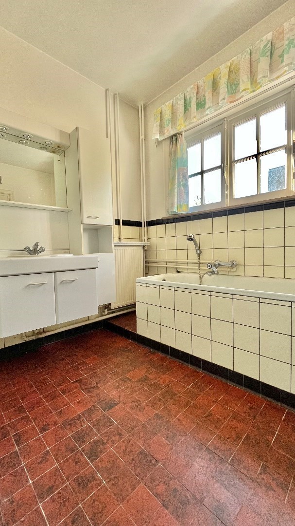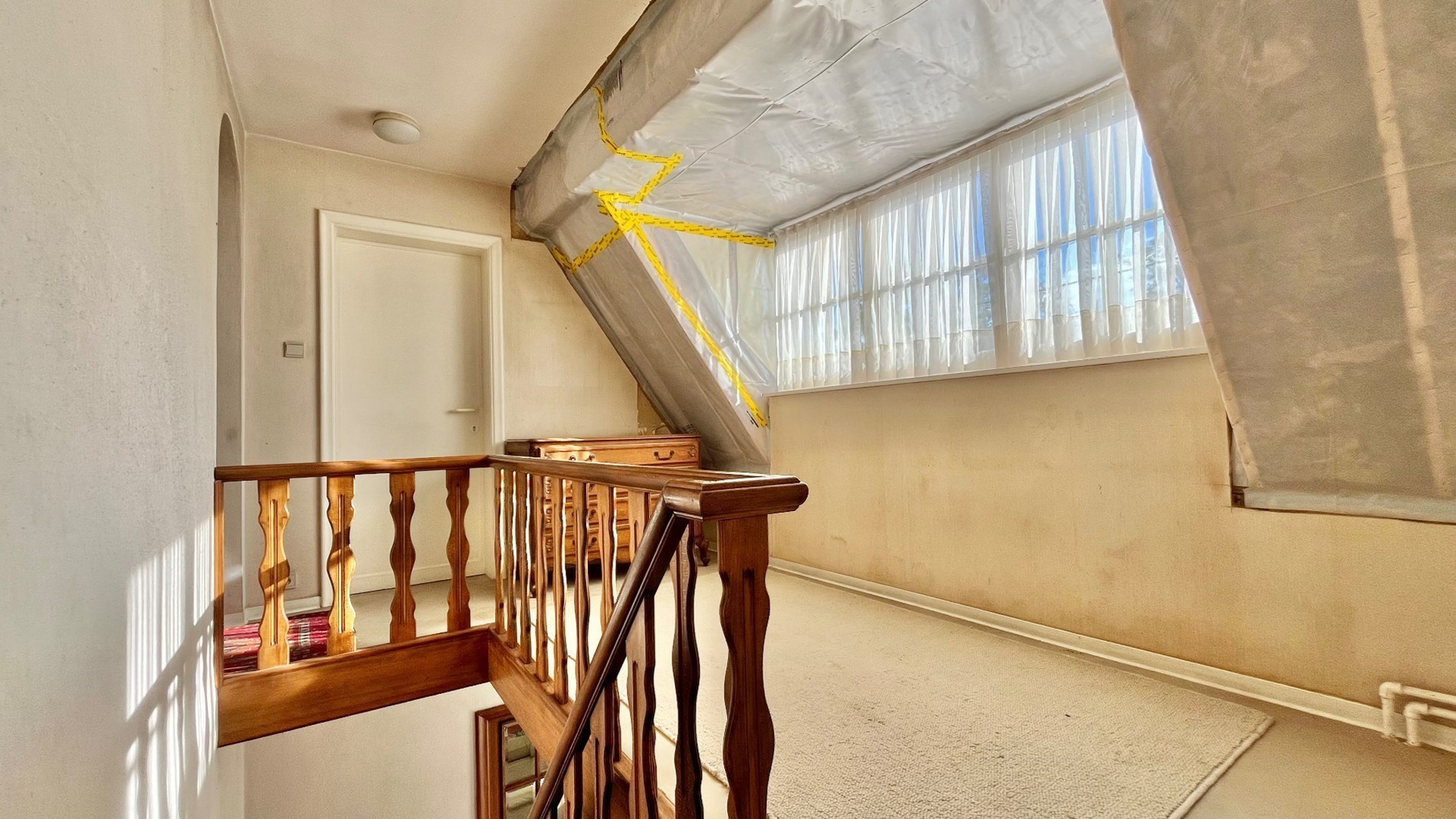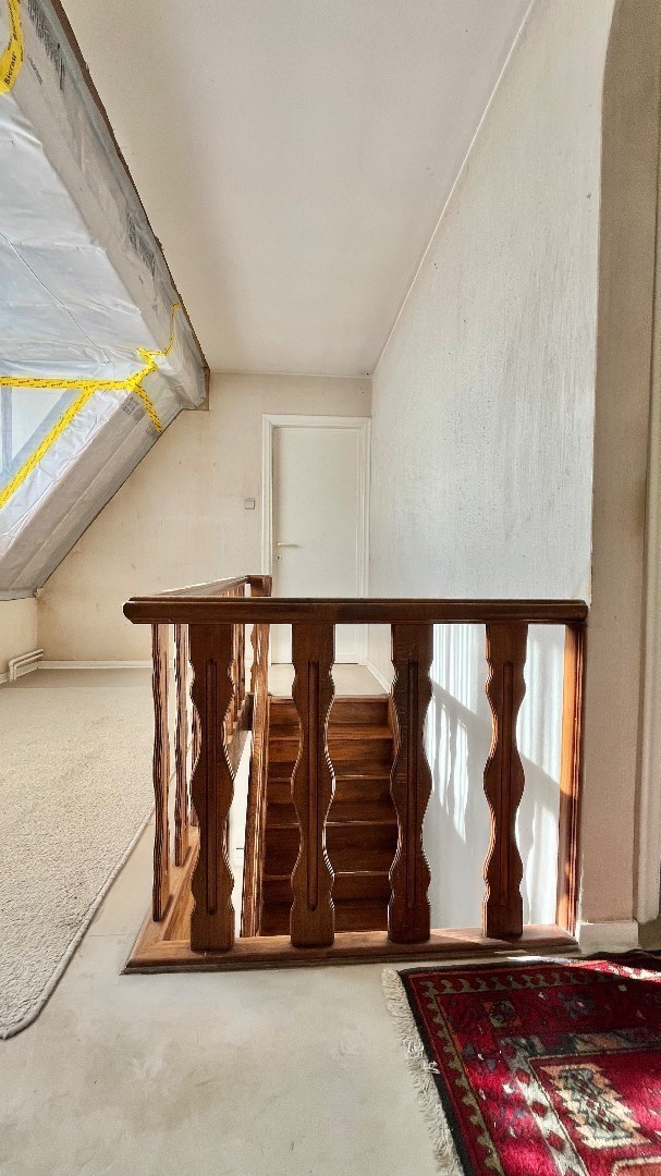 Op de eerste verdieping vind je drie slaapkamers, een apart toilet en een grote zolderruimte waar de mazoutketel is geplaatst. Het is een pluspunt dat het dak van de woning net geïsoleerd is (EPC-label C)!