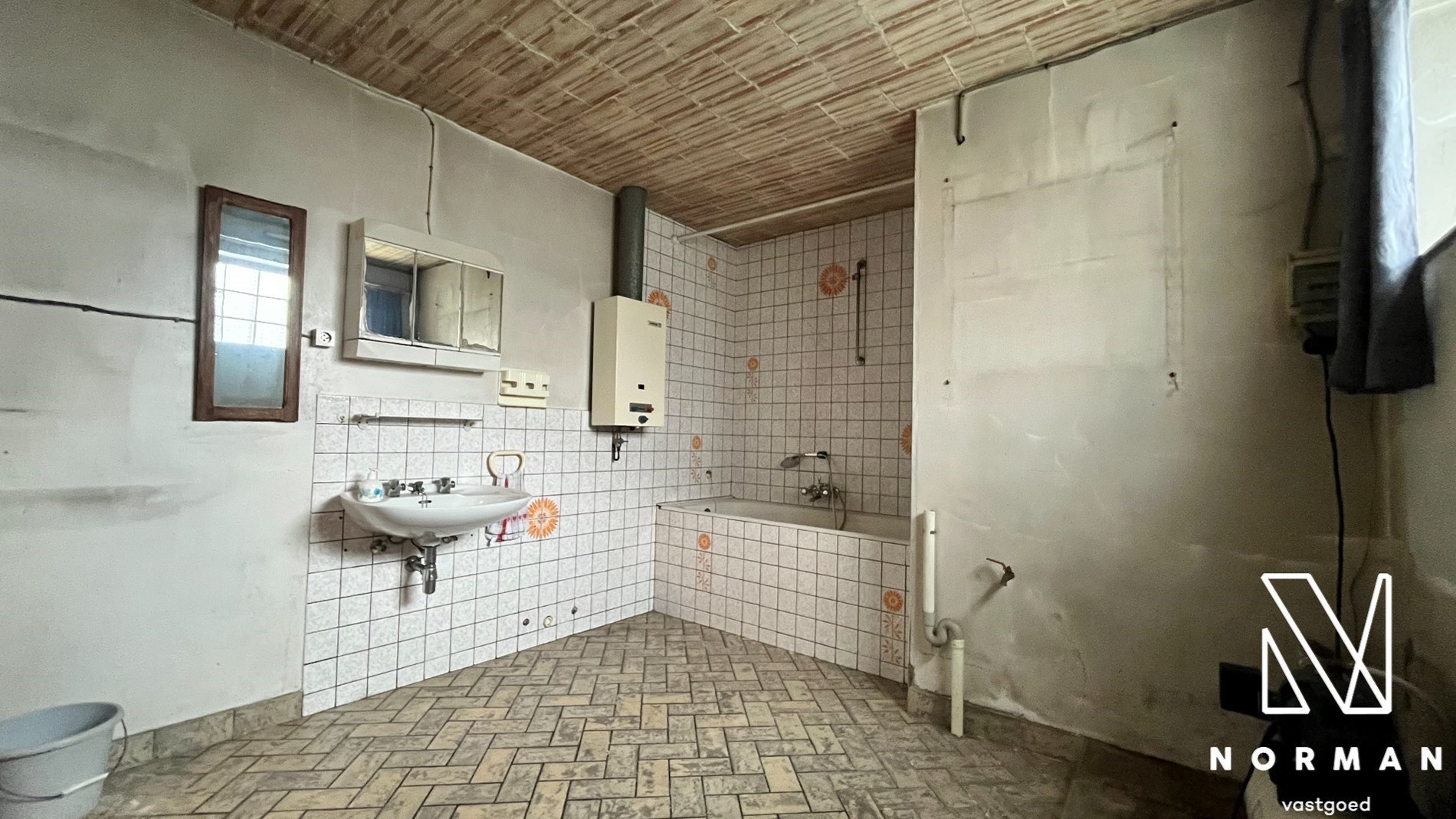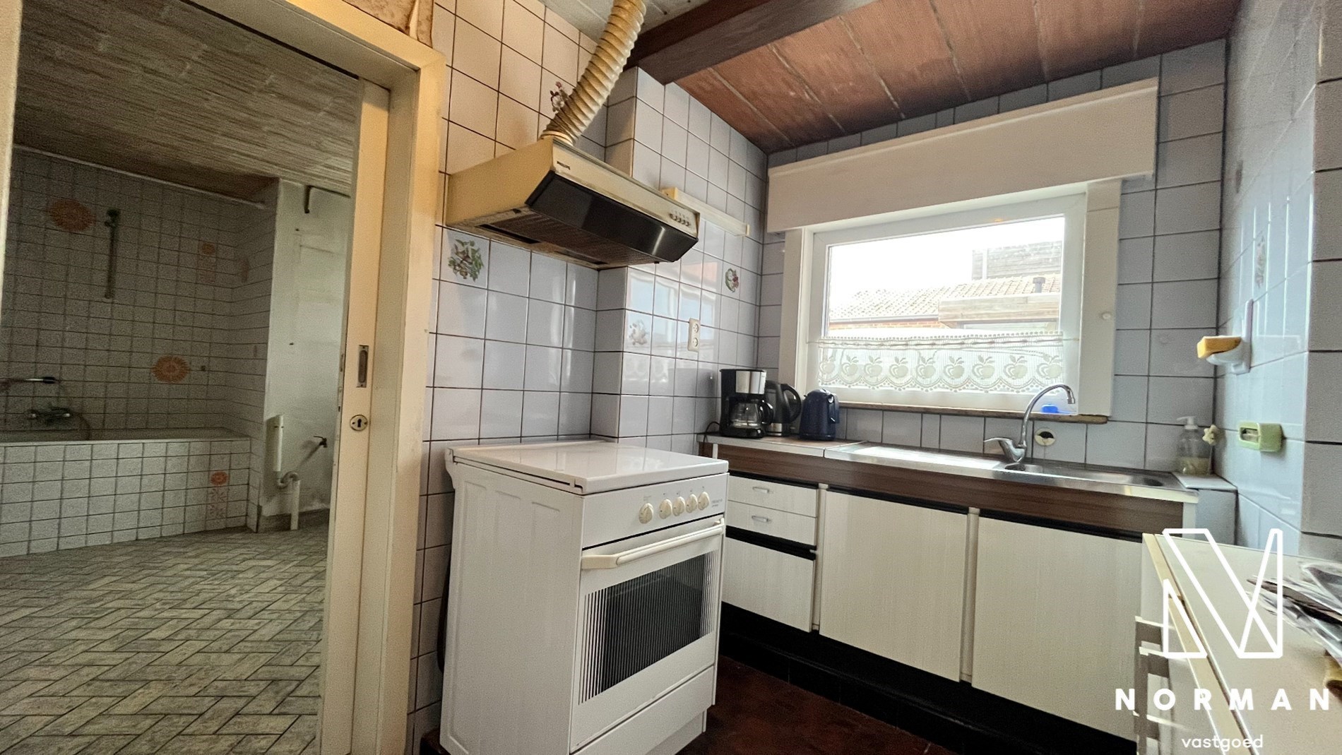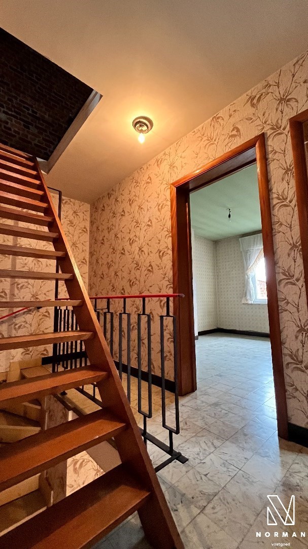 Inkomhal met voorplaats die kan worden ingericht als bureel of kamer. De ruime woonkamer met kolenkachel vormt het hart van het huis en grenst aan de keuken. Verder is er nog een badkamer met een ligbad.