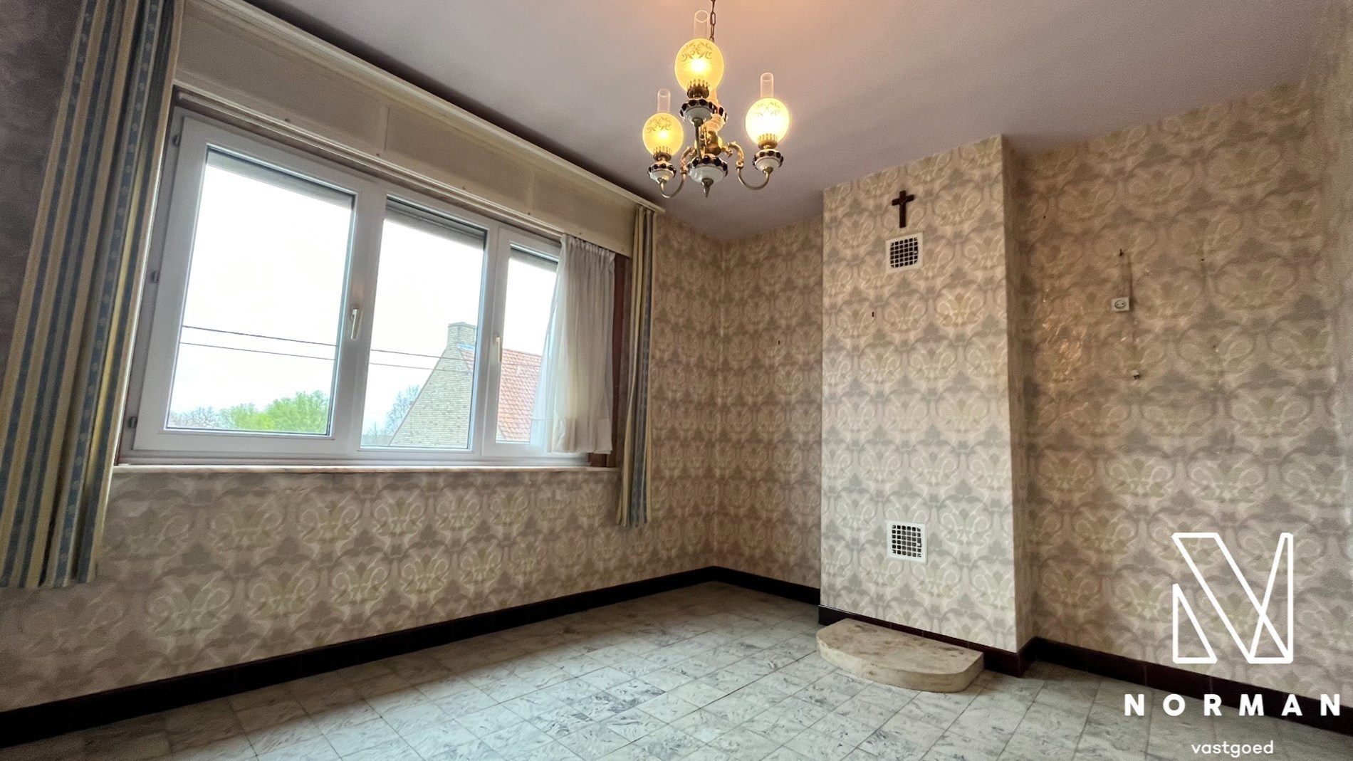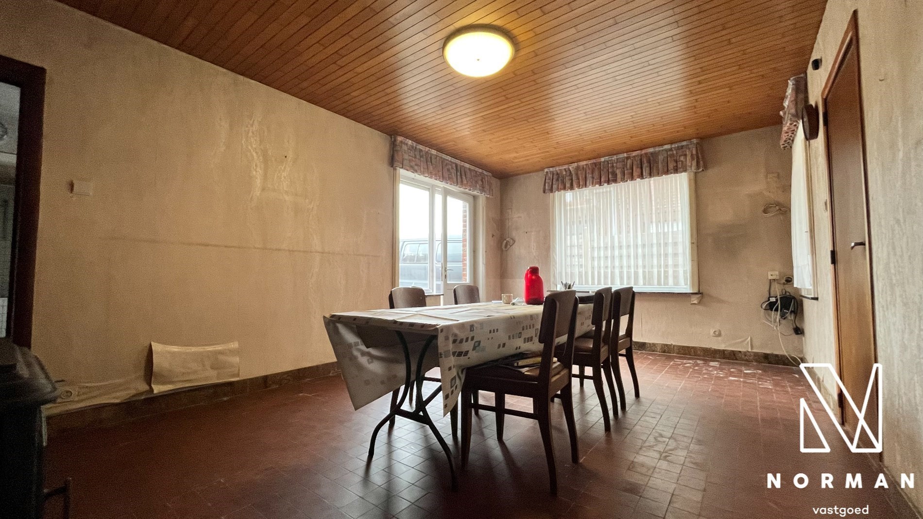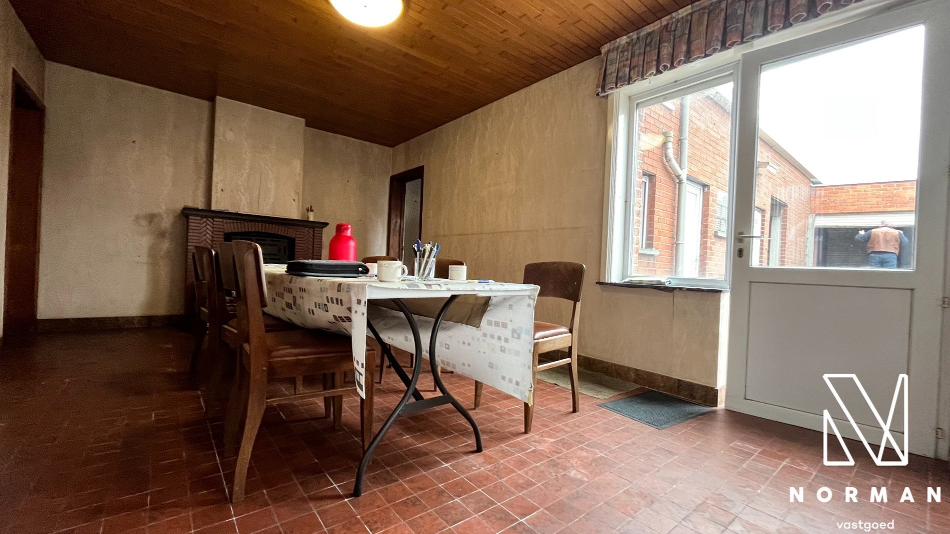 Inkomhal met voorplaats die kan worden ingericht als bureel of kamer. De ruime woonkamer met kolenkachel vormt het hart van het huis en grenst aan de keuken. Verder is er nog een badkamer met een ligbad.