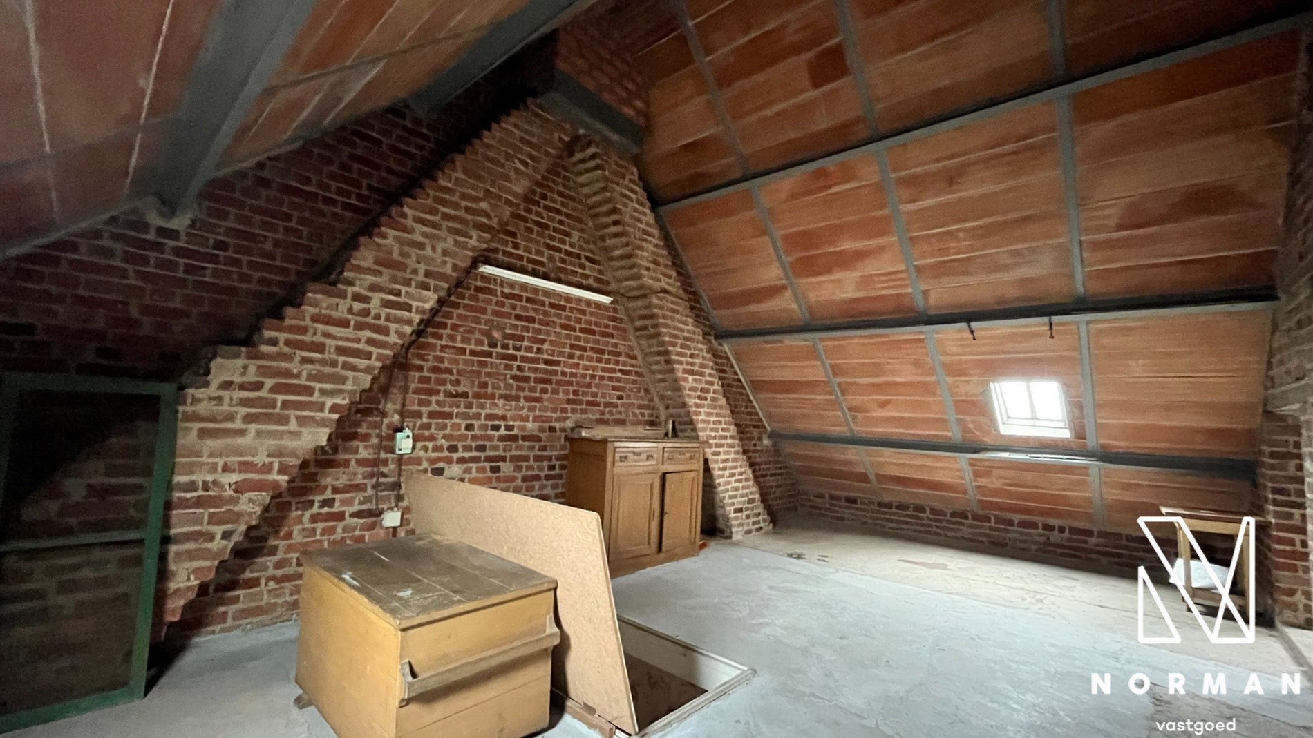 De ruime zolderverdieping (48m²), te bereiken via een vaste trap, kan eenvoudig worden omgevormd tot vierde slaapkamer.
