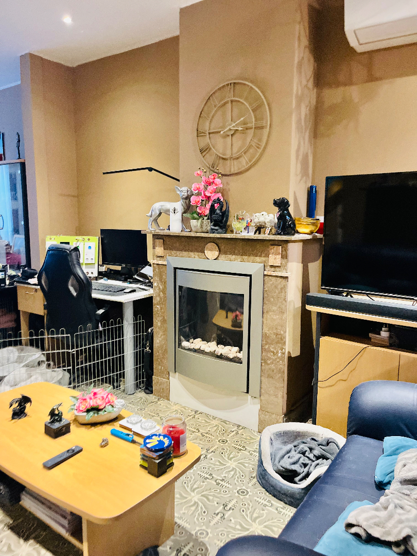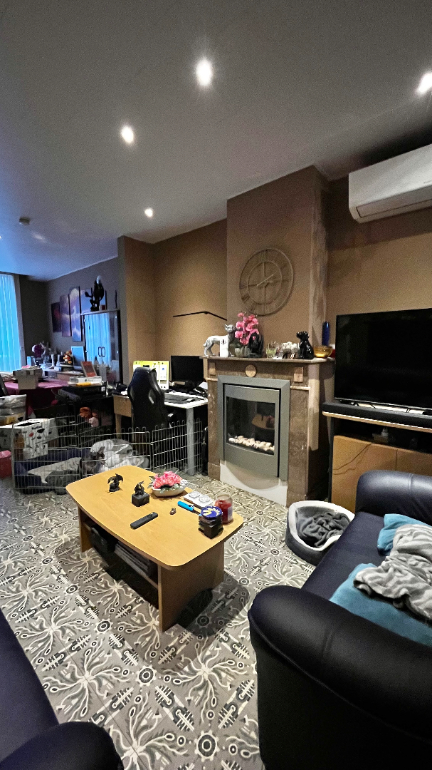 Inkomhal, leef- en zitruimte met twee individuele gaskachels. Beneden én boven is er airco (lucht-lucht) voor zowel koeling als verwarming. Verder is er een badkamer, een kelder en een uitbouw die nog de nodige afwerking vereist.