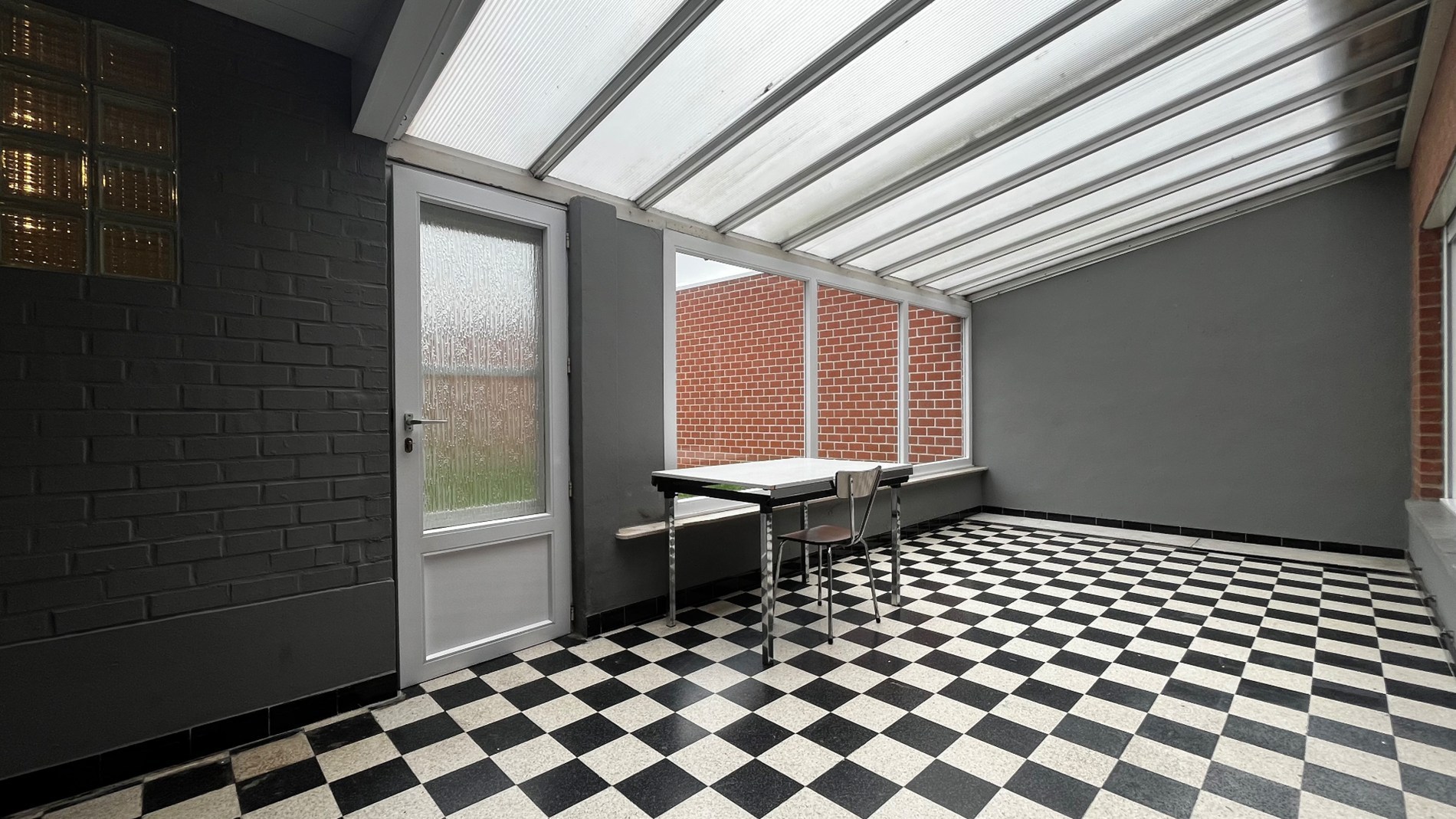 Aansluitend is er een veranda en een badkamer met toilet, wastafel en een douche.