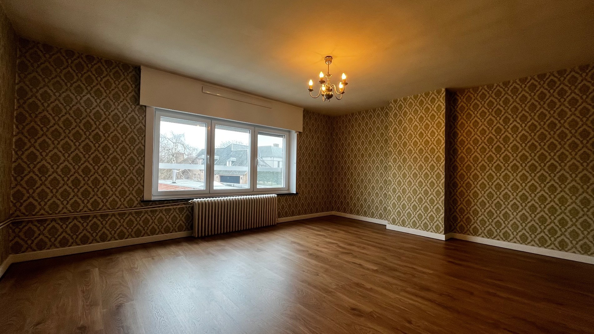 Verdiep 1 heeft drie ruime kamers met rolluiken en radiatoren.