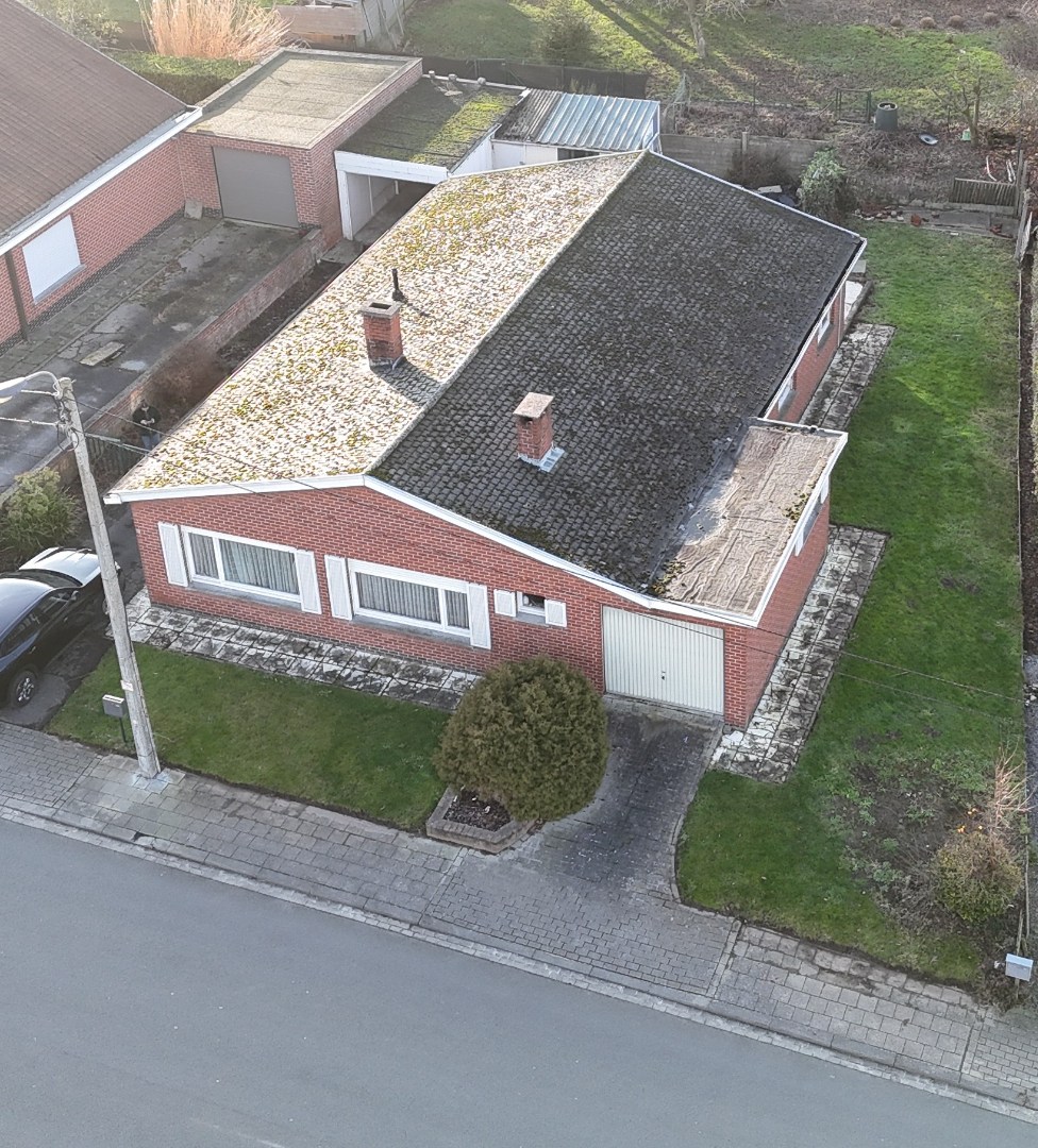Op deze landelijke en tegelijk residentiële locatie staat dit renovatieproject te koop. De indeling is als volgt: inkom, leef- en zitruimte, keuken, doorgang naar 5 slaapkamers, badkamer, en de garage met een afzonderlijk toilet.