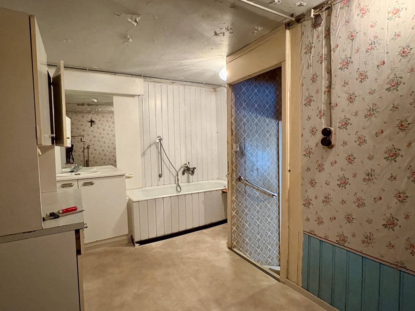 Deze woning heeft een betonstructuur! Belangrijk weetje bij het zien van deze te renoveren woning. Zoals u kan zien op de foto’s is deze woning niet meer actueel aan de huidige tendensen, wel heeft deze een aangename breedte en heeft deze veel potentieel.