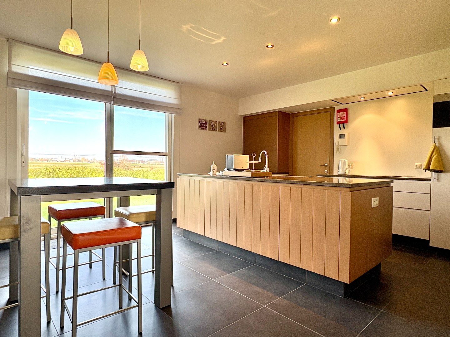 Verder is er een volledig geïnstalleerde keuken met bijhorende berging, extra wasplaats en een bijzonder handige bergruimte. Deze is eveneens toegankelijk via een aparte zijdeur.