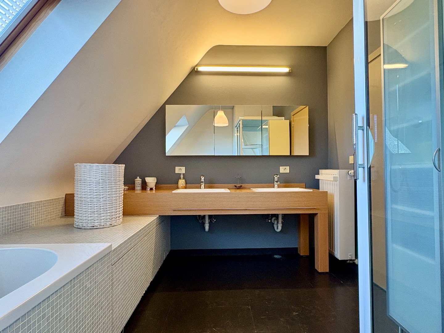Op de verdieping bevinden zich twee ruime slaapkamers en een badkamer. Deze is voorzien van een ligbad, douche en dubbele wastafel.
