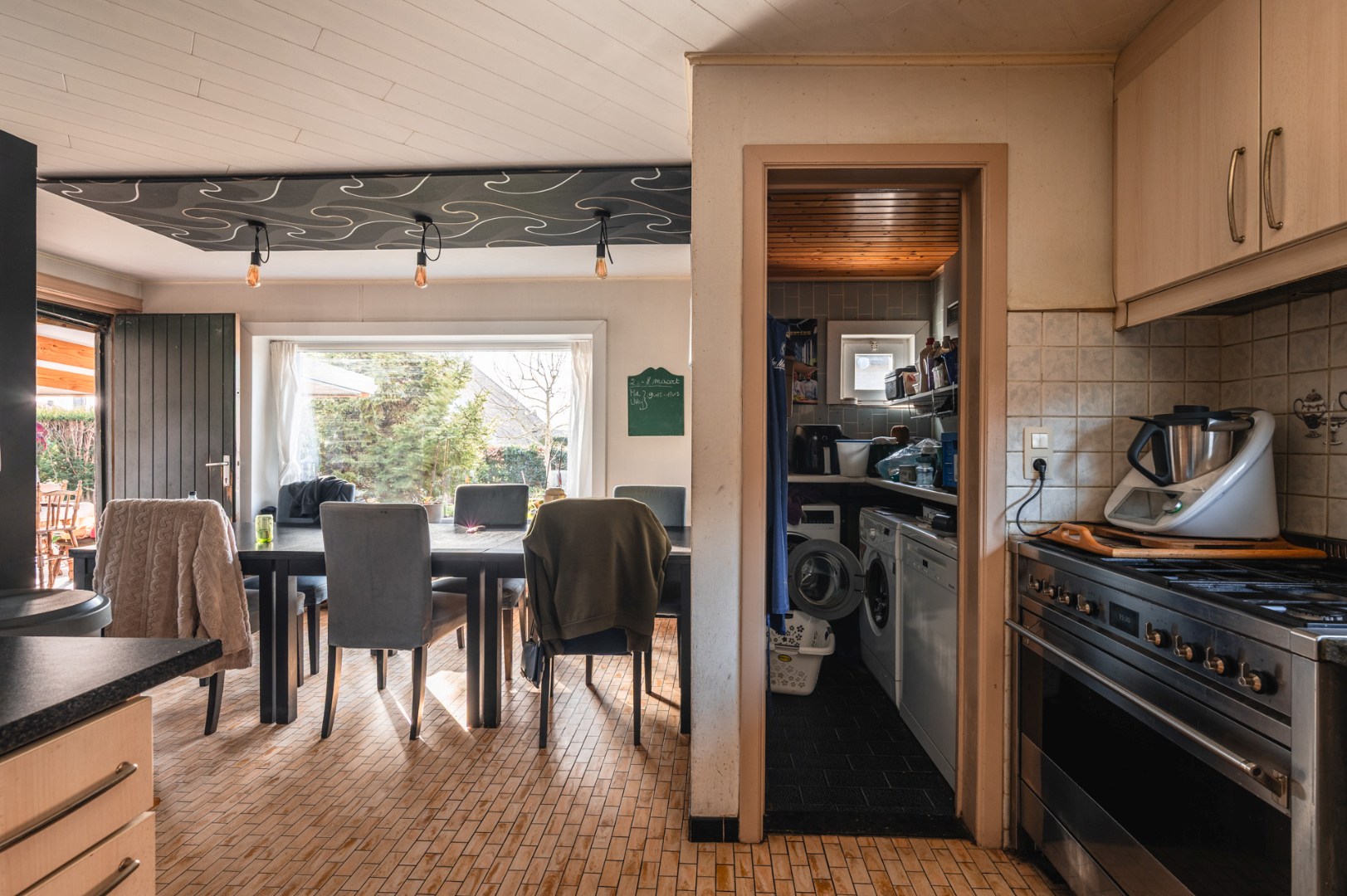 Verder is er op het gelijkvloers nog een kamer, momenteel naaikamer. En toegang tot de kelder. Het verdiep bevat 3 echt ruime slaapkamers en een bureaukamer. Ook is er een vernieuwde badkamer.