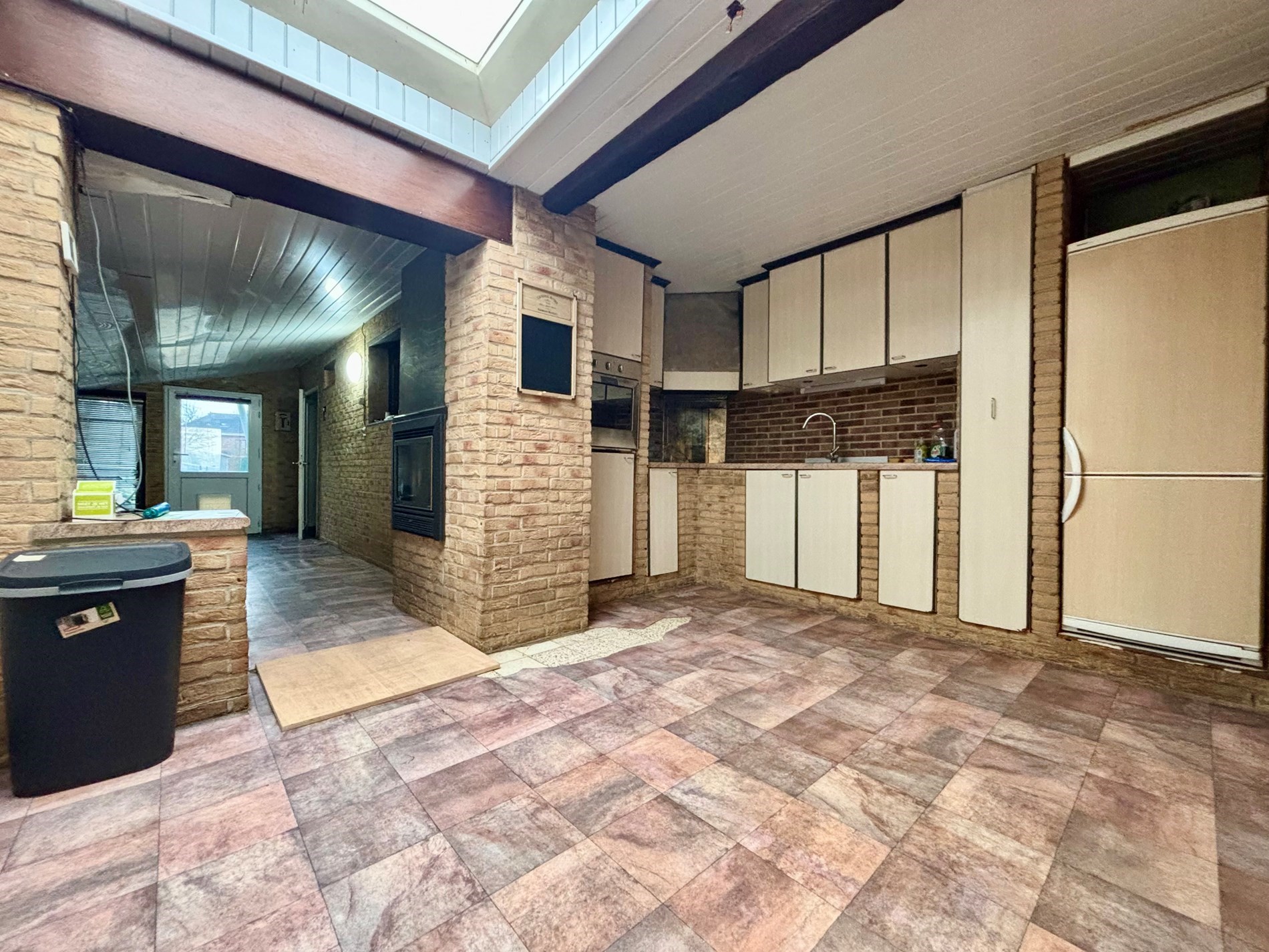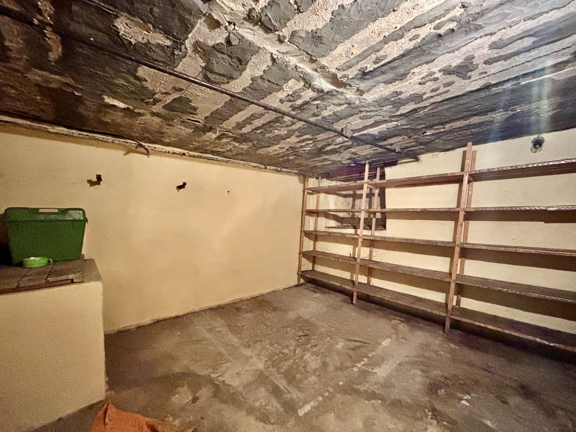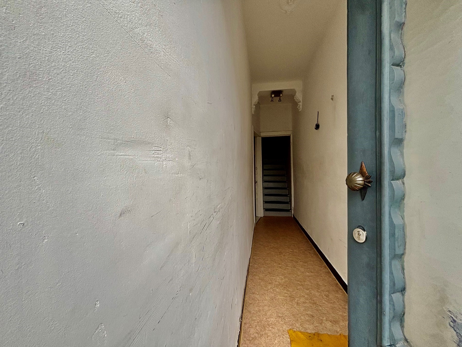 Bij het binnenkomen betreed je een ruime inkomhal die toegang geeft tot de leefruimte en de eerste verdieping. De leefruimte, opgesplitst in twee delen, geniet van veel lichtinval. Vervolgens heb je de keuken met aansluitend een eetruimte. Tenslotte beschikt de eerste verdieping nog over een ruime berging, droge kelder en een badkamer.
