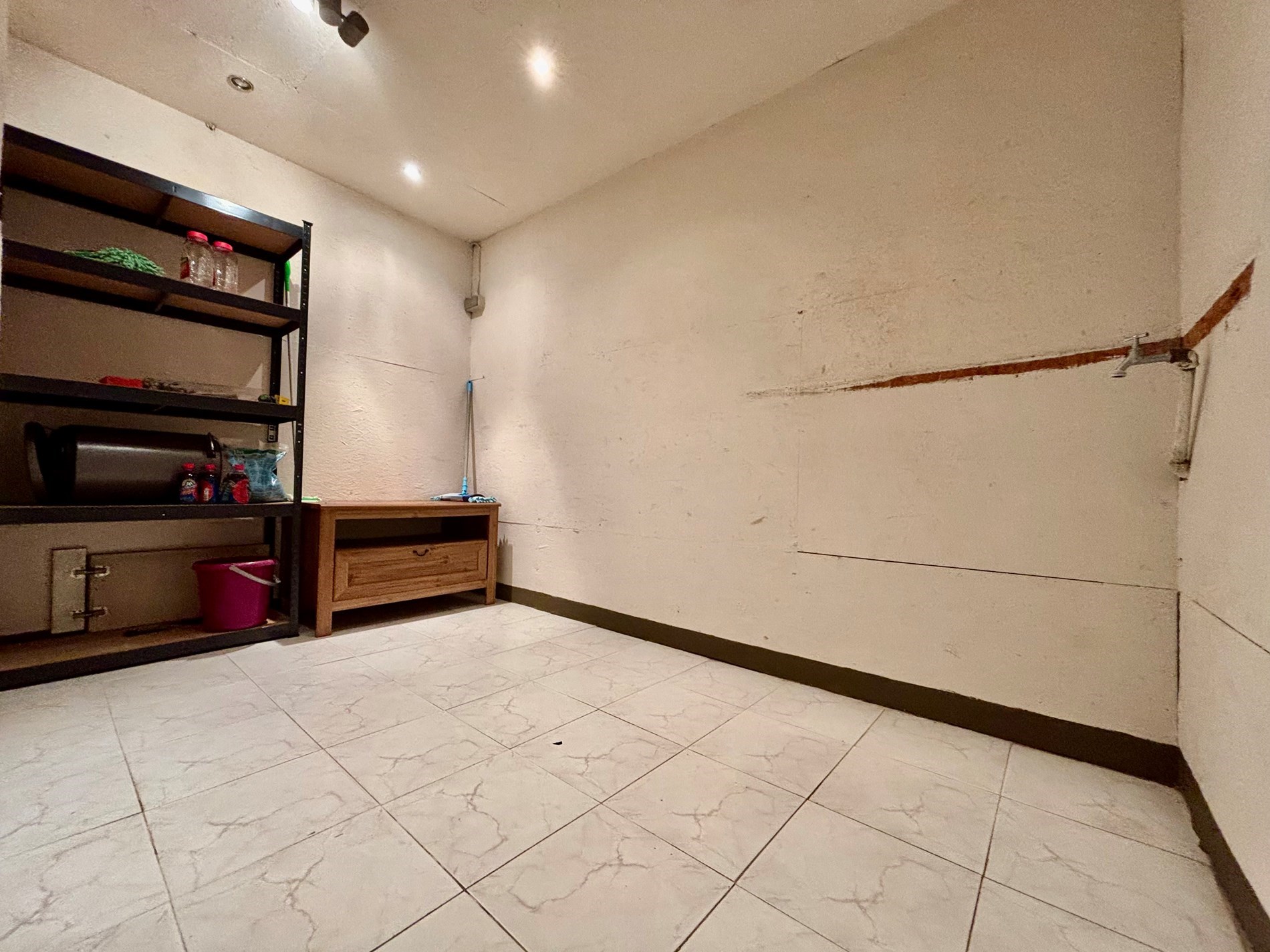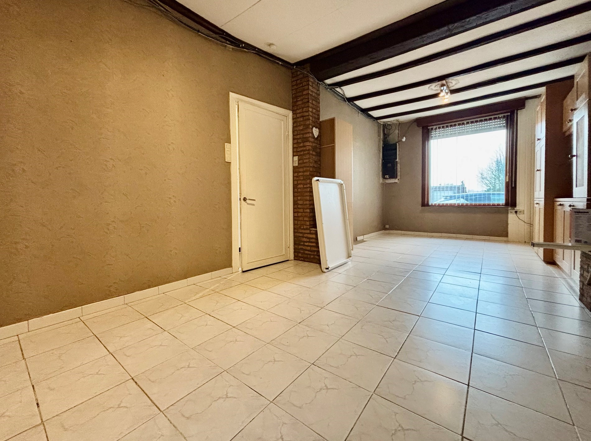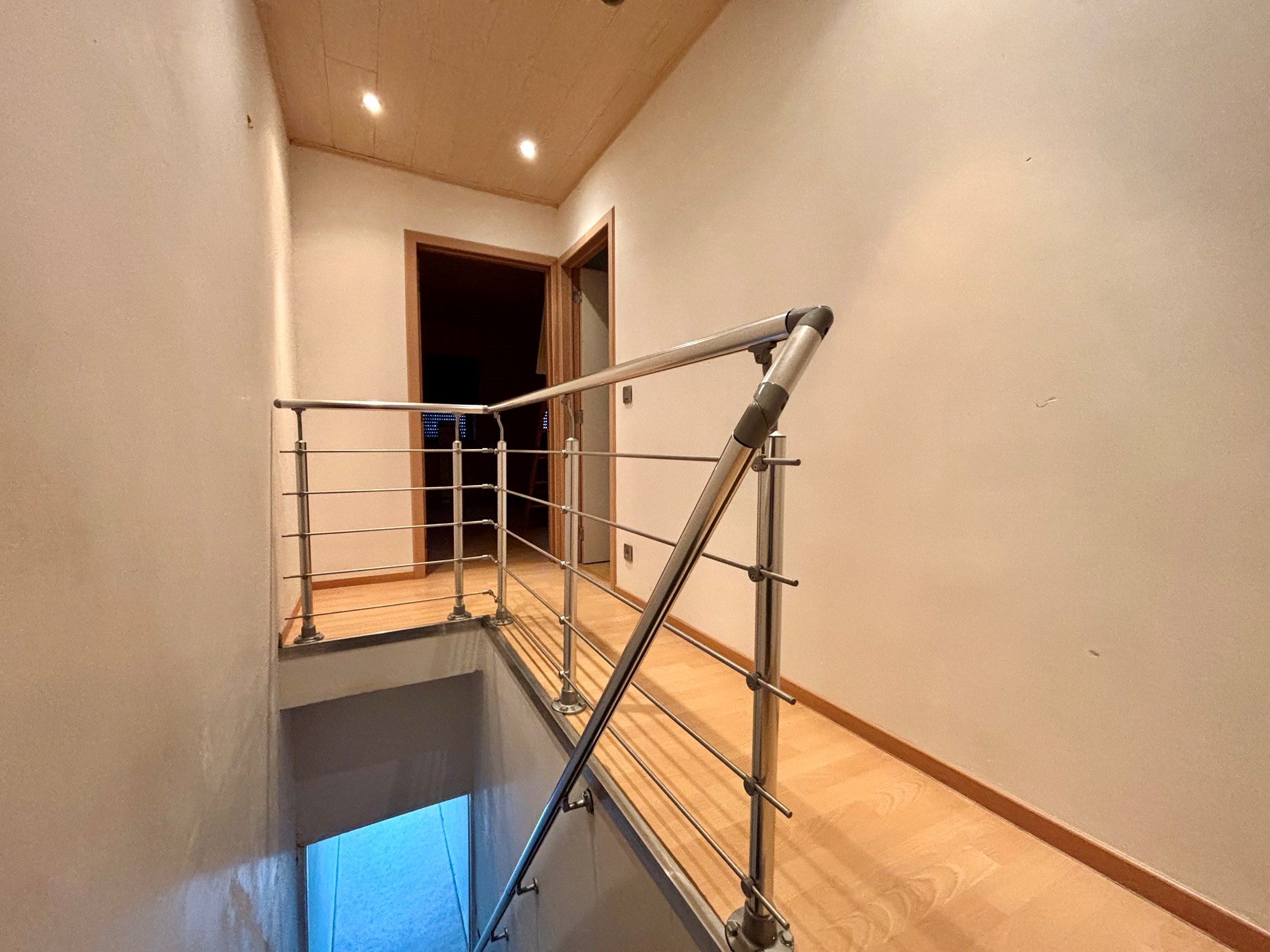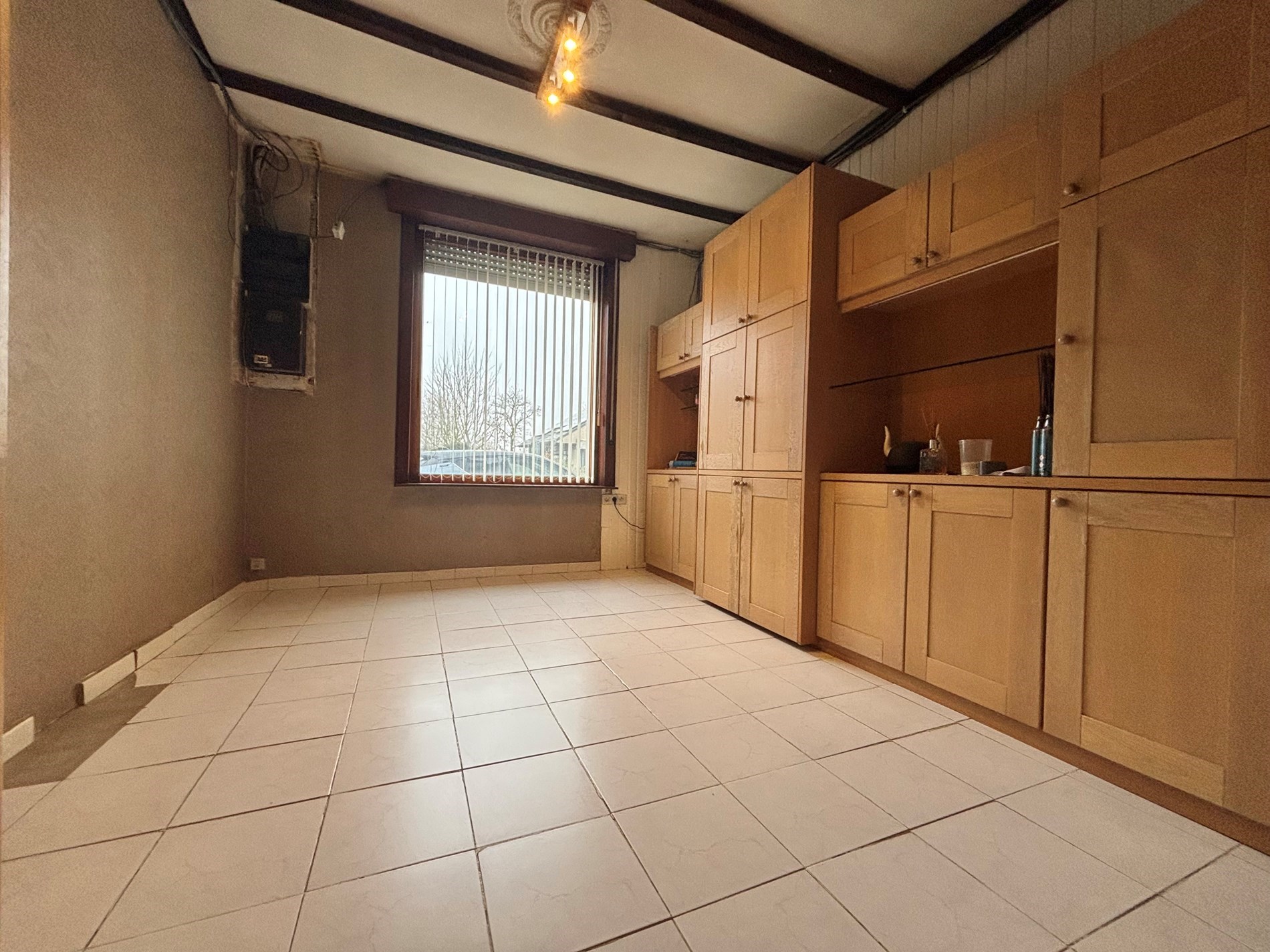 Bij het binnenkomen betreed je een ruime inkomhal die toegang geeft tot de leefruimte en de eerste verdieping. De leefruimte, opgesplitst in twee delen, geniet van veel lichtinval. Vervolgens heb je de keuken met aansluitend een eetruimte. Tenslotte beschikt de eerste verdieping nog over een ruime berging, droge kelder en een badkamer.