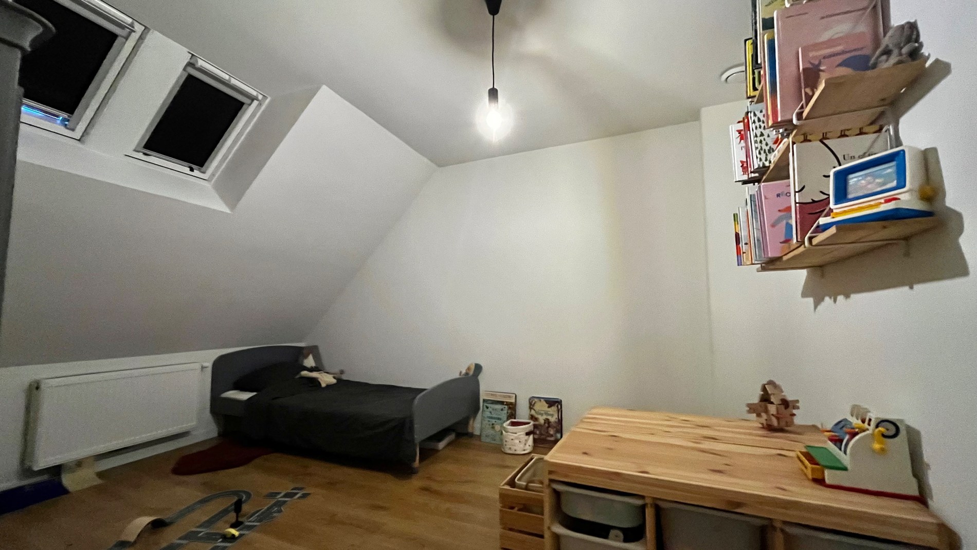 Via de authentieke trap bereikt u de tweede verdieping, waar zich nog twee grote slaapkamers bevinden en een open speelruimte/bureau, die eenvoudig kan worden omgevormd tot een extra slaapkamer.
