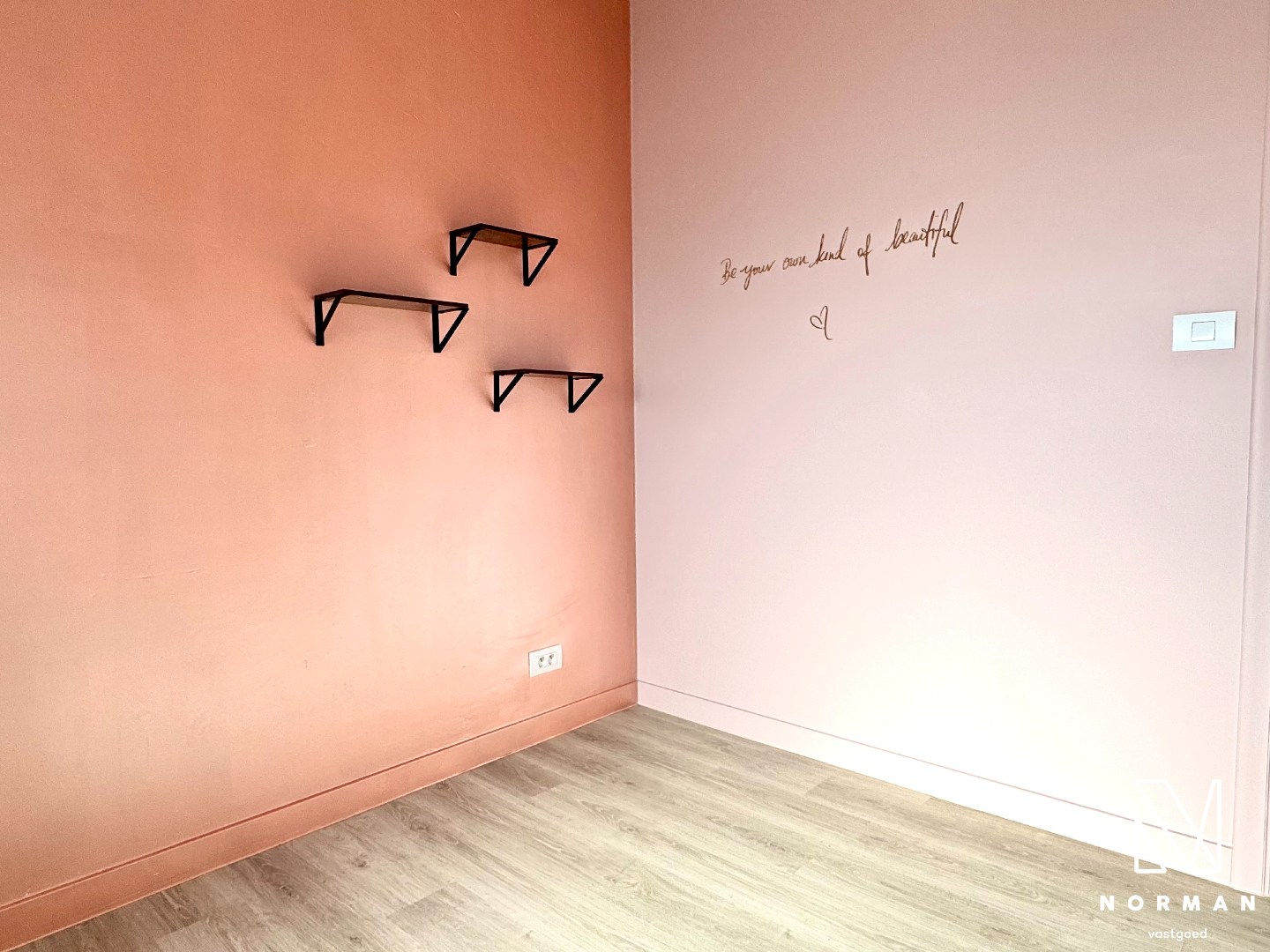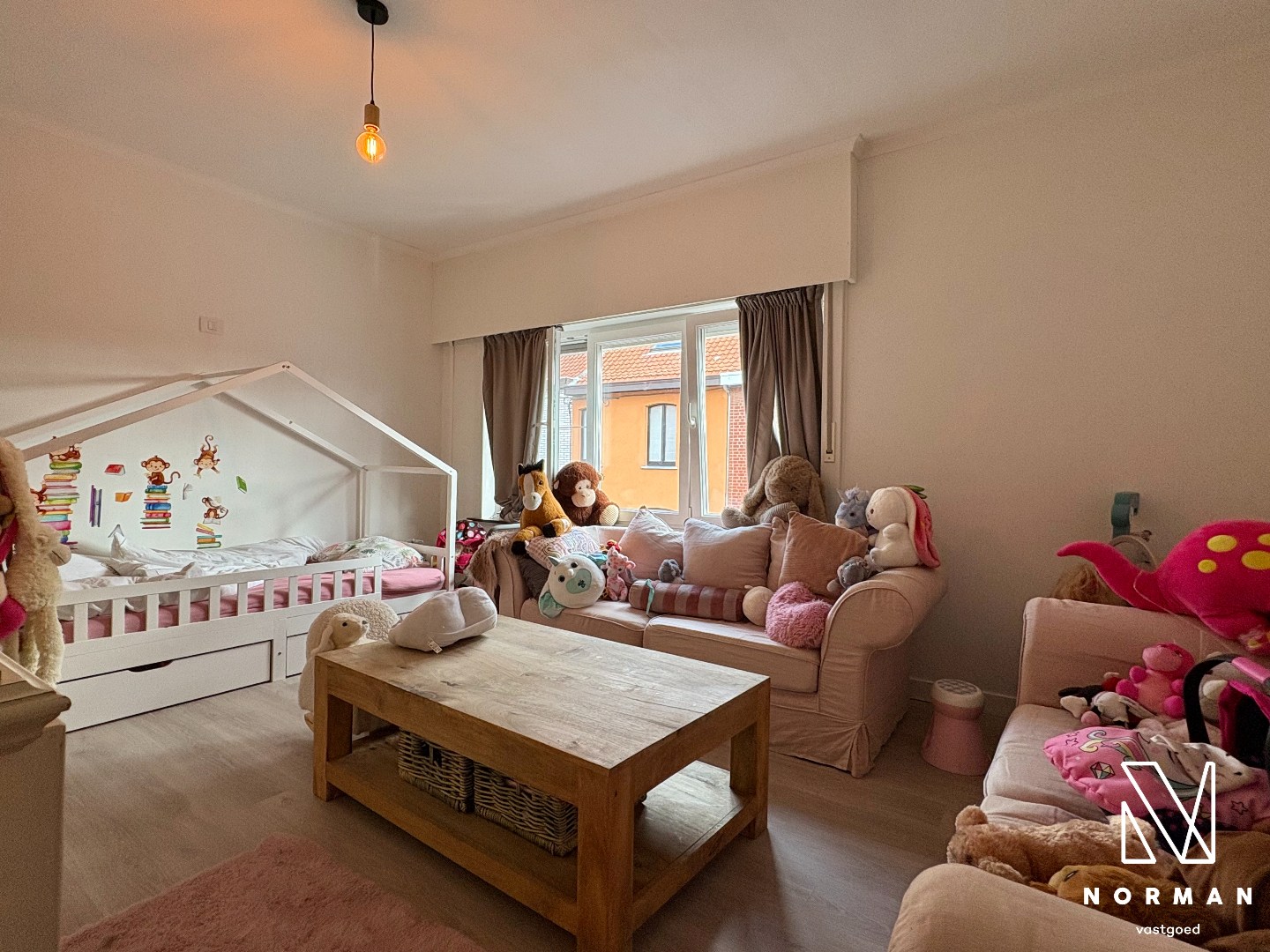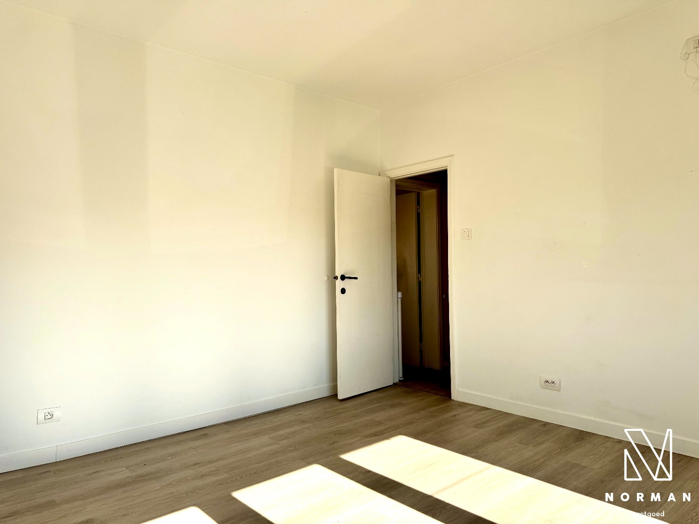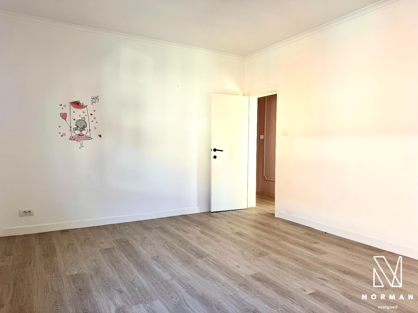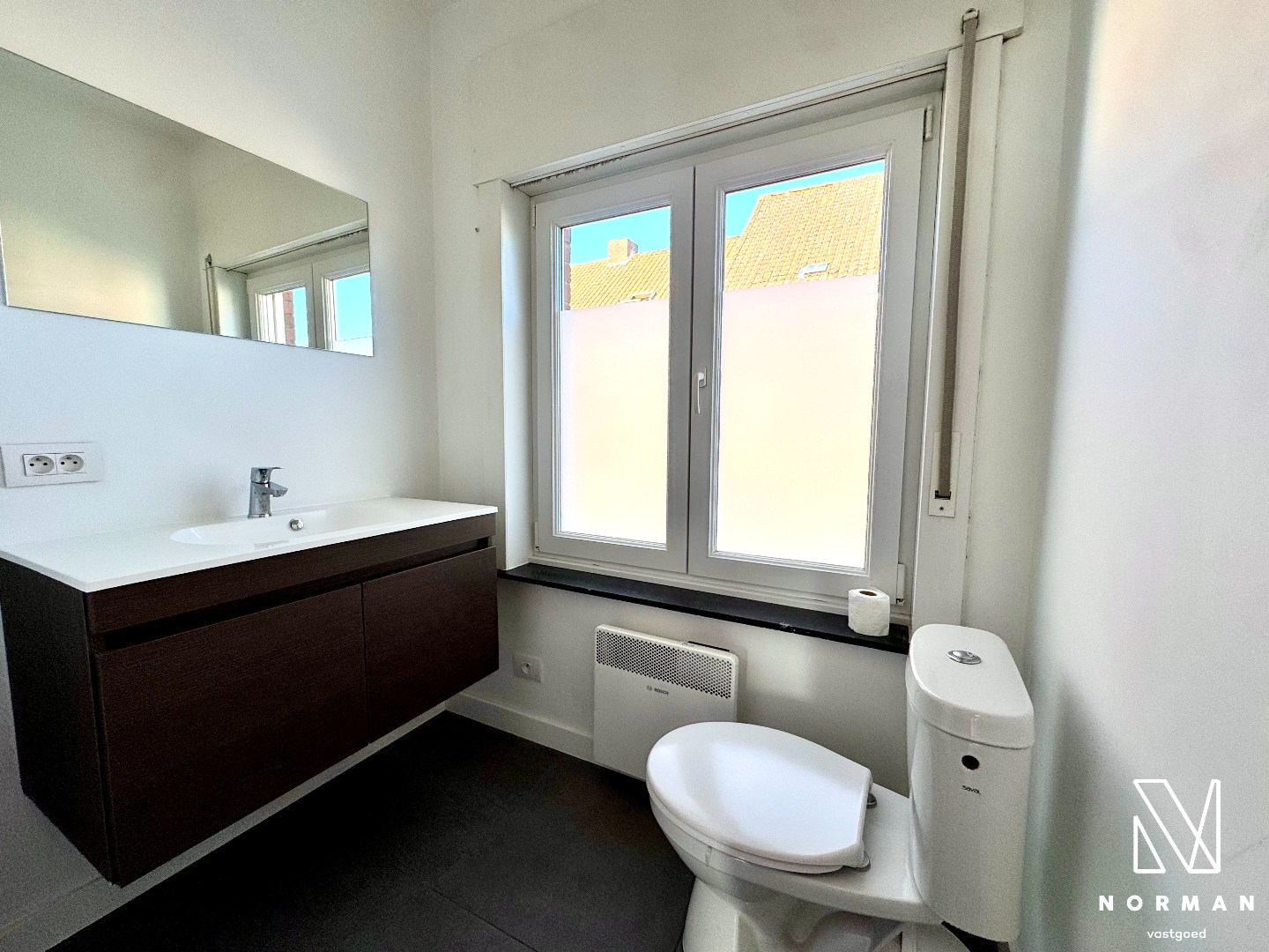 De zuidgerichte tuin is een grote troef. Op het gelijkvloers vind je verder een ruime badkamer met douche, dubbele wastafel en ligbad, evenals een apart toilet.